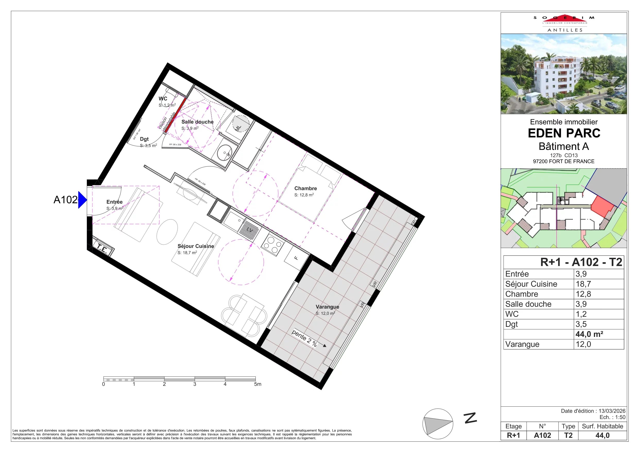 Plus qu’un simple T2, ce bien neuf de 44 m² en VEFA offre un cadre de vie agréable, fonctionnel et parfaitement adapté à Fort-de-France. Dès l’entrée, on apprécie la sensation d’espace et de luminosité. Le séjour, accueillant et bien agencé, constitue un véritable lieu de vie, idéal pour se détendre ou recevoir. Un intérieur confortable et bien pensé : L’appartement dispose d’une chambre spacieuse et climatisée, offrant calme et confort au quotidien. L’agencement a été conçu pour optimiser chaque espace et faciliter votre vie de tous les jours. Une résidence qui simplifie la vie : Situé dans une résidence sécurisée, le bien bénéficie de prestations modernes : ascenseur, portail électrique et visiophone. Une aire de jeux pour enfants vient compléter l’ensemble, un vrai plus pour les familles. Les menuiseries en PVC et l’éclairage extérieur ajoutent à la qualité de ce logement. Les points forts : 44 m² bien optimisés Séjour lumineux et agréable Chambre climatisée Résidence sécurisée avec ascenseur Équipements modernes Aire de jeux Un emplacement pratique : À proximité des commodités et des principaux axes, cet appartement combine confort de vie et accessibilité. Pour quel projet ? Ce bien neuf est idéal pour une résidence principale ou un investissement locatif sécurisé. Un appartement lumineux, fonctionnel et facile à vivre — une opportunité à saisir. Prix : 210 000 € (Honoraires à la charge du vendeur) NB : Photos non contractuelles Pour plus de renseignements, contactez Mélissa au 0696 11 09 10