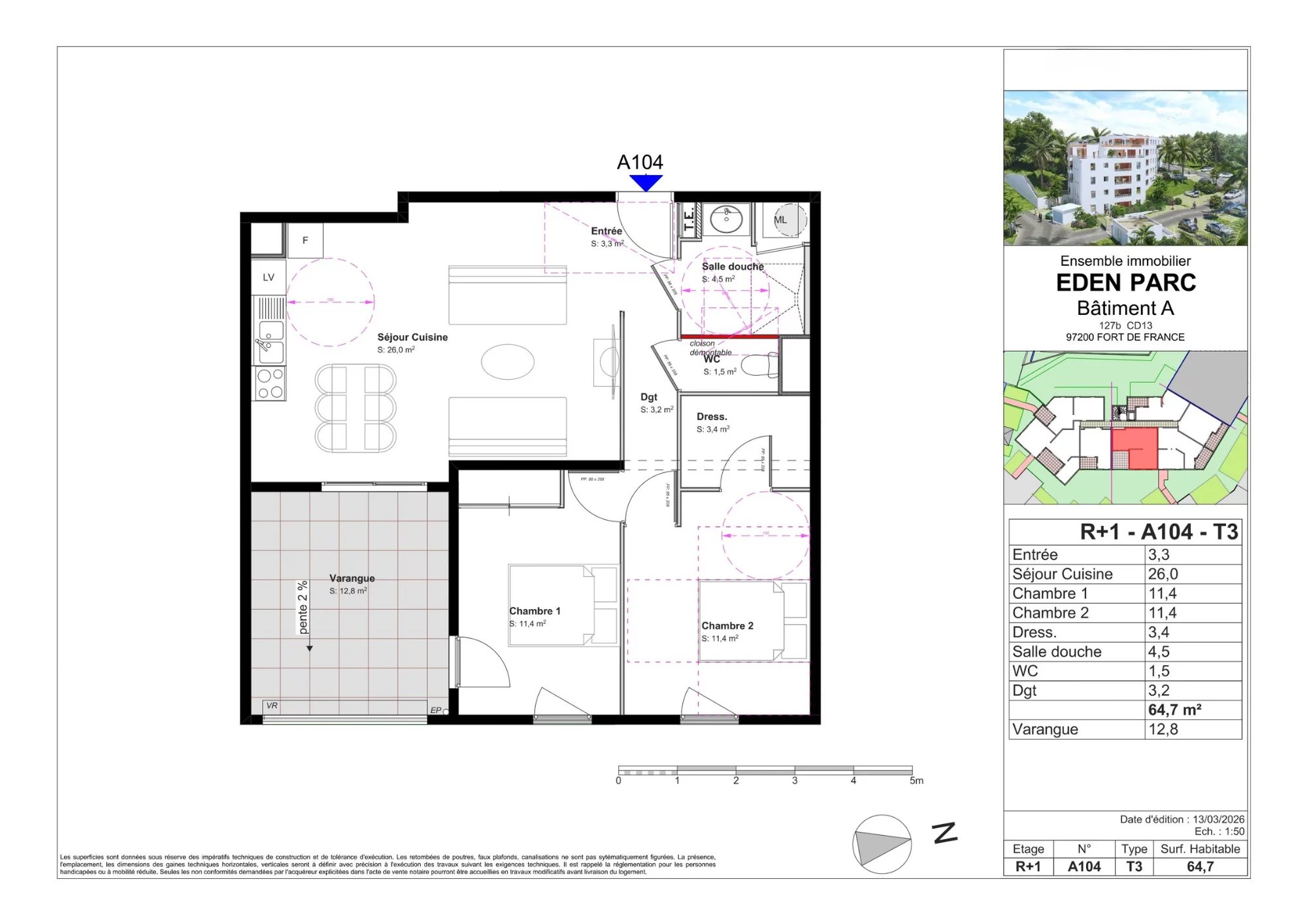 Offrez-vous un cadre de vie moderne et confortable avec ce T3 neuf de 64,7 m² en VEFA, idéalement situé à Fort-de-France. Plus qu’un simple appartement, ce bien a été pensé pour répondre aux exigences du quotidien : espaces optimisés, luminosité naturelle et prestations modernes. Dès l’entrée, vous serez séduit par un séjour spacieux et lumineux, véritable cœur de vie, parfait pour partager des moments conviviaux en famille ou entre amis. Un intérieur fonctionnel et agréable : L’appartement dispose de deux chambres confortables, offrant calme et bien-être. L’agencement a été conçu pour optimiser chaque mètre carré et garantir une circulation fluide. Une résidence moderne et sécurisée : Situé au sein d’une résidence sécurisée, le bien bénéficie d’équipements de qualité : ascenseur, portail électrique, visiophone et aménagements extérieurs soignés. Une aire de jeux vient compléter l’ensemble, idéale pour les familles. Les points forts : 64,7 m² bien agencés Séjour lumineux 2 chambres confortables Résidence sécurisée avec ascenseur Prestations modernes Idéal résidence principale ou investissement Un emplacement stratégique : À proximité des commodités et des principaux axes, ce bien allie praticité et qualité de vie. Pour quel projet ? Parfait pour une résidence principale ou un investissement locatif sécurisé en VEFA. Un bien neuf, fonctionnel et attractif — une opportunité à ne pas manquer. Prix : 277 000 € (Honoraires à la charge du vendeur) NB : Photos non contractuelles Pour plus de renseignements, contactez Mélissa au 0696 11 09 10