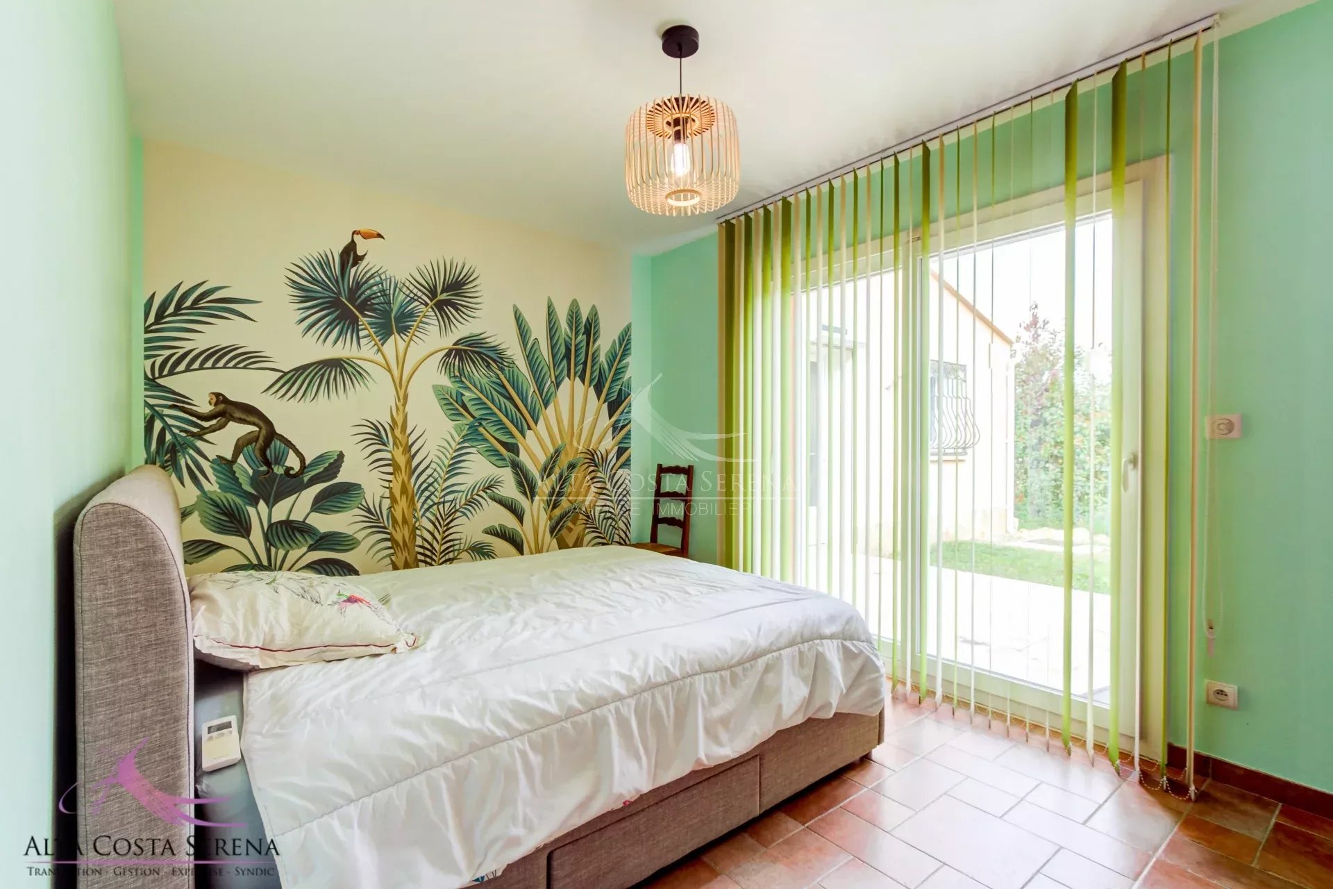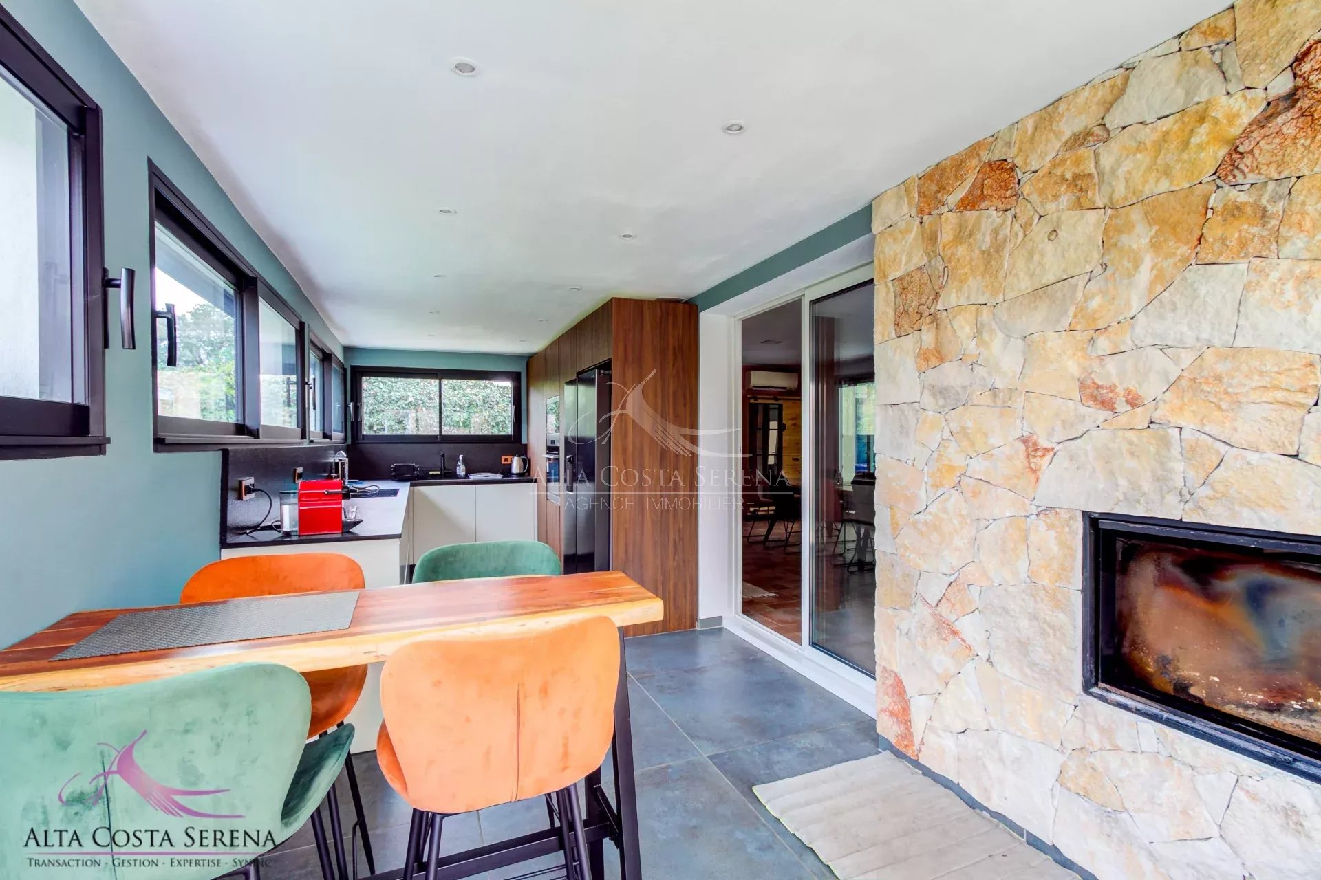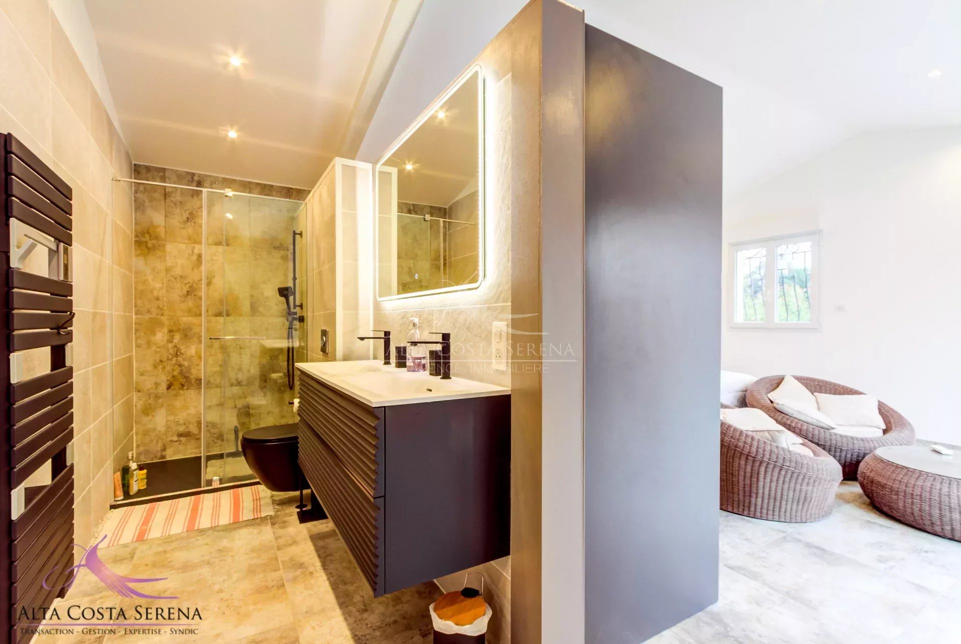 À l’extérieur, vous profiterez d’un terrain clos et arboré dans un environnement calme, avec piscine couverte au sel. Les équipements comprennent également la climatisation, une cheminée, un portail électrique, un jacuzzi, une pergola bioclimatique, des panneaux photovoltaiques et une borne de recharge pour véhicules électriques.