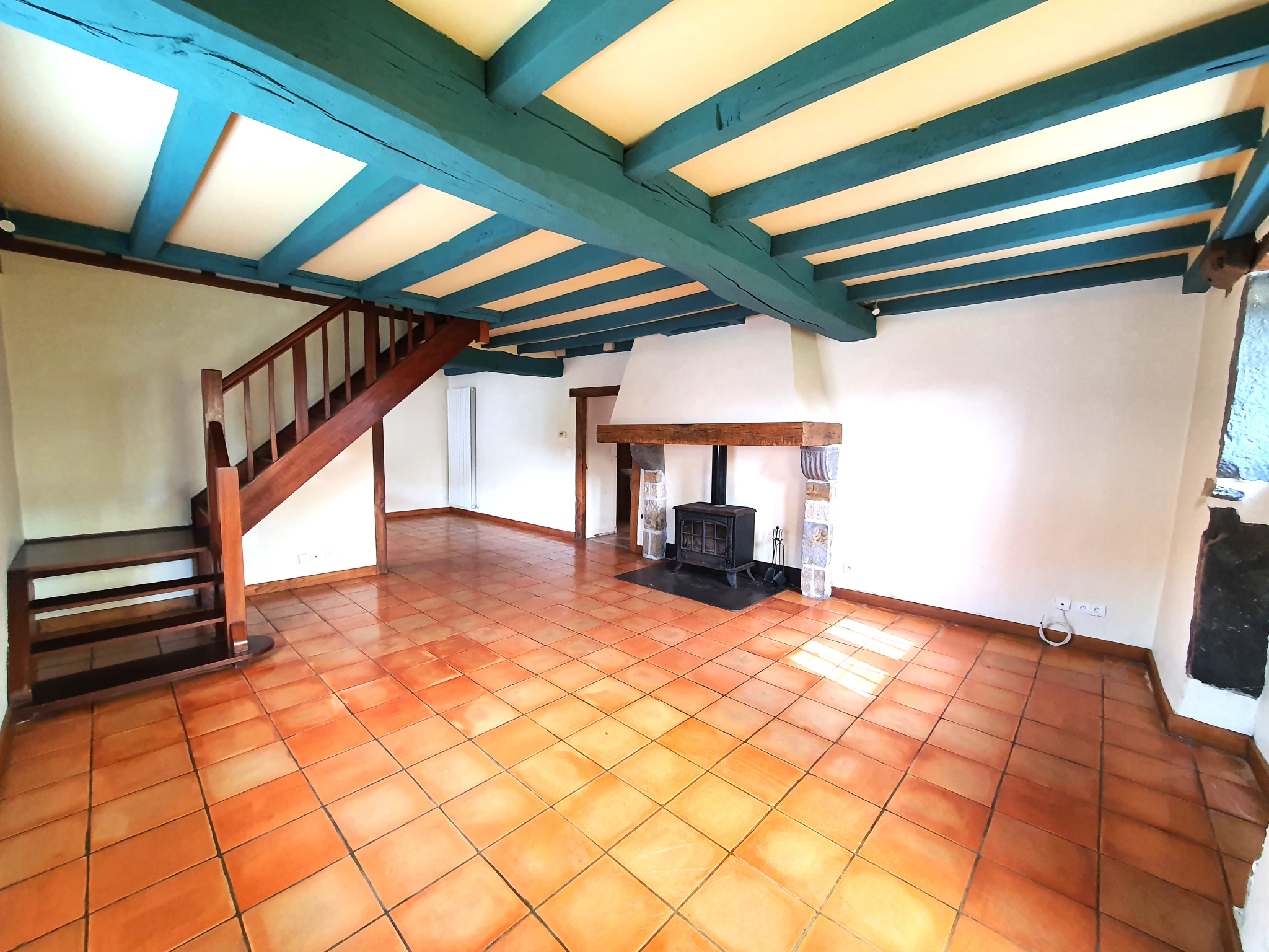 Le tout est chauffé au moyen d'une chaudière fioul et d'un poêle à bois dans la pièce de vie.