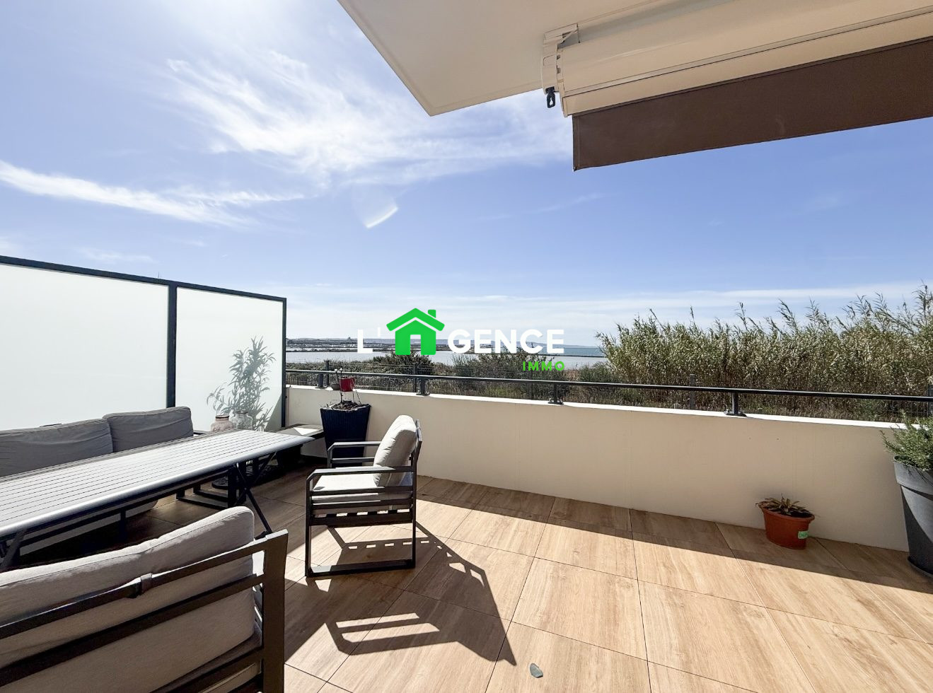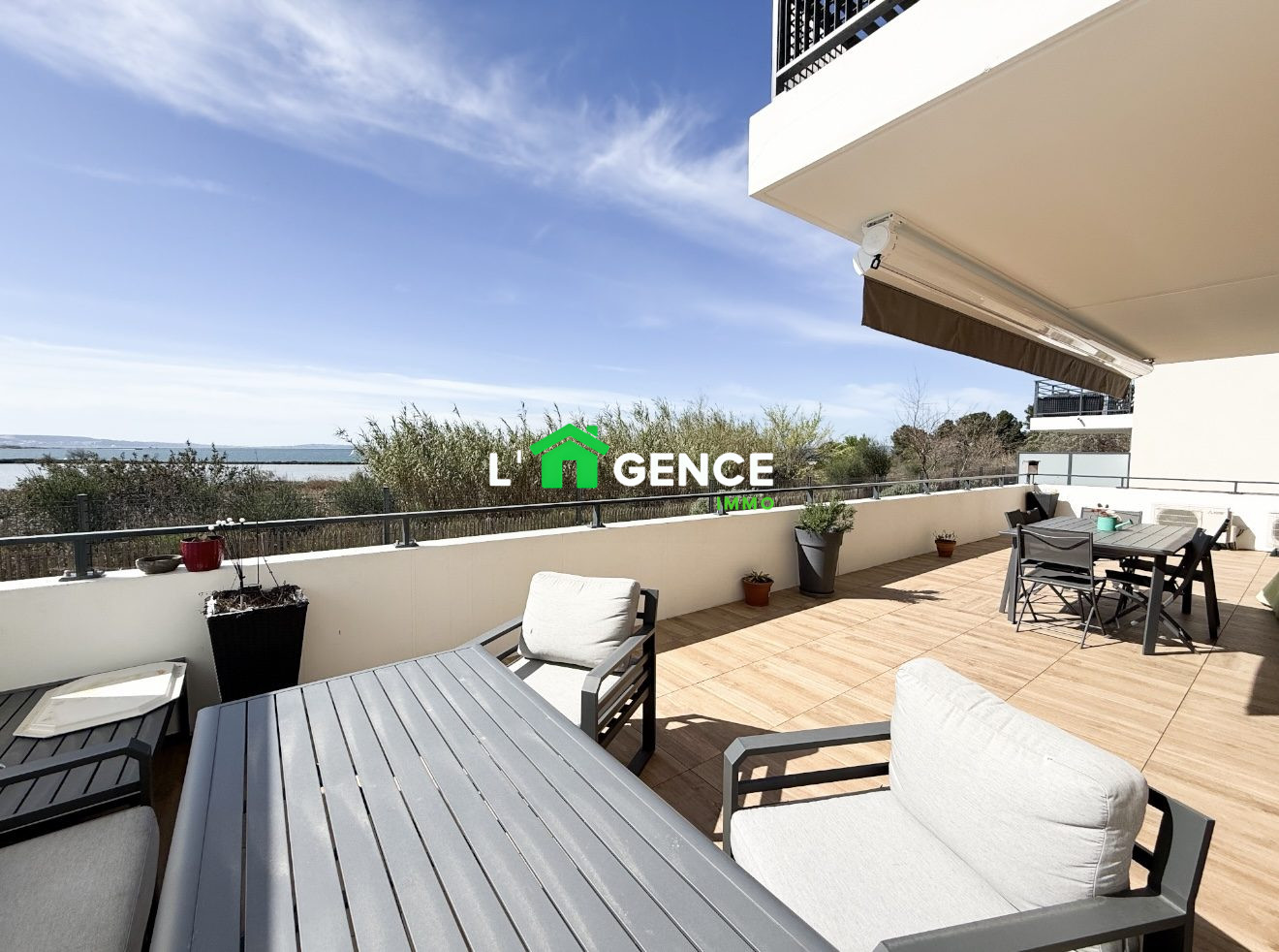 Une superbe terrasse de 48 m², sans vis-à-vis, offrant une vue dégagée sur l'Étang de Berre et la nature environnante.Un véritable espace de vie supplémentaire, parfait pour profiter des belles soirées d'été, des repas entre amis ou simplement savourer un moment de détente face à un panorama apaisant.