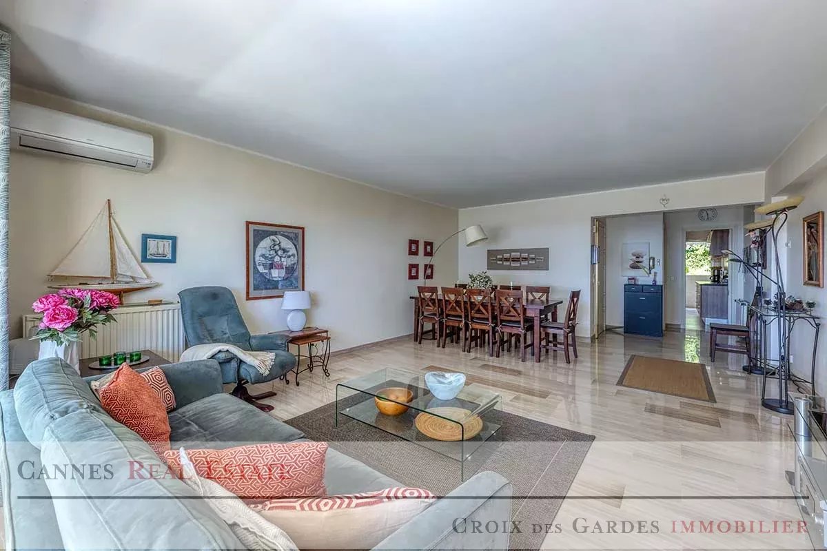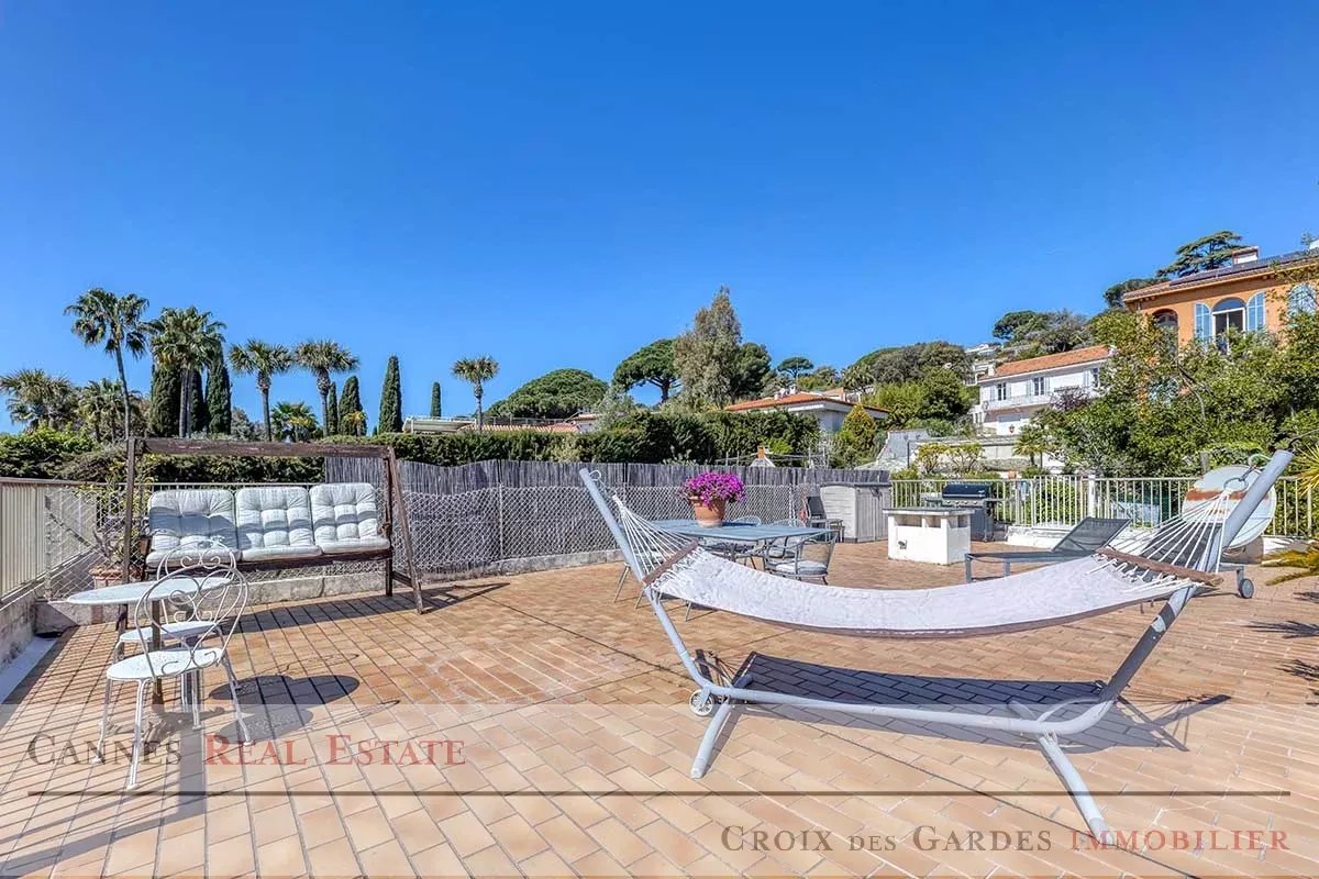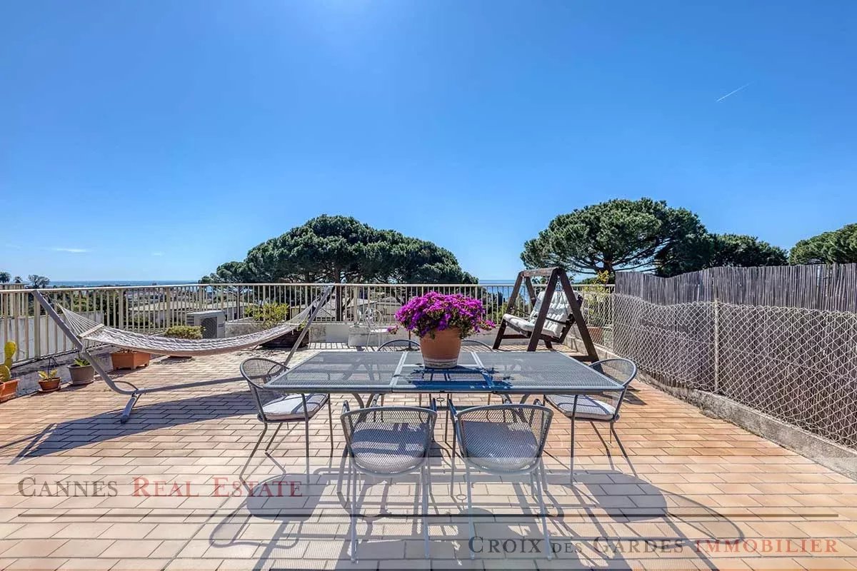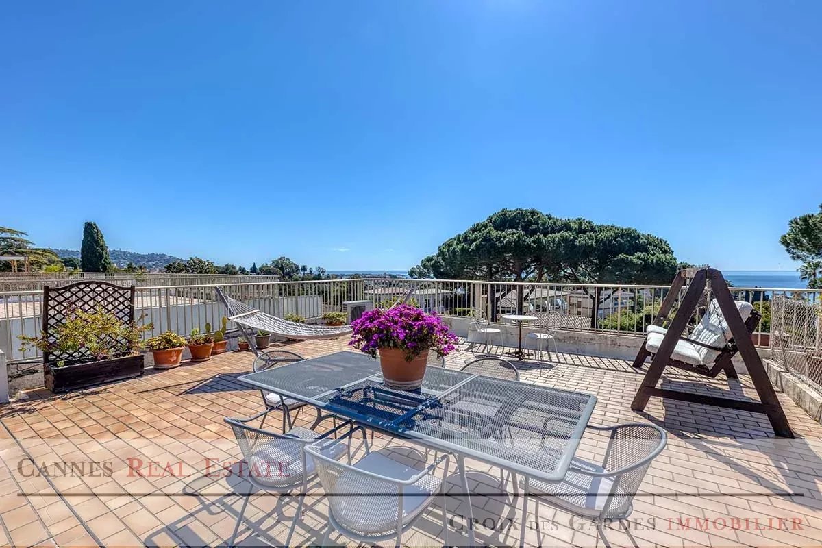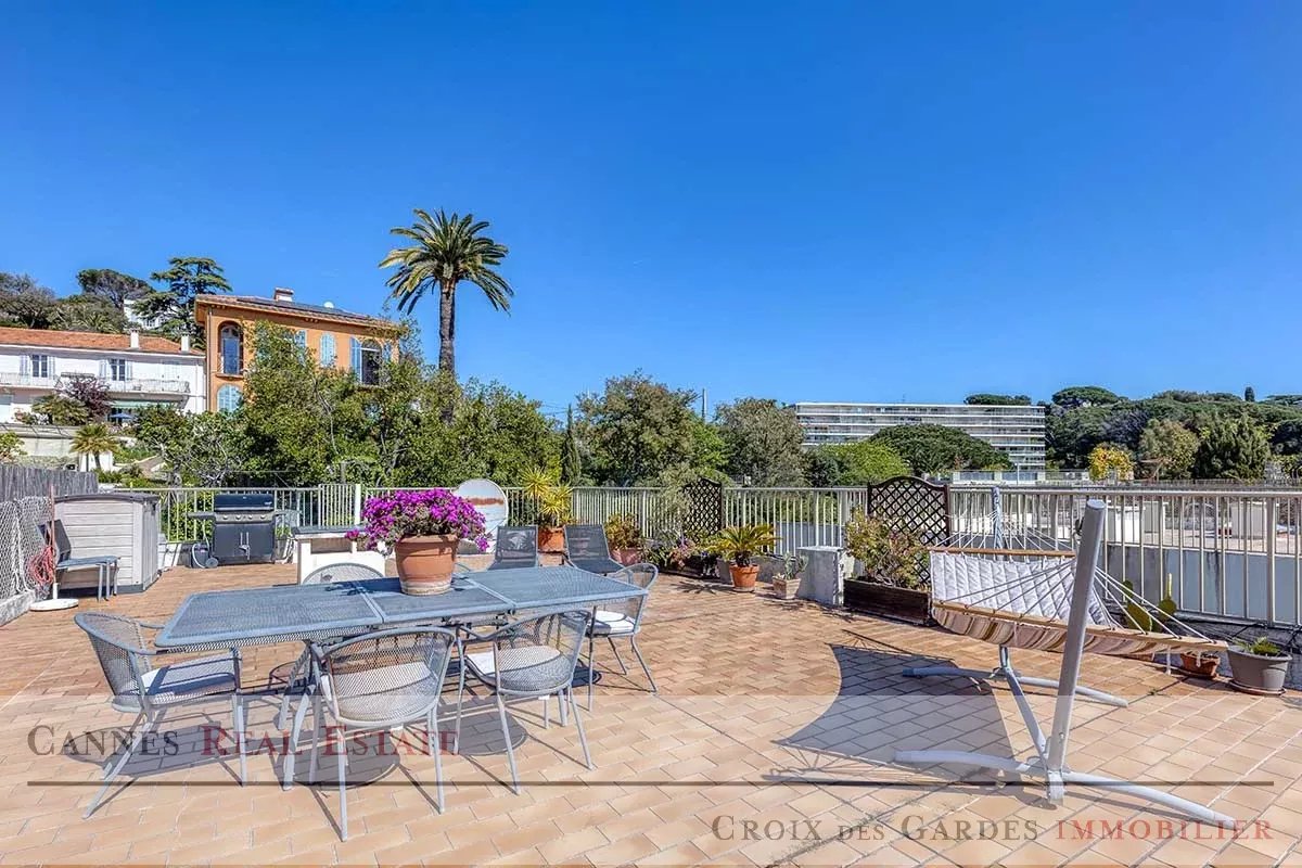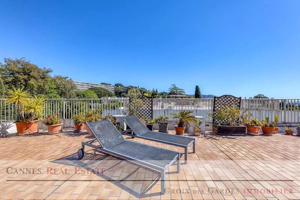 Situé dans le secteur prestigieux de la Croix des Gardes, au cœur d'une résidence intimiste avec piscine offrant un calme absolu, ce superbe appartement de 85 m² constitue un véritable havre de paix. Baigné de lumière naturelle, il dispose d'un séjour spacieux face à la mer s'ouvrant sur une double terrasse, d'une cuisine parfaitement équipée et de deux chambres avec chacune leur terrasse privative, complétées par deux salles d’eau et deux toilettes. Son atout majeur reste son toit-terrasse privé de 113 m² qui domine majestueusement la baie et les collines de Cannes, offrant un espace de réception unique et spectaculaire. Ce bien d'exception est complété par deux garages fermés en sous-sol pouvant accueillir jusqu'à trois véhicules ainsi qu'une grande cave. À seulement 10 minutes à pied des plages et de l'effervescence du centre de Cannes, cet appartement allie sérénité et proximité immédiate. Une opportunité rare à visiter sans tarder. Dossier complet sur demande