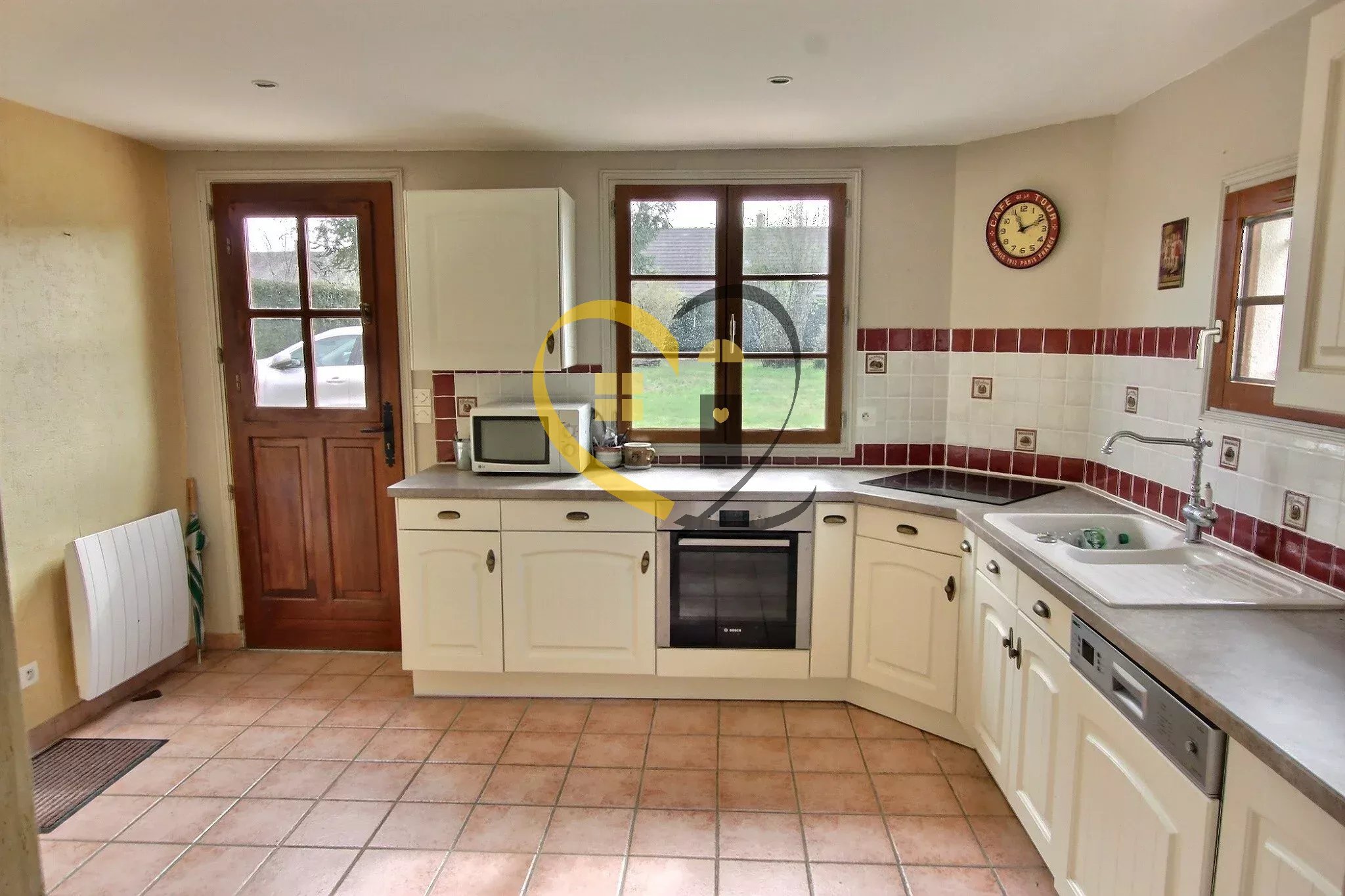 Rez-de-chaussée : cuisine équipée indépendante avec accès au jardin, salon avec cheminée, salle à manger, salle de douche avec WC.