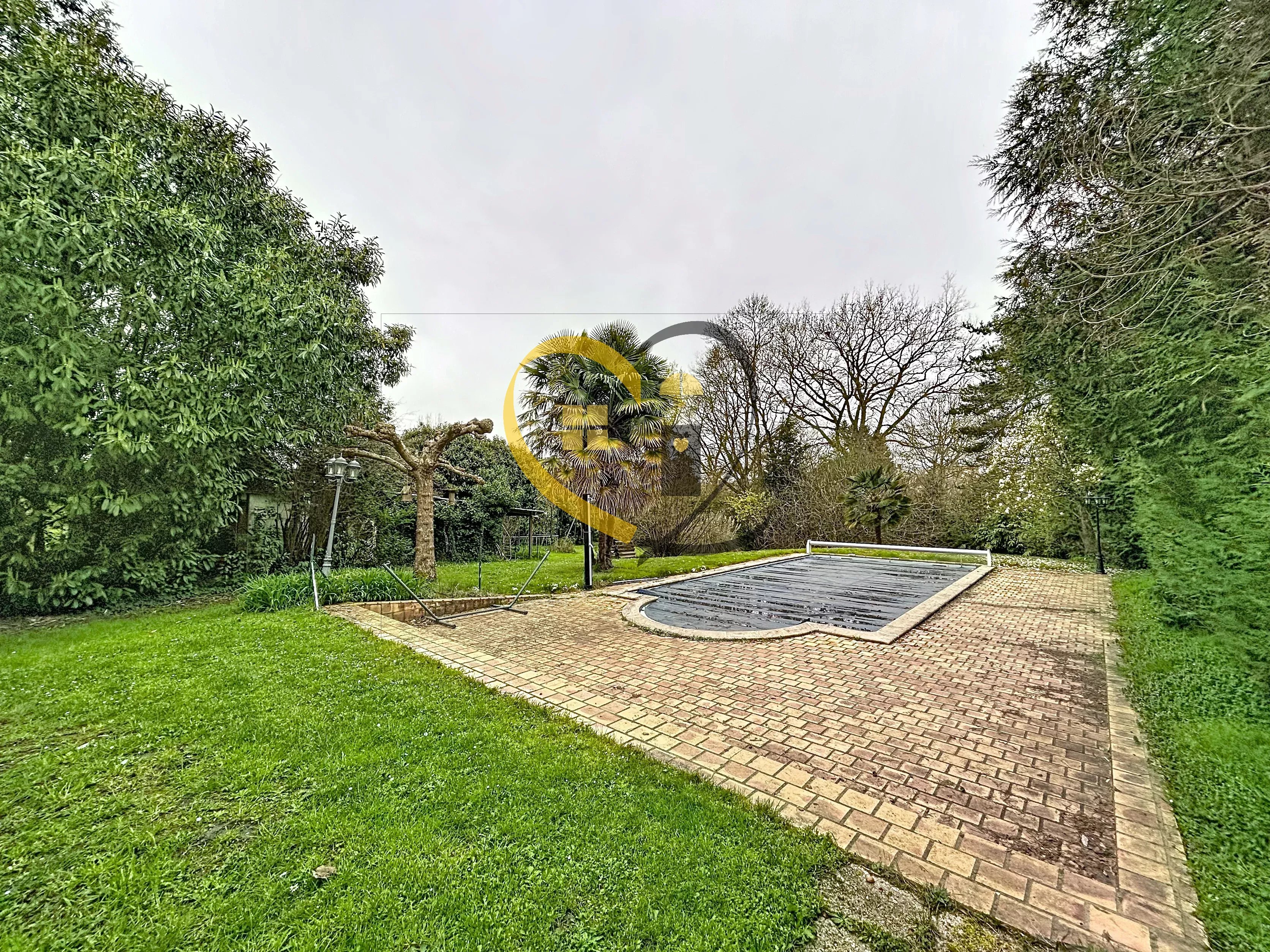À l’extérieur, vous profitez d’un grand terrain de 5105 m2 avec piscine, un cadre parfait pour les beaux jours, les moments en famille ou entre amis.