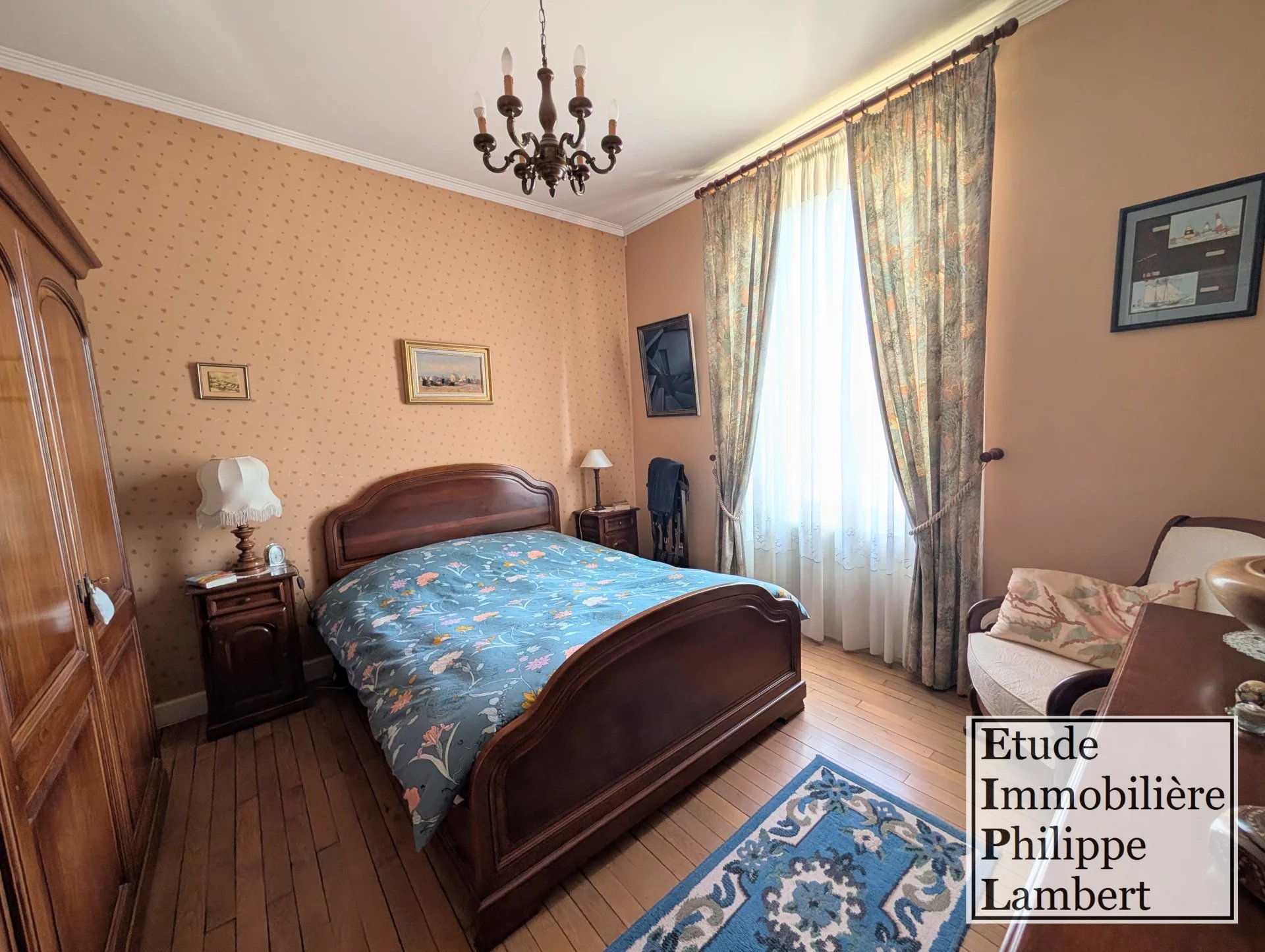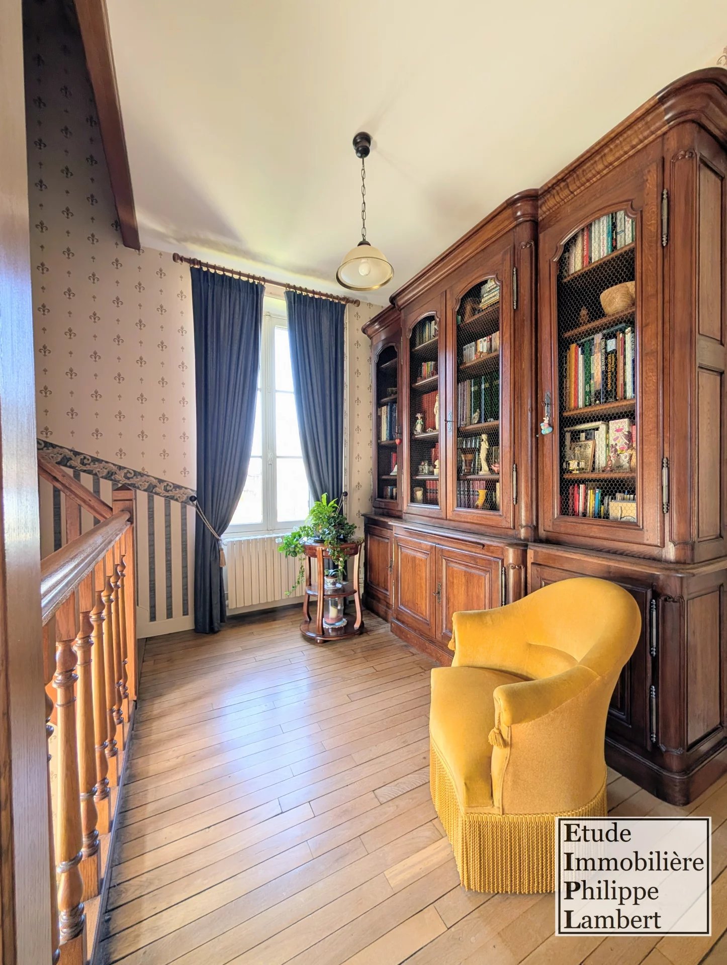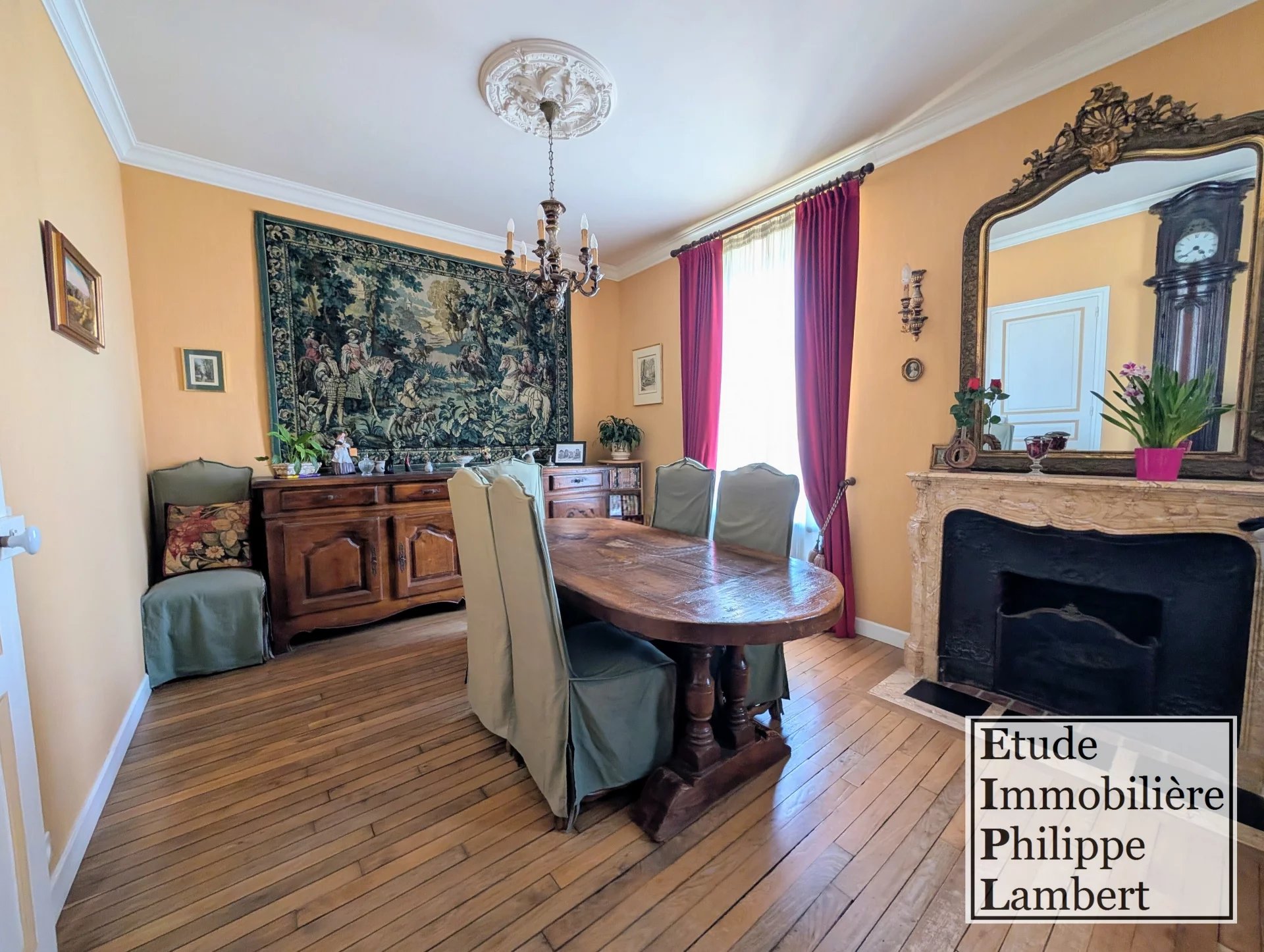 Située à cinq minutes des petits commerces, charmante maison ancienne de sept pièces principales (4 chambres - 2 bureaux) est édifiée sur un terrain de plus de 1000 m² (non divisible). Le rez-de-chaussée se compose d'une grande entrée, d'une cuisine séparée, d'un séjour-salle à manger, d'un bureau et de toilettes. Le premier étage dispose de deux chambres, dont une avec salle d’eau attenante, d'une salle de bains et de toilettes indépendants. Le second étage comprend deux chambres supplémentaires, un bureau et une salle d'eau avec toilettes. L'ensemble est complété par un sous-sol comprenant une pièce de rangement, une buanderie et une cave à vin, ainsi que par un garage indépendant d'environ 30 m².