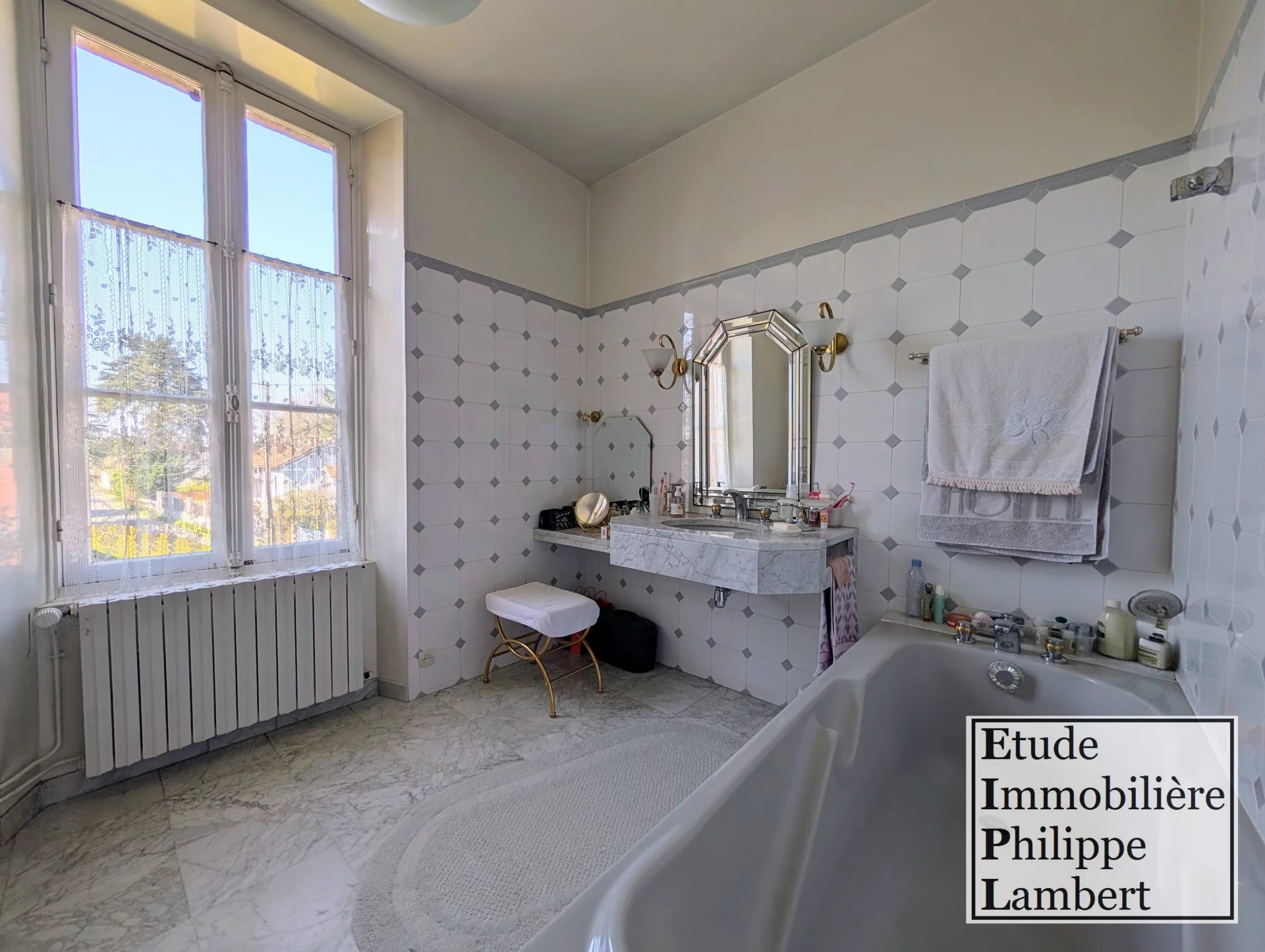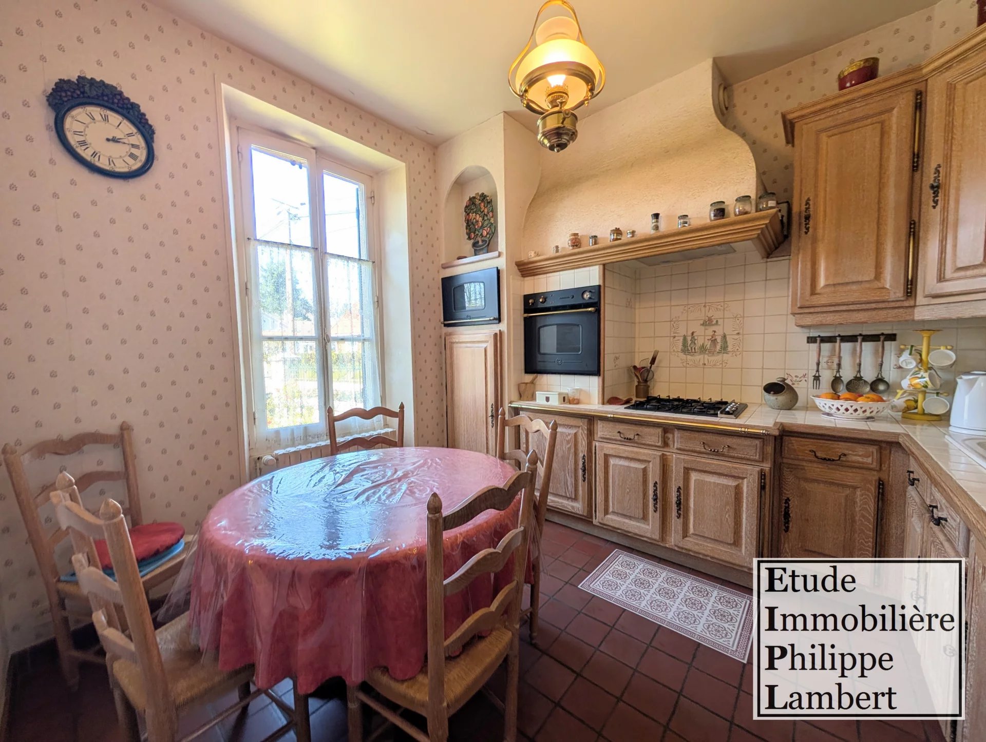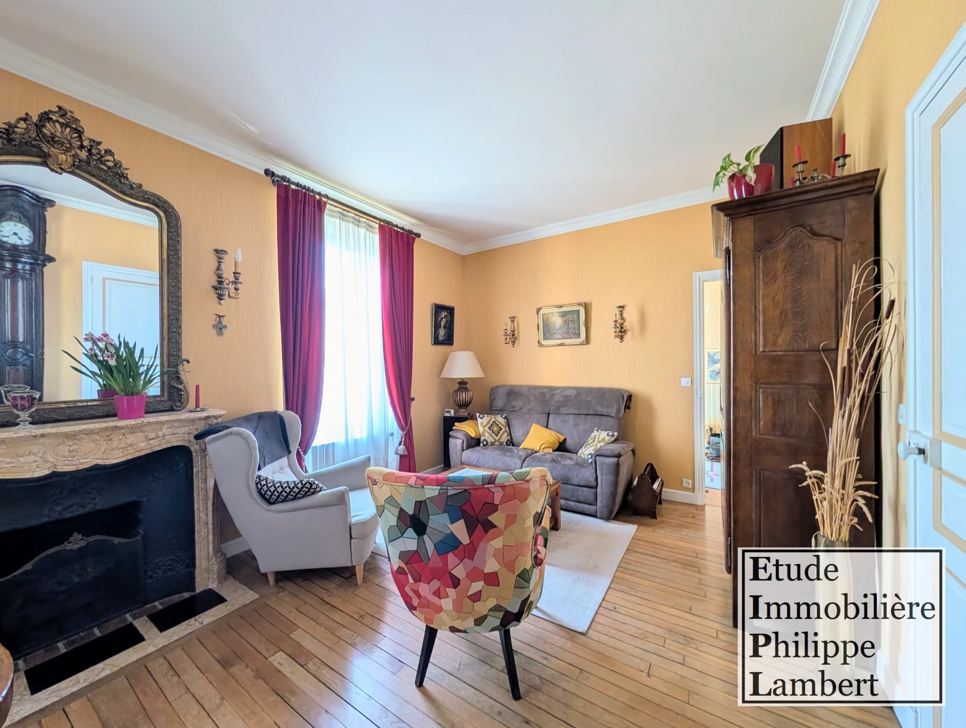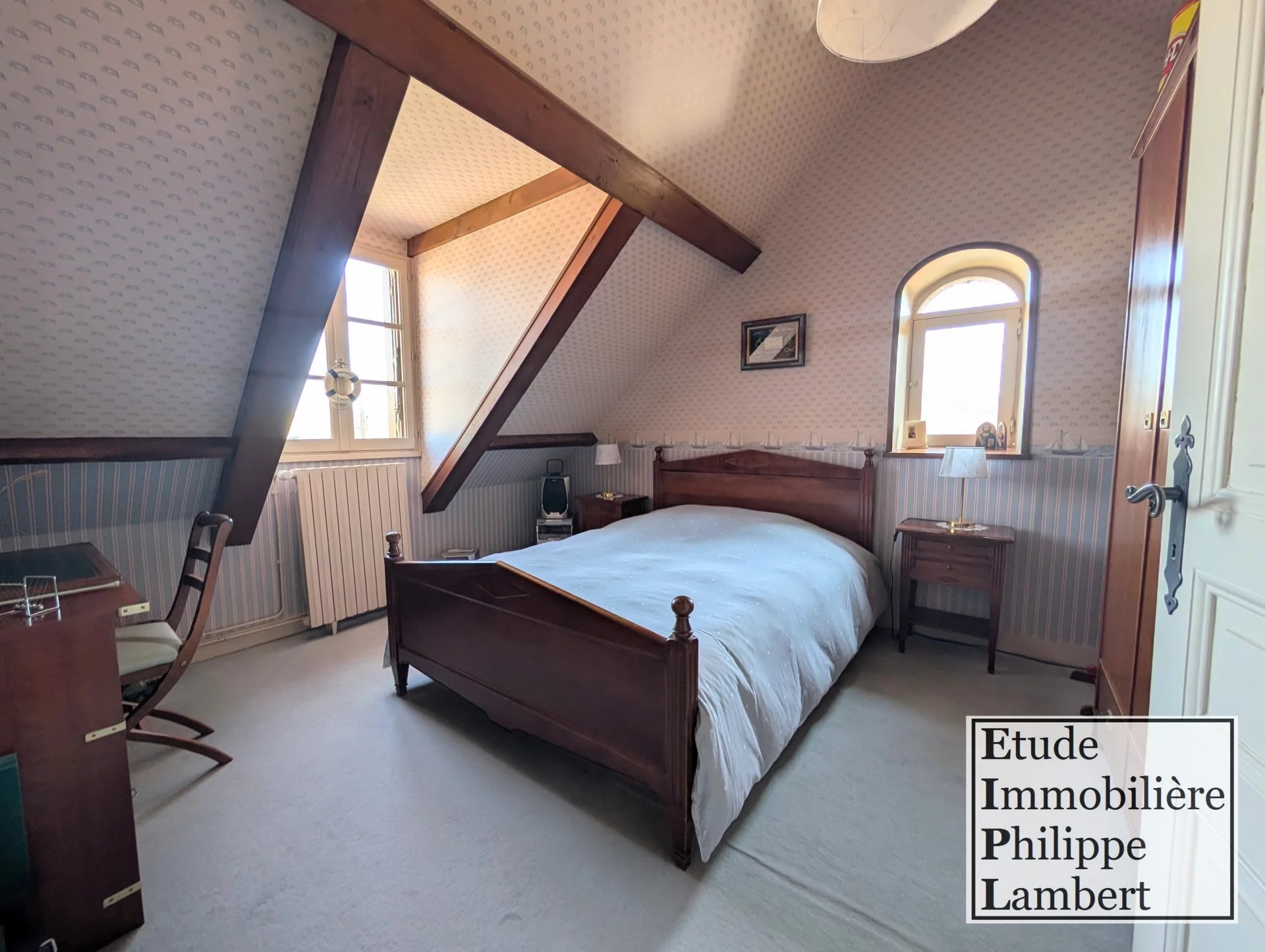 Située à cinq minutes des petits commerces, charmante maison ancienne de sept pièces principales (4 chambres - 2 bureaux) est édifiée sur un terrain de plus de 1000 m² (non divisible). Le rez-de-chaussée se compose d'une grande entrée, d'une cuisine séparée, d'un séjour-salle à manger, d'un bureau et de toilettes. Le premier étage dispose de deux chambres, dont une avec salle d’eau attenante, d'une salle de bains et de toilettes indépendants. Le second étage comprend deux chambres supplémentaires, un bureau et une salle d'eau avec toilettes. L'ensemble est complété par un sous-sol comprenant une pièce de rangement, une buanderie et une cave à vin, ainsi que par un garage indépendant d'environ 30 m².