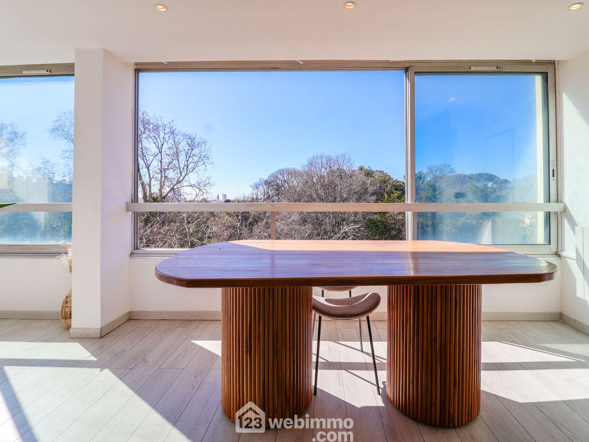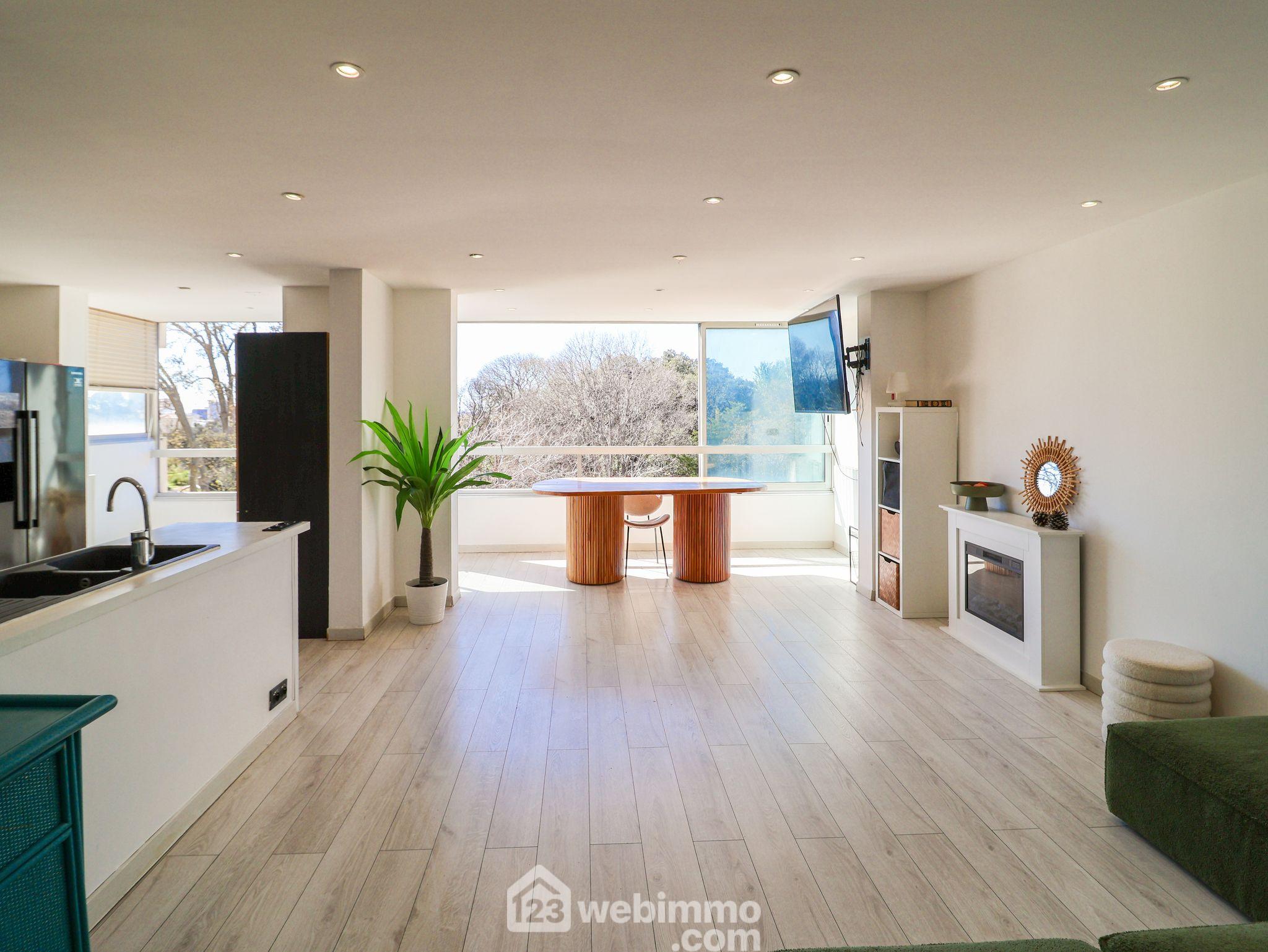 Votre agence 123webimmo vous présente : LE CABOT. EXCLUSIVITE. Au sein d'une résidence fermée dans un environnement calme et verdoyant jouxtant le parc de Maison Blanche, charmant appartement de type 4 en 3ème et dernier étage sans ascenseur, traversant et exposé Ouest, d'une superficie de 104 m² habitables, offrant une très belle vue dégagée. Entièrement rénové avec goût, ce bien séduit par sa luminosité et son atmosphère chaleureuse. Il se compose d'un vaste séjour de 40 m², ouvert sur une cuisine moderne entièrement équipée. L'espace nuit propose trois chambres avec rangements, une luxueuse salle de bains avec toilettes ainsi qu'une salle d'eau. Les toilettes sont séparées. Prestations de qualité : climatisation réversible, double vitrage, volets roulants électriques, porte blindée, fibre optique. CAVE. PLACE DE PARKING PRIVATIVE INCLISE. BOX FERME EN SOUS-SOL EN SUS POUR 20 000¤ Charges de copropriété 320 ¤ par mois eau chaude comprise. Taxe foncière 2250¤. Les informations sur les risques auxquels ce bien est exposé sont disponibles sur le site du gouvernement : https://www.georisques.gouv.fr.Informations LOI ALUR : Soumis au régime de copropriété. Nombre de lots : 35. Quote part annuelle(moyenne) : 320 euros. Honoraires charge vendeur. (gedeon_28517_32986486)
