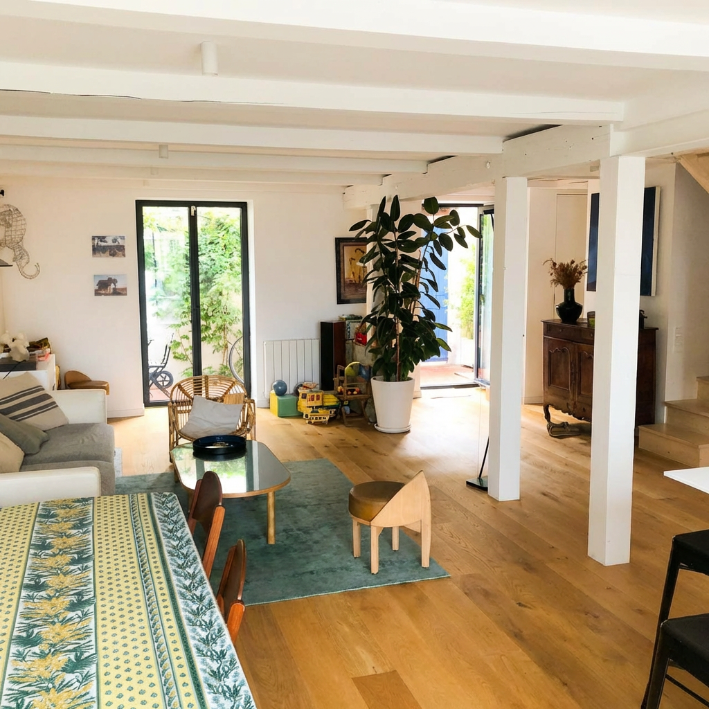 Située dans une impasse au calme, à 3 minutes à pied de la place Saint-Eugène et à 10-15 minutes des plages (Vallon des Auffes, Catalans), cette maison de ville traversante Nord-Sud de 95 m² a été entièrement rénovée en 2022 par des professionnels (plomberie, électricité, isolation, menuiseries, doublages).