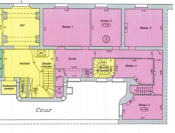 Les locaux se composent d'une entrée réception, de 5 grands bureaux fermés et d'un sous-sol aménagé de 29 m² (bureaux complémentaires et archives). Accès indépendant sur rue. Parties communes entièrement rénovées. Environnement calme et confidentiel.