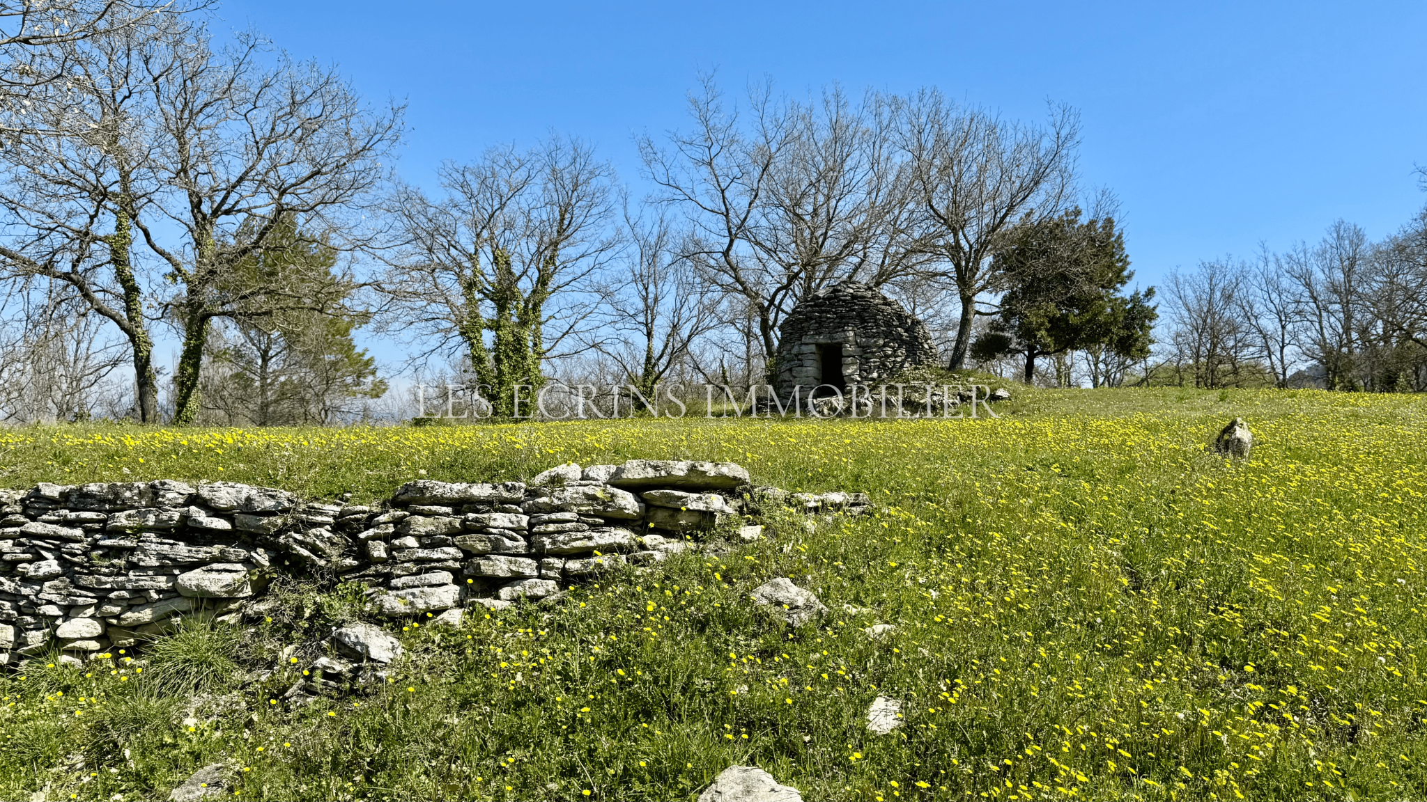 À proximité, un préau couvert accueille une grande table, parfaite pour les repas à l'ombre lors des journées ensoleillées. Le terrain révèle également une dimension plus authentique, avec la présence d'une borie en pierre sèche, témoin du patrimoine local, qui s'intègre parfaitement dans le paysage et renforce le caractère du lieu.
