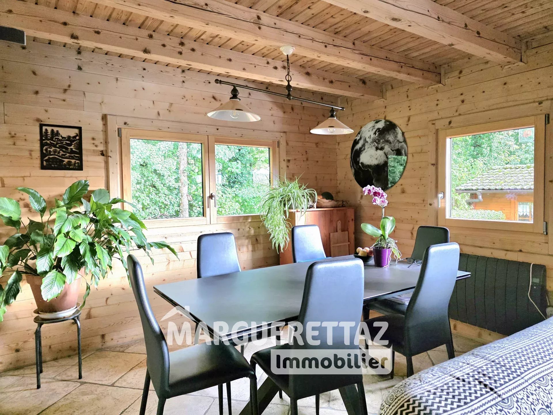 CHALET AVEC PISCINE ET GRAND TERRAIN – VIUZ-EN-SALLAZ Situé dans un secteur résidentiel très prisé sur la commune de Viuz en Sallaz, à deux pas du centre, des écoles, commerces et transports, venez découvrir ce très beau chalet de 106 m², construit en 1982 et récemment rénové. Implanté dans un environnement calme et verdoyant, vous saurez en plus apprécier son magnifique terrain de 2 295 m² plat, joliment arboré avec sa piscine et une grande terrasse de près de 70 m². Les atouts du bien : - Proche écoles, commerces et transports. - Accès rapide à l’autoroute A40, à 30 min de Genève et 20 min d’Annemasse. - En bout d'impasse, secteur calme et verdoyant. - Exposition Sud/Ouest avec vue dégagée sur la campagne, sans vis-à-vis. - Terrain plat, arboré. - Cour goudronnée. - Piscine 10x4 m avec son local technique de 12m² - Terrasse de 70 m². - 4 stationnements extérieurs, un garage fermé et un abris voitures deux places. - Fenêtres en bois à l'intérieur et en aluminium à l'extérieur, double vitrage des portes et fenêtres, changées en 2022. - Assainissement collectif (tout à l’égout). Agencement : Rez-de-chaussée rénové en 2011 comprenant : → entrée → cuisine équipée ouverte → salle à manger → salon → salle de bains avec toilettes. A l'étage : → dégagement → 3 chambres dont deux avec accès au balcon → salle de douches avec toilettes. Dépendances : → abris de jardin → local technique piscine → garage → buanderie → Abris voitures 2 places Performance énergétique : • DPE : Niveau de consommation énergétique : 329 - E Niveau émission des gaz à effet de serre : 13 - B estimation des dépenses annuelles entre 2820 et 3850 Euro Les informations sur les risques auxquels ce bien est exposé sont disponibles sur le site Géorisques : www.georisques.gouv.fr Prix : 600 000 € FAI Honoraires agence : 5 % TTC à la charge du vendeur. Contact : Céline JAMPIETRO – Conseillère Immobilier - celine.jampietro@marguerettaz.immo - 06.83.12.14.18