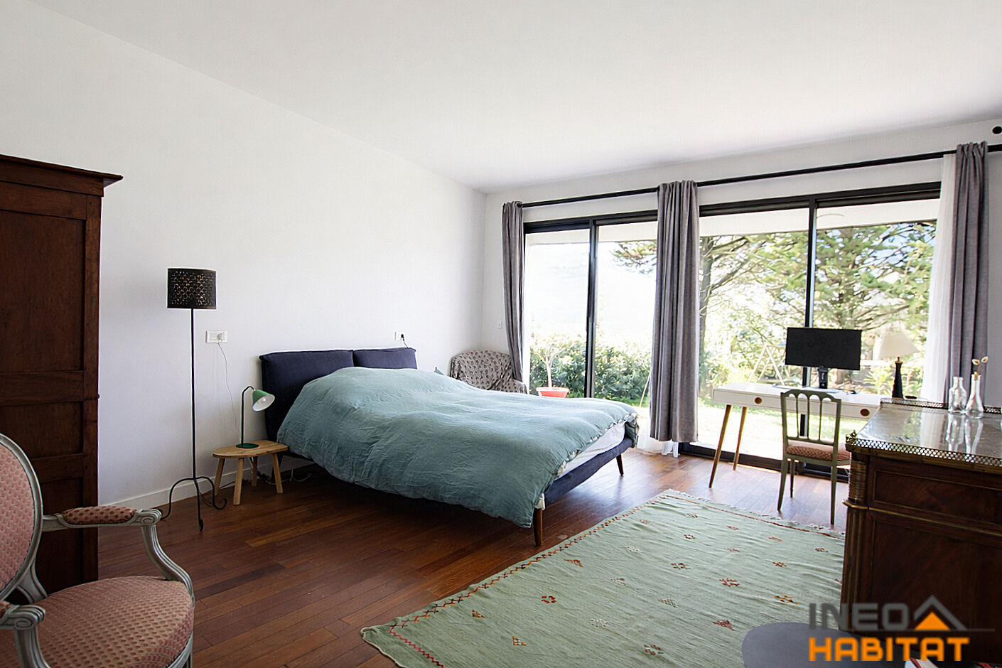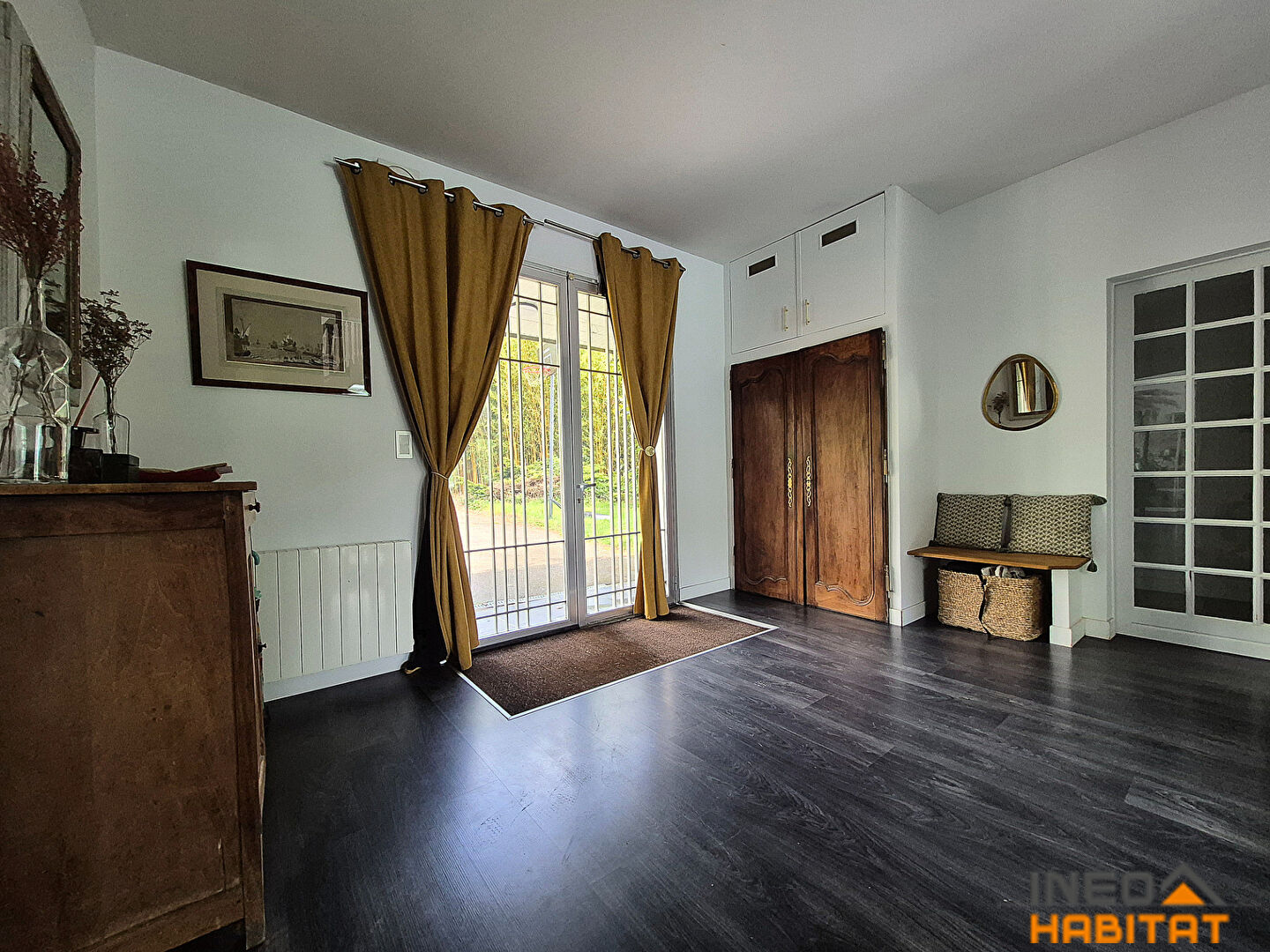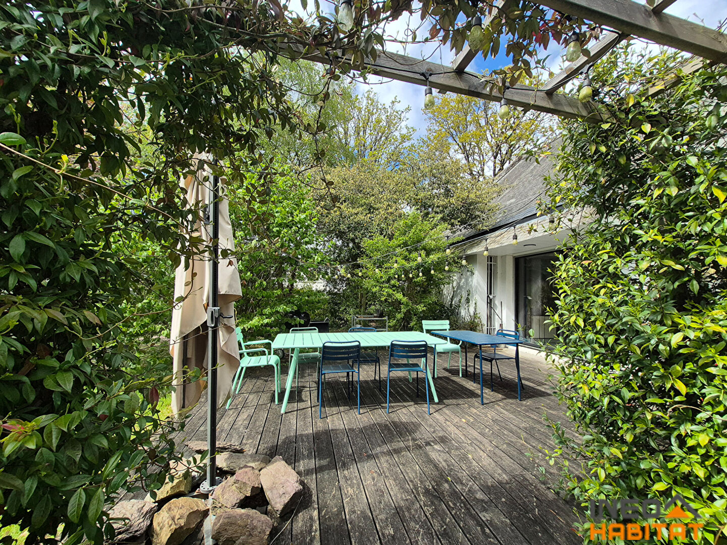 Située à Laillé, dans un environnement calme et recherché, cette spacieuse maison d'architecte construite en 1970 développe environ 307m² habitables sur un magnifique terrain arboré de plus de 1500 m². Le rez-de-chaussée, largement ouvert sur l'extérieur, propose un hall d'entrée, un vaste séjour lumineux agrémenté d'une cheminée avec insert, couloir desservant un espace repas convivial et une grande cuisine aménagée. L'espace nuit de plain-pied comprend deux chambres, une salle d'eau, une lingerie et wc séparés. Un garage complète ce niveau. A l'étage, une mezzanine surplombant le séjour dessert quatre chambres avec rangements, une salle de bains, wc ainsi qu'une suite parentale composée d'une chambre et d'une salle d'eau privative avec wc. La terrasse exposée Sud et le jardin paysager prolongent agréablement les espaces de vie et offrent un cadre verdoyant propice à la détente. Cette maison de caractère séduit par ses volumes généreux, sa luminosité et sa situation privilégiée au sein d'un environnement résidentiel de qualité. Les informations sur les risques auxquels ce bien est exposé sont disponibles sur le site Géorisques : www.georisques.gouv.fr. Retrouvez toutes nos annonces sur notre site : www.ineohabitat.com (4.80 % honoraires TTC à la charge de l'acquéreur.)
