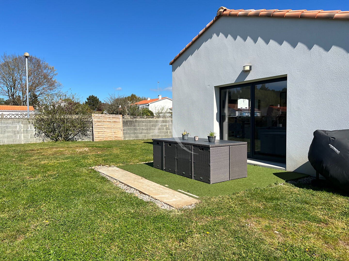 Maison récente de 2023 à Saint-Gervais, entre Challans et les plages. Située dans un environnement calme et agréable, cette maison bénéficie d'un emplacement recherché, à proximité du centre bourg, des commerces et des services du quotidien. Laissez-vous séduire par ces prestations modernes, offrant une superbe pièce de vie baignée de lumière avec ses deux baies à galandage, de sa cuisine ouverte, aménagée et équipée, qui s'intègre parfaitement à cet espace convivial, idéal pour recevoir et profiter du quotidien. Une entrée avec placard complète cet espace fonctionnel. La partie nuit se compose de trois chambres dont deux avec placards intégrés, ainsi que d'une salle d'eau. Un cellier et un garage attenant viennent compléter l'ensemble. A l'extérieur, vous profiterez d'un terrain d'environ 470 m² entièrement clos avec portail électrique, ainsi que de deux terrasses, parfaites pour profiter des beaux jours. Une maison clé en main aux normes PMR, alliant confort, modernité et qualité de vie. A découvrir sans tarder ! (5.16 % honoraires TTC à la charge de l'acquéreur.)
