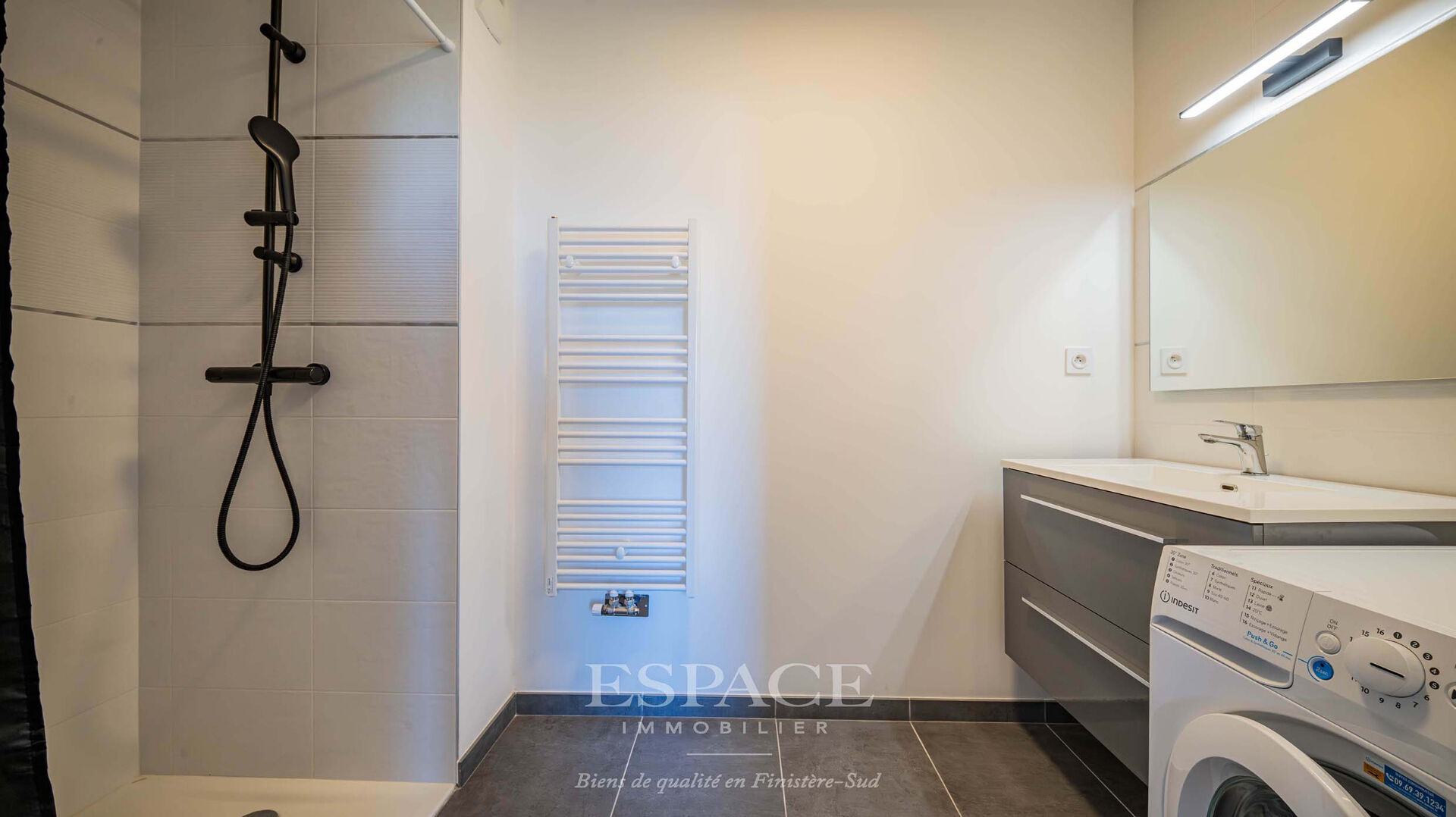 Situé à Concarneau, au 2ème étage d'une résidence contemporaine de 2023, cet appartement T2 offre un cadre de vie recherché, alliant confort moderne, fonctionnalité et proximité immédiate des commerces et services (centre commercial, pharmacie, laboratoire, vétérinaire). Parfaitement entretenu, doté de prestations soignées et adapté aux personnes à mobilité réduite (P.M.R), il se compose d'une entrée avec placard, d'un séjour avec cuisine ouverte aménagée et équipée, d'une chambre avec rangement intégré, d'une salle de douche et d'un WC indépendant. L'espace de vie se prolonge harmonieusement par un balcon de 9 m², véritable atout pour profiter d'un extérieur agréable au quotidien. Un stationnement privatif en sous-sol fermé complète ce bien, apportant confort et sécurité au quotidien. Grâce à sa localisation stratégique et à la qualité de la résidence, cet appartement répond à de nombreux projets : résidence principale pour un quotidien confortable à proximité immédiate des commodités, pied-à-terre pour profiter de la côte dans un environnement pratique et récent, ou investissement locatif offrant une forte attractivité et une mise en location facilitée grâce à ses prestations et à son emplacement. Un bien clé en main, sans travaux, conjuguant sérénité, qualité de vie et potentiel patrimonial. Cet appartement est à découvrir avec l'agence ESPACE IMMOBILIER, spécialiste des belles maisons et des beaux appartements en Finistère Sud. Les informations sur les risques auxquels ce bien est exposé sont disponibles sur le site Géorisques : www.georisques.gouv.fr. (5.46 % honoraires TTC à la charge de l'acquéreur.) Copropriété de 52 lots - dont 25 lots habitation. Charges annuelles : 789.68 euros.