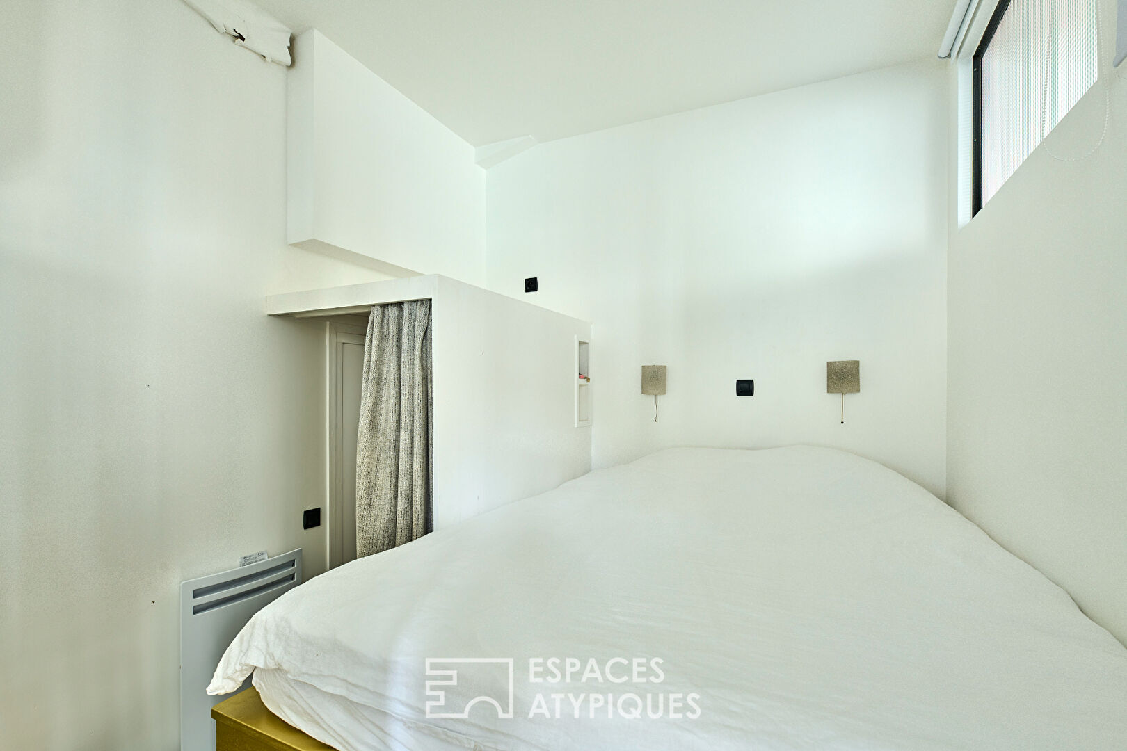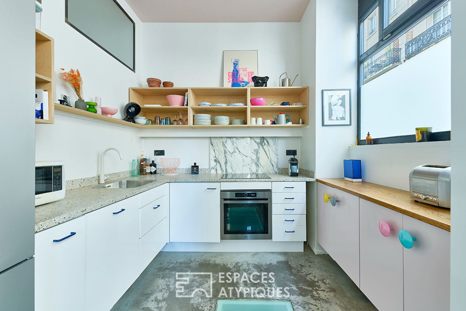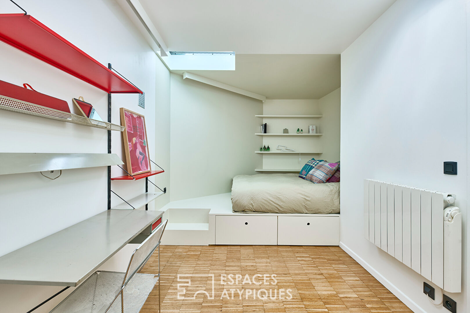 Situé au coeur du 9e arrondissement de Paris, dans une rue calme du quartier Trudaine-Maubeuge, ce loft en souplex totalisant 73,02 m² (71,14 m² Carrez) a bénéficié d'une rénovation soignée signée par l'architecte Marion Mailaender. Dès l'entrée, le volume de la pièce de vie séduit par sa luminosité naturelle ainsi que par sa belle hauteur de 3,30 mètres sous plafond à caissons. Le séjour, aux lignes épurées, s'organise autour d'une cuisine ouverte aménagée et équipée, créant un espace convivial et fonctionnel. Une première chambre ainsi qu'une buanderie complètent ce niveau. Au niveau inférieur, accessible par un escalier intérieur, se déploie une seconde chambre éclairée par 3 puits de lumière, accompagnée d'un espace bureau, d'un dressing sur mesure et d'une salle de bains avec baignoire, douche et toilettes. Ce loft signature au caractère singulier séduit par ses volumes, son calme et son entrée indépendante ainsi que des prestations de qualité et d'une distribution optimisée. Une cave complète ce bien soumis au régime de copropriété. Métro Anvers ou Poissonnière (Lignes 2 et 7) Contact : Prune +33 6 72 07 40 95 Copropriété de 10 lots - dont 10 lots habitation. Charges annuelles : 2134 euros. PRUNE SARTOR (EI) Agent Commercial - Numéro RSAC : 532 522 539 - Paris.