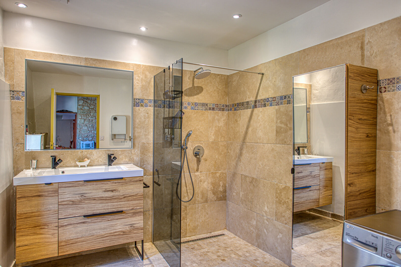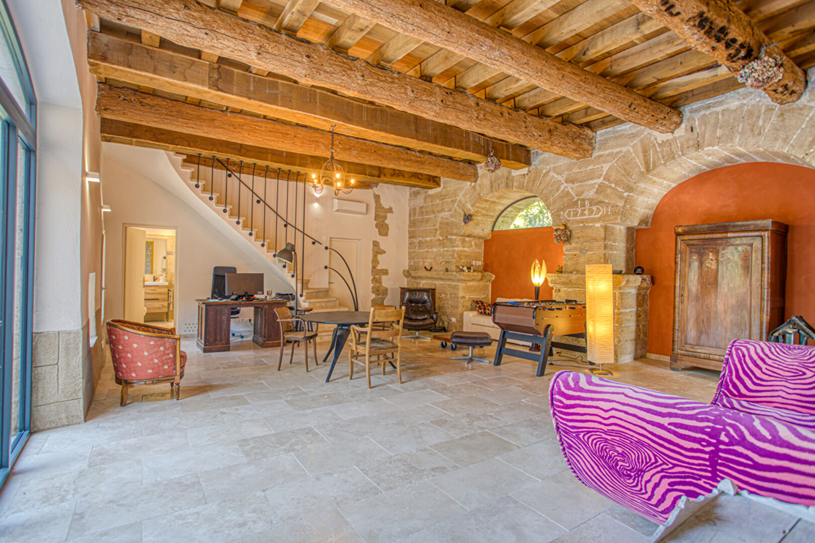 Au coeur d'un environnement paisible, se trouve cet authentique mas en pierre au cachet préservé, entièrement rénové avec élégance, mêlant caractère d'antan et confort contemporain. Dès l'entrée, vous serez séduit par les volumes généreux et la luminosité omniprésente. La vaste pièce de vie, exposée plein sud, bénéficie de grandes baies vitrées en aluminium double vitrage, offrant une belle ouverture sur l'extérieur. Elle est agrémentée d'un poêle à bois, créant une atmosphère chaleureuse et conviviale. La cuisine ouverte, élégante et fonctionnelle, s'intègre parfaitement à cet espace. Une superbe pièce avec une hauteur sous plafond de 3,60 m vient compléter le rez-de-chaussée, ainsi qu'une chambre avec accès direct à la terrasse et une salle d'eau. A l'étage, vous découvrirez une magnifique pièce de 66 m² exposée plein sud, une chambre au charme authentique avec ses anciens carreaux de ciment, une salle de bains avec douche, un espace dressing et deux autres chambres accompagnées d'une salle d'eau. Un escalier avec garde-corps réalisé par un ferronnier d'art apporte une touche unique et relie élégamment les espaces à la pièce de vie. A l'extérieur, le charme opère immédiatement ! Un jardin arboré aux essences méditerranéennes (figuier, grenadier, mandarinier) invite à la détente. Vous profiterez également d'une belle piscine de 11 x 4,50 m (profondeur de 1,20 m à 1,80 m) équipée d'un volet roulant récent. Une dépendance de type loft de 57 m² avec terrasse de 20 m² complète ce bien, idéale pour recevoir où envisager un projet locatif. Un bien rare où charme, confort et art de vivre provençal se conjuguent à la perfection. CLASSE ENERGIE : C / CLASSE CLIMAT : A Montant moyen estimé des dépenses annuelles d'énergie pour un usage standard, établi à partir des prix de l'énergie de l'année 2021 , 2022 et 2023: entre 4290 euros et 5880 euros par an. Les informations sur les risques auxquels ce bien est exposé sont disponibles sur le site Géorisques : www.georisques.gouv.fr Copropriété de 2 lots - dont 2 lots habitation. Mélanie DUC (EI) Agent Commercial - Numéro RSAC : 999 403 306 - Avignon.