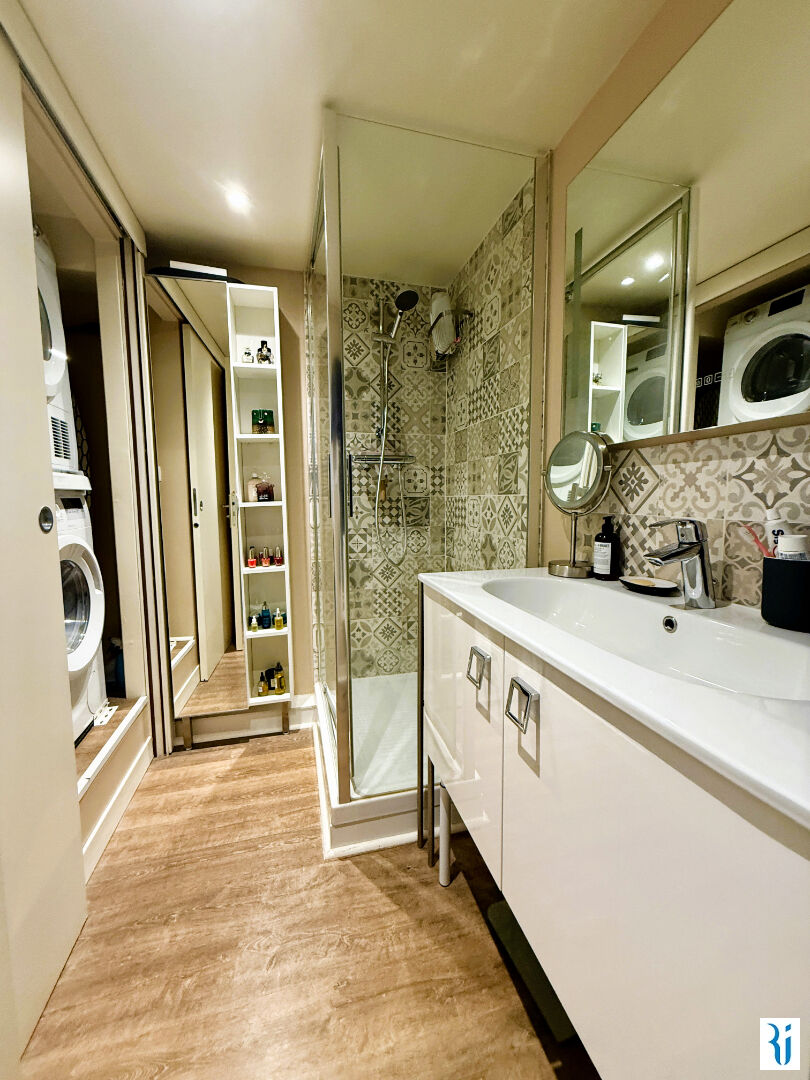 ROUEN CENTRE Jeanne d'Arc SAUVAGE TRANSACTION VOUS PROPOSE UN CHARMANT DUPLEX EN HYPER CENTRE EN TRES BON ETAT AU DERNIER ETAGE D'UN MMEUBLE BRIQUES ET PIERRES AVEC ASCENSEUR COMPRENANT : UNE ENTREE, CUISINE OUVERTE EQUIPEE SUR SALON, CHAMBRE, SALLE DE DOUCHE, LINGERIE ET WC EN DUPLEX : UNE MEZZANINE PERMETTANT UN ESPACE BUREAU ET UNE 2EME CHAMBRE PRECISIONS : Chauffage individuel électrique, double vitrage, eau froide et ascenseur dans les charges, DPE E (bien isolé mais dernier étage), possibilité achat d'un parking couvert en + à proximité NOTRE INSTINCT VOUS LE CONSEILLE POUR : Un achat sans travaux dans un immeuble de standing avec ascenseur, sa distribution efficace, ses rangements (placards, cave), son côté soigné et traversant (5.26 % honoraires TTC à la charge de l'acquéreur.) Copropriété de 14 lots. Charges annuelles : 1160 euros.