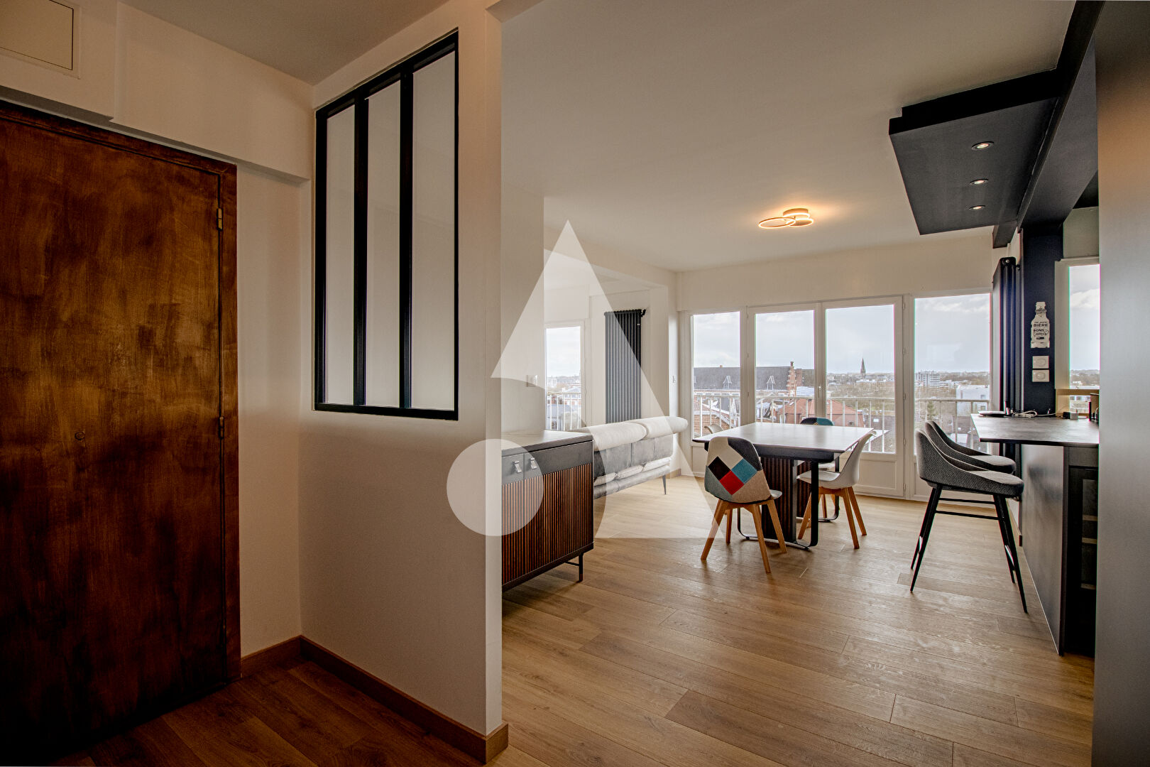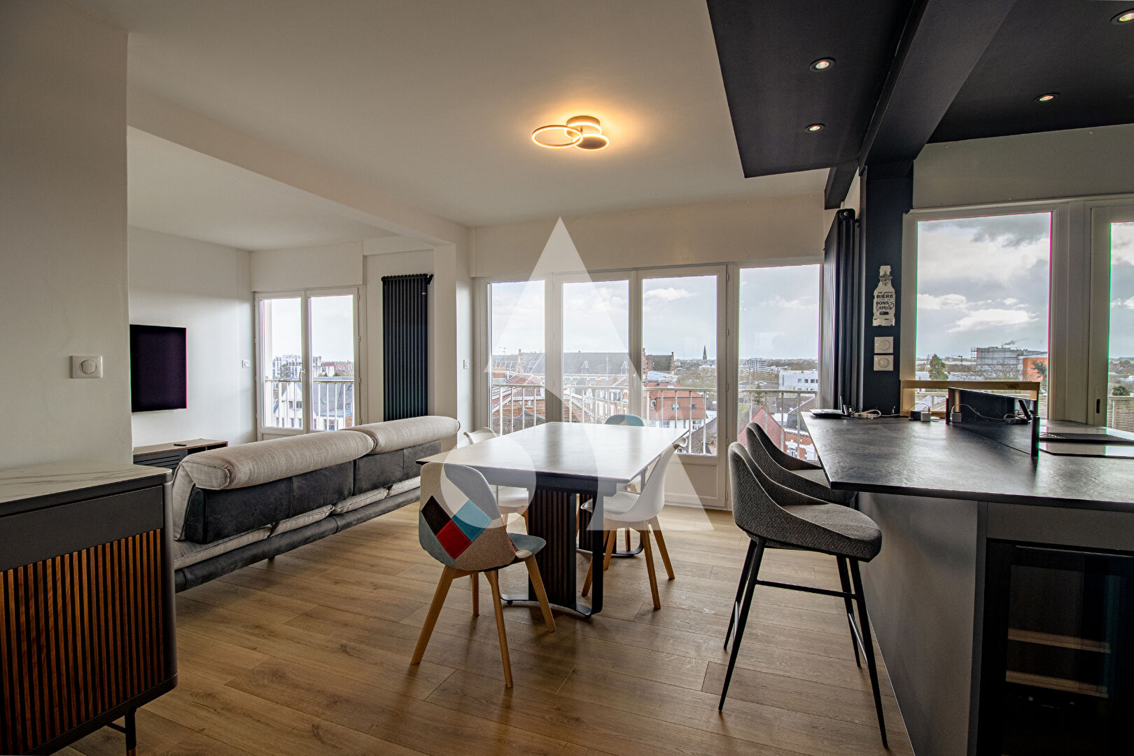 Découvrez ce superbe appartement entièrement rénové, idéalement situé à Valenciennes, à seulement 5 minutes de l'hyper centre-ville et 3 minutes de la gare. Situé au dernier étage d'une résidence de standing avec ascenseur, cet appartement traversant offre une luminosité exceptionnelle ainsi qu'une vue dégagée sur le ciel de Valenciennes. Les atouts du bien : Rénovation complète avec des matériaux de qualité Menuiseries PVC double vitrage + volets roulants motorisés Somfy Parquet intégral, ambiance chaleureuse Grand salon-séjour lumineux avec cuisine ouverte Accès direct à une terrasse confortable depuis la cuisine Hall d'entrée avec grand dressing 2 belles chambres avec dressings dont une avec espace dressing haut de gamme sur-mesure Espace discret pour machine à laver et chaudière Salle de bain moderne avec douche, double vasque et WC Appartement traversant, extrêmement lumineux Prestations complémentaires : Accès privatif à l'avant de la résidence Grand garage privatif Cave en sous-sol Résidence avec ascenseur Emplacement idéal : proche gare, centre-ville et toutes commodités Bien rare sur le secteur ? idéal résidence principale ou investissement Simon Libour Simon LIBOUR (EI) Agent Commercial - Numéro RSAC : 953500980 - Valenciennes.