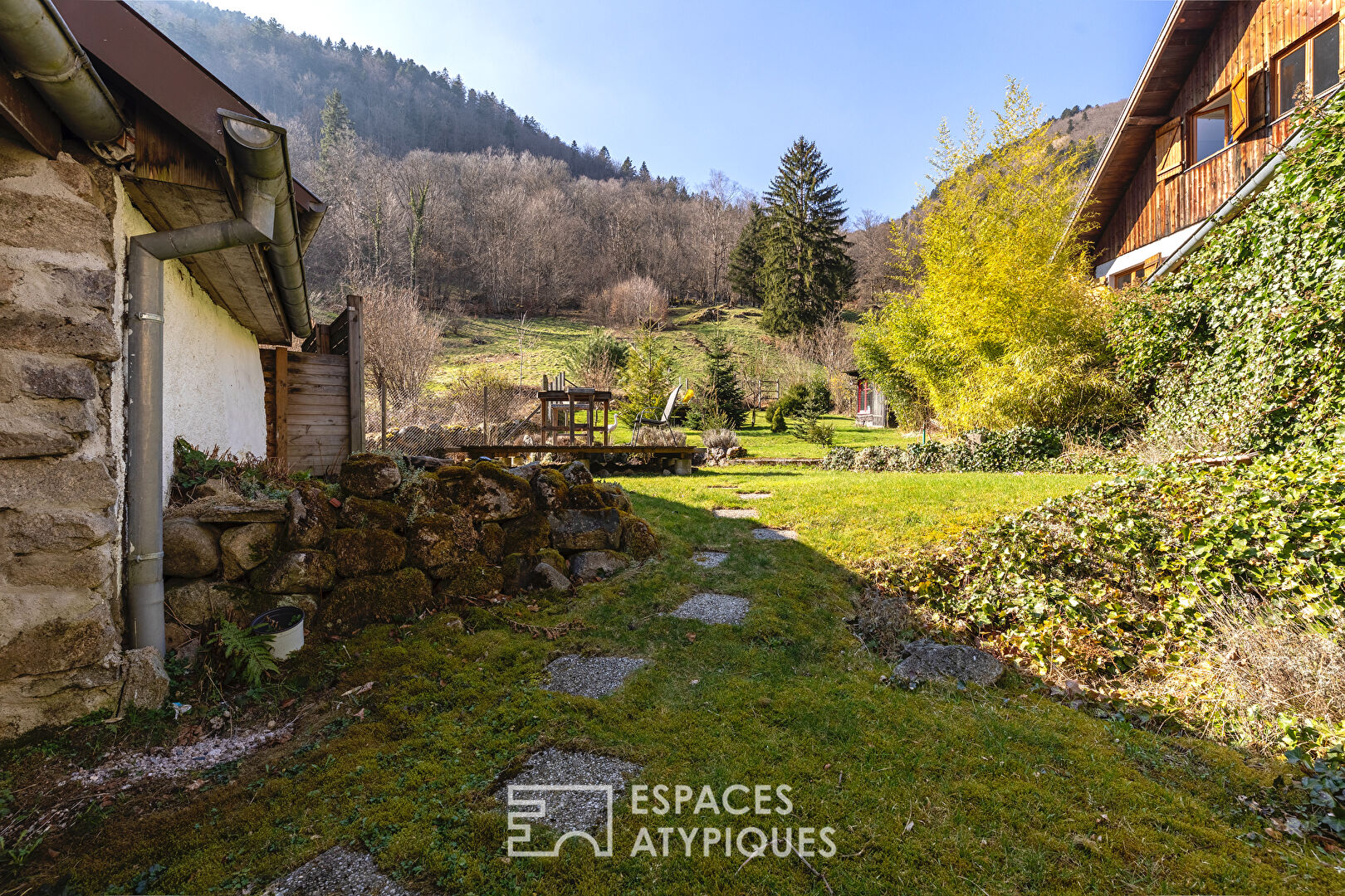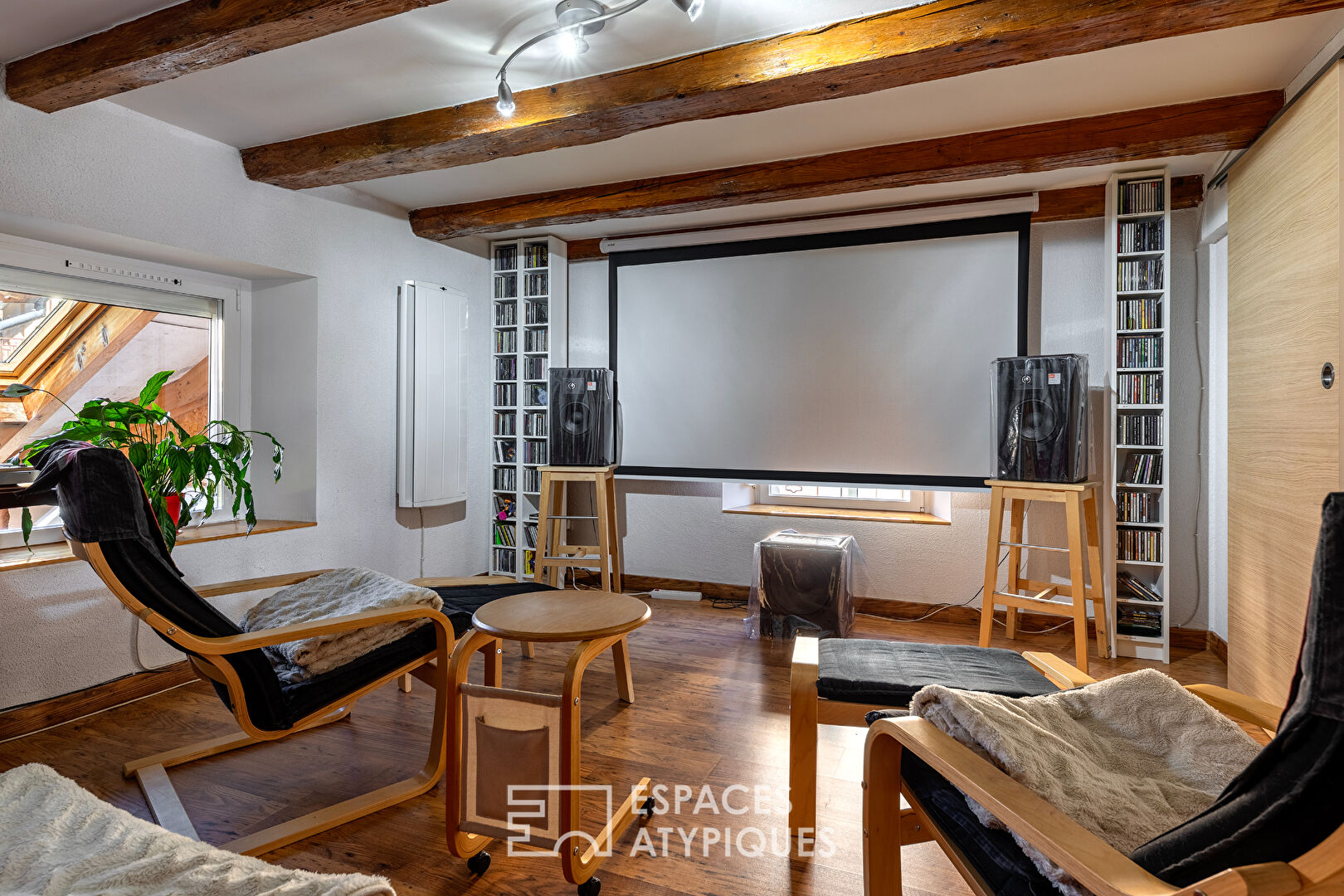 Au coeur d'un environnement naturel préservé, à une heure de Mulhouse et à l'orée des crêtes vosgiennes, se dévoile cette bâtisse de 183 m². Érigée sur une parcelle arborée de 7,5 ares, cette ancienne maison de village a fait l'objet d'une réinterprétation totale il y a une dizaine d'années. Elle offre aujourd'hui un lieu de vie singulier où la chaleur des matériaux d'antan dialogue subtilement avec un esprit résolument contemporain. Dès l'entrée, le ton est donné. Le rez-de-chaussée s'articule autour d'un espace de réception chaleureux comprenant un salon-séjour et une cuisine pensée pour la convivialité. Véritable trait d'union entre l'habitat et son écrin de verdure, une véranda de conception récente inonde les lieux de lumière et offre un panorama immersif sur le jardin paysagé et le relief forestier. Une salle d'eau complète les prestations de ce premier niveau. L'ascension vers les étages s'effectue par un escalier en bois aux lignes aériennes. Le premier niveau révèle une pièce dînatoire aux volumes inattendus, qui distribue un premier espace nuit intimiste composé d'une chambre, d'un dressing et d'une salle d'eau. Niché sous les toits, le dernier étage magnifie l'histoire des lieux avec sa belle charpente apparente. Il dessert deux chambres aux dimensions généreuses ainsi qu'un vaste palier ouvert. Ce dernier offre une toile de fond idéale pour l'aménagement d'un espace de télétravail inspirant ou d'un second salon de lecture. A l'extérieur, le jardin tourné vers la montagne promet une déconnexion totale au fil des saisons, loin du tumulte urbain. Pour parfaire ce bien coup de coeur, un soin tout particulier a été apporté au confort thermique : isolation performante, chauffage à pellets et radiateurs à inertie en pierre réfractaire. Un garage et une place de stationnement viennent clore l'ensemble. Un refuge familial authentique, où l'esprit montagne rencontre un confort de vie irréprochable. 1 garage 1 place de stationnement Commerces à 15 min en voiture Ecoles maternelles et primaires à Kruth à 3 min en voiture Collège à 15 min Lycée à 30 min CLASSE ENERGIE : D / CLASSE CLIMAT : B Montant moyen estimé des dépenses annuelles d'énergie pour un usage standard, établi à partir des prix de l'énergie de l'année 2021 : entre 2000 et 2760 euros Contact : Marc 07.44.88.95.17 Marc CALOGERO (EI) Agent Commercial - Numéro RSAC : 982590853 - Colmar.
