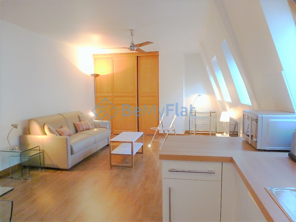 DISPONIBLE 07/05/2026 : Dans un immeuble de bon standing, au calme absolu, BeMyFlat vous présente ce très beau studio meublé, rénové avec des matériaux de qualité, en bon état général et en étage élevé avec ascenseur. Il se compose d'un séjour avec canapé lit double Rapido, une grande penderie, un coin repas, une cuisine américaine parfaitement équipée et une salle d'eau avec fenêtre, WC et machine à laver. Commerces et transport à proximité immédiate.