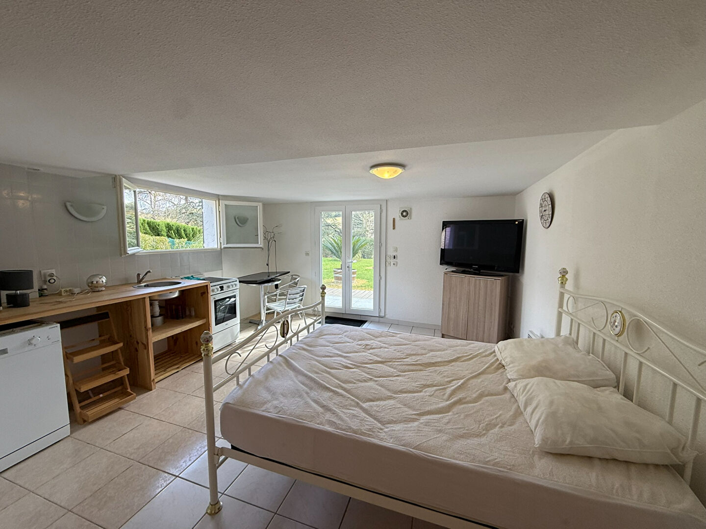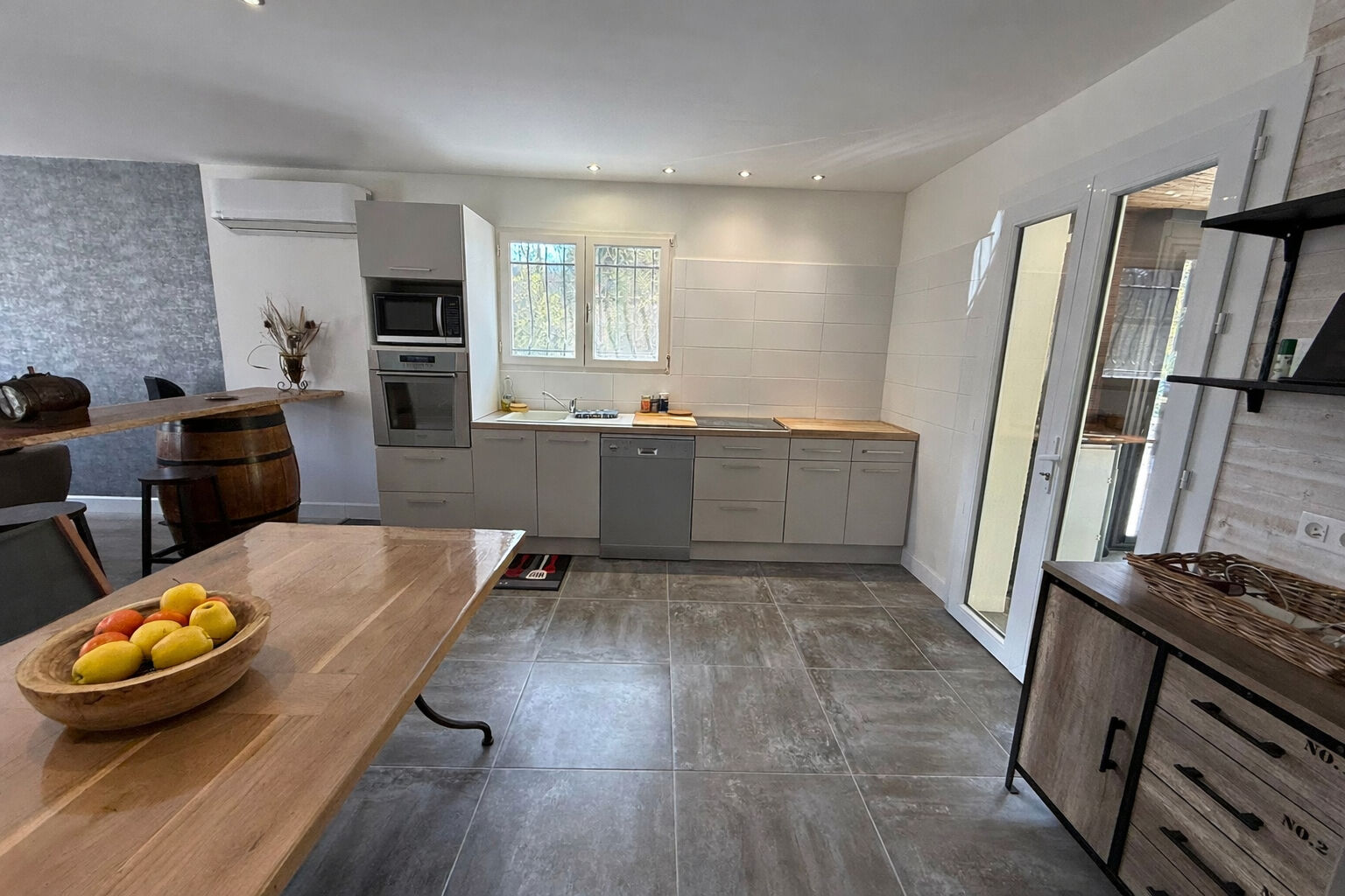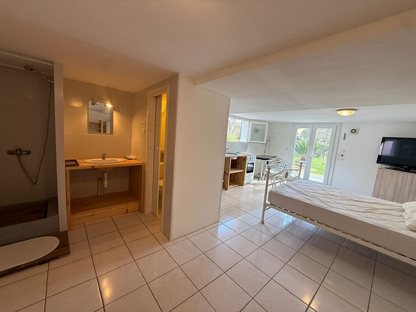 Maison avec véranda chauffée dépendance indépendante piscine et grand terrain sans vis à vis à proximité de Carcassonne - Implantée dans un secteur calme à proximité immédiate des commodités, cette maison construite en 2002 développe 141 m² habitables sur un terrain de 1 625 m² sans vis-à-vis. L'organisation distingue clairement les espaces annexes et l'habitation principale. Le rez-de-chaussée comprend un garage de 60 m², un atelier de 20 m² et un studio indépendant de 27 m² avec salle d'eau WC et kitchenette. La partie habitation accessible de plain-pied côté piscine s'articule autour d'une pièce de vie de 50 m² avec cuisine ouverte, prolongée par une terrasse et une véranda chauffée. L'espace nuit propose deux chambres, une salle d'eau et un WC indépendant. L'extérieur offre un jardin paysagé avec piscine et jacuzzi. Menuiseries double vitrage, isolation en toiture et murs, chauffage électrique avec climatisation dans le séjour. Ensemble fonctionnel avec dépendance autonome adaptée à différents usages.