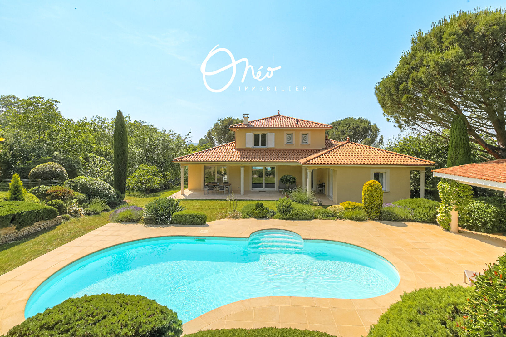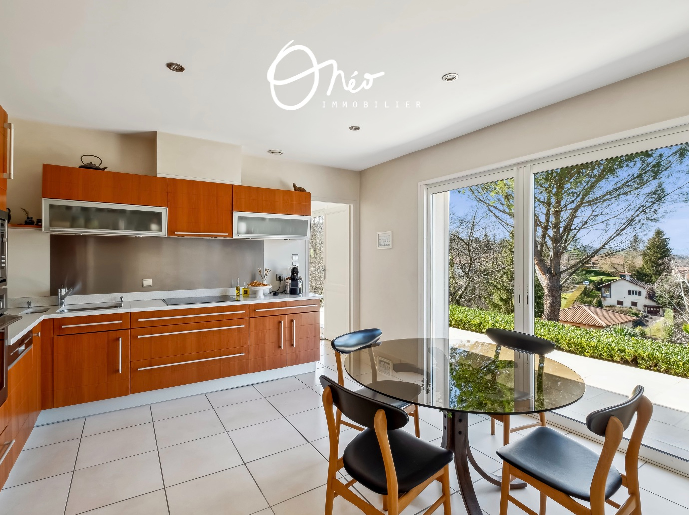Nouvelle exclusivité Onéo immobilier - Rare ! Aux portes de Lyon, bien d'exception à découvrir sans attendre. Toute l'équipe Onéo immobilier est fière de vous présenter la "VILLA NATURE", une propriété d'exception au cadre verdoyant unique, en plein coeur du village de Saint-Pierre de Chandieu. Cadre idyllique et vue d'exception pour cette sublime propriété confidentielle de choix, idéalement située en plein coeur du charmant village de Saint-Pierre-de-Chandieu. Implantée sur les hauteurs du coeur du village, sur une superbe parcelle paysagée de 2152 m2 avec piscine profitant d'une vue dégagée unique et panoramique, coup de coeur assuré pour cette incroyable propriété 6 pièces de 200 m2 (185,92 m2 carrez) avec sous-sol complet aménagé. En entrant, vous découvrirez le vaste hall ouvrant sur l'agréable cuisine toute équipée profitant d'une première terrasse avec vue dégagée ainsi que sur la superbe pièce de vie de plus de 55 m2 avec ses baies à galandage ouvrant sur la terrasse et le jardin. Sur ce même niveau, vous apprécierez la superbe suite parentale de plus de 38 m2 tournée sur le jardin, avec son dressing complet aménagé sur-mesure et sa belle salle de bains ainsi que la seconde chambre à l'ouest de 11,50 m2. A l'étage, vous découvrirez deux belles chambres de 11,45 m2 et 12,75 m2 avec parquet et dressings aménagés ainsi qu'un bureau ouvert, actuellement aménagé en bibliothèque. Au niveau inférieur de la maison, vous disposerez d'une belle buanderie ainsi que d'un très grand garage double de plus de 65 m2 avec porte motorisée donnant sur l'entrée de la parcelle et sur son aire de stationnements. Cerise sur le gâteau, vous serez séduits par la très jolie cave, idéale pour conserver vos plus belles bouteilles et organiser des dégustations conviviales. A l'extérieur, vous serez comblés : environnement confidentiel préservé de tout vis-à-vis, cadre verdoyant, vue d'exception, calme complet, nature omniprésente, piscine baignée de soleil, belles terrasses, espaces verts paysagés avec soin... Un cadre idyllique en plein coeur du village, unique ! Côté confort : - Très bon DPE (C) - Menuiseries PVC / Volets roulants électriques - Portes à galandage dans l'espace de vie - Porte garage motorisée - Chaudière au gaz - Climatisation Les plus : - La situation exceptionnelle au pied de toutes les commodités du coeur village - Le cadre verdoyant idyllique - Les prestations soignées - La vue panoramique Prix de vente : 895.000 euros (Honoraires Charge Vendeurs). Plus d'informations et visites : Maud 06 24 52 68 36 / maud@oneo.fr