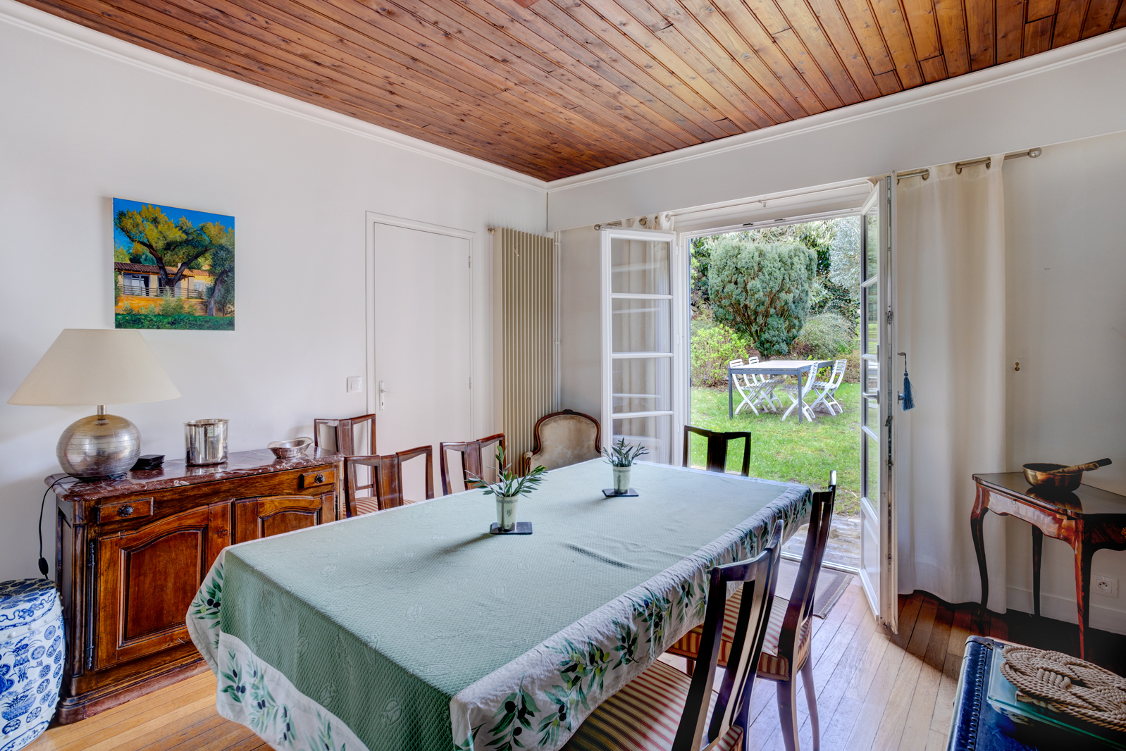 Exclusivité : Coup de coeur pour cette maison fin XIXème ayant bénéficié d'une extension en 1990. D'une surface d'environ 135m², cette maison séduit dès l'entrée par son charme préservé. Elle offre un séjour avec cheminée, une salle à manger ouverte de plain-pied sur le jardin, écrin de verdure orienté Ouest, une cuisine séparée lumineuse, une chambre avec sa salle de bains et un bureau. L'étage accueille une mezzanine avec un second bureau, trois chambres et une salle de bains. Une grande cave et un garage avec deux places (troisième possible en extérieur). La maison est située dans le quartier résidentiel de «La Monesse / Croix Bosset» à l'entrée de la forêt de Fausses-Reposes. Les écoles Croix Bosset ou Saint Thomas de Villeneuve, les commerces ainsi que les gares de Sèvres Ville d'Avray et Chaville Rive Droite (ligne L et U ) sont accessibles à pied.