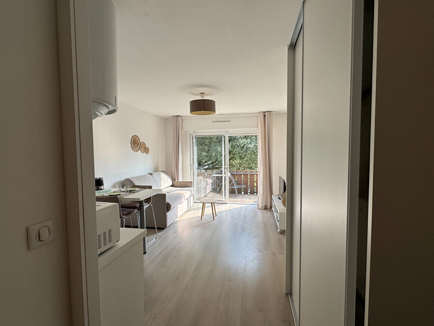 Dans le quartier résidentiel du PARC DE ROYAN, idéalement situé à seulement 150m de la plage, et 50m du Marché du Parc, au 1er étage d'une petite résidence à faibles charges, Agréable appartement, en très bon état, lumineux, et comprenant : Une entrée avec placard, une pièce de vie ouvrant sur balcon (expo. Sud) avec VUE DEGAGEE, une cuisine ouverte, et une salle d'eau avec wc. Chauffage électrique. Parking privatif. Sa situation privilégiée permet de rejoindre la plage et les commerces à pied, tout en profitant d'un environnement boisé. (7.00 % honoraires TTC à la charge de l'acquéreur.) Copropriété de 26 lots. Charges annuelles : 410 euros.