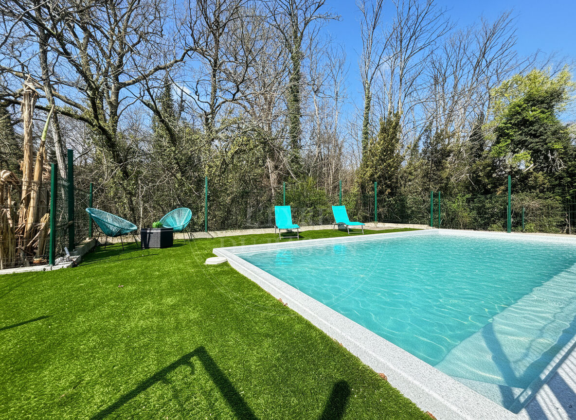 Idéalement située entre Bordeaux et le Bassin d'Arcachon, à proximité des commodités (boulangerie, école...) accessibles à pied, cette jolie maison de plain-pied construite en 2007 vous séduira par son agencement fonctionnel et sa belle vue sur la forêt. Dès l'entrée, vous découvrirez une belle pièce de vie de 49 m², comprenant un salon, un séjour et une cuisine aménagée et équipée. Un cellier attenant vient compléter cet espace. Côté nuit, la maison offre une agréable suite parentale de 18 m² avec sa salle d'eau privative et son dressing, une chambre supplémentaire, un bureau, ainsi qu'une salle de bains indépendante et un WC séparé. Un garage avec mezzanine de plus de 40 m² complète l'ensemble et offre un espace de rangement supplémentaire ou une possibilité d'aménagement. A l'extérieur, vous profiterez d'une agréable terrasse et d'une piscine, idéales pour savourer pleinement les beaux jours, tout en profitant d'une belle vue sur la forêt. (4.74 % honoraires TTC à la charge de l'acquéreur.) Coline MARTY (EI) Agent Commercial - Numéro RSAC : 991708165 - Bordeaux.