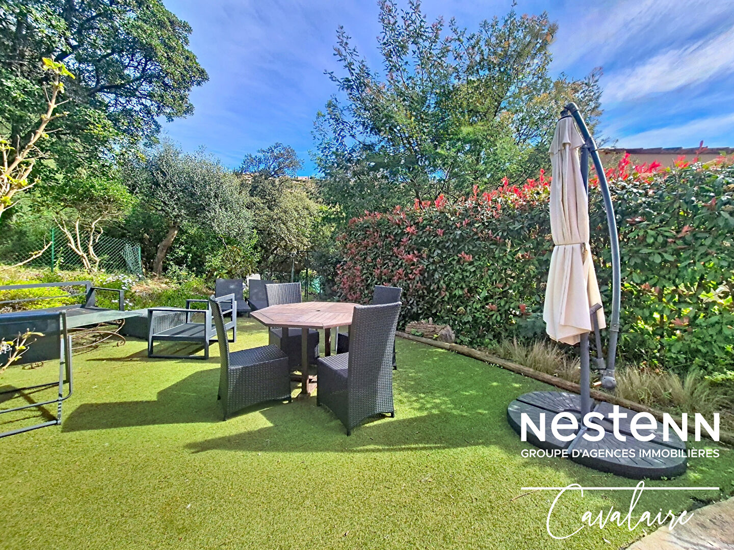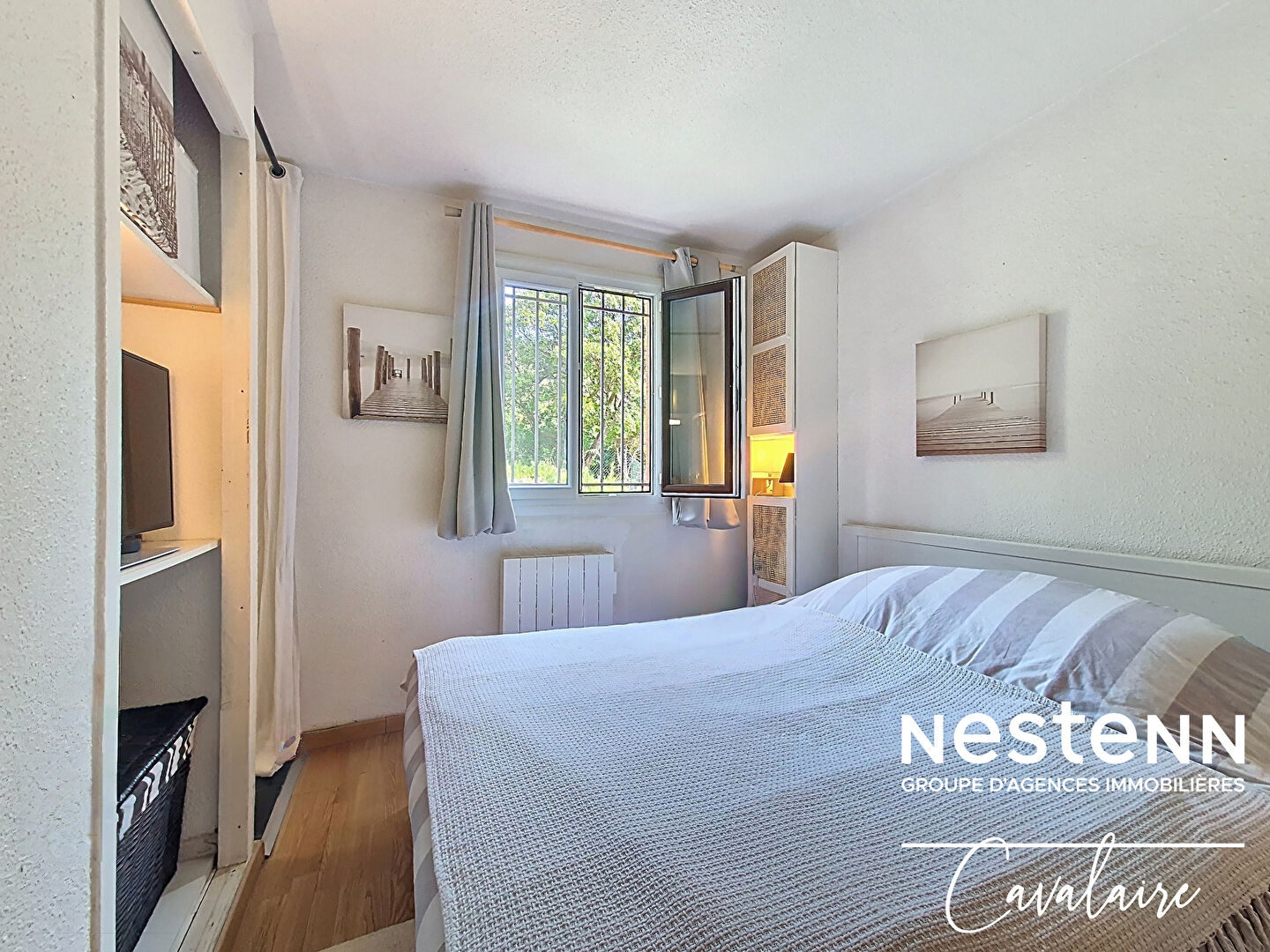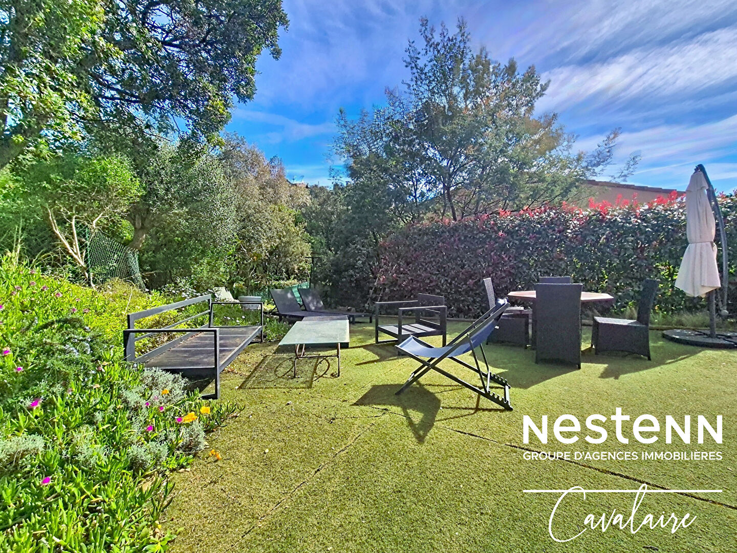 L'agence Nestenn Cavalaire est heureuse de vous présenter à la vente cet appartement de 3 pièces en rez-de-jardin, dans une résidence sécurisée, au calme avec piscine et stationnement privatif. Il est composé d'une entrée avec placards, d'une première chambre avec salle de bains attenante, d'une seconde avec placard, salle de douche et WC, d'un WC indépendant avec laves mains, d'un séjour - salle à manger climatisé avec cuisine aménagée et équipée et un coin couchette, tous deux donnant sur la terrasse couverte d'environ 13 m². En extérieur, un cabanon offrant de généreux volumes de rangement est disposé sur un terrain plat d'environ 150 m², lequel propose un second accès à l'appartement. Une place de parking privative et sécurisée est à disposition, ainsi qu'une piscine dans la résidence. Environnement calme et ensoleillé, contactez nous dès maintenant !