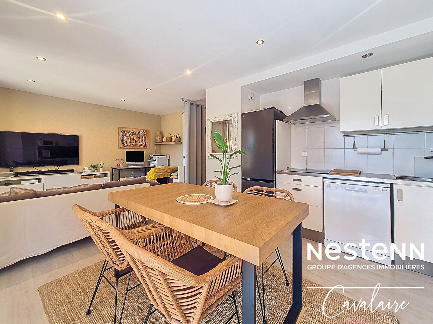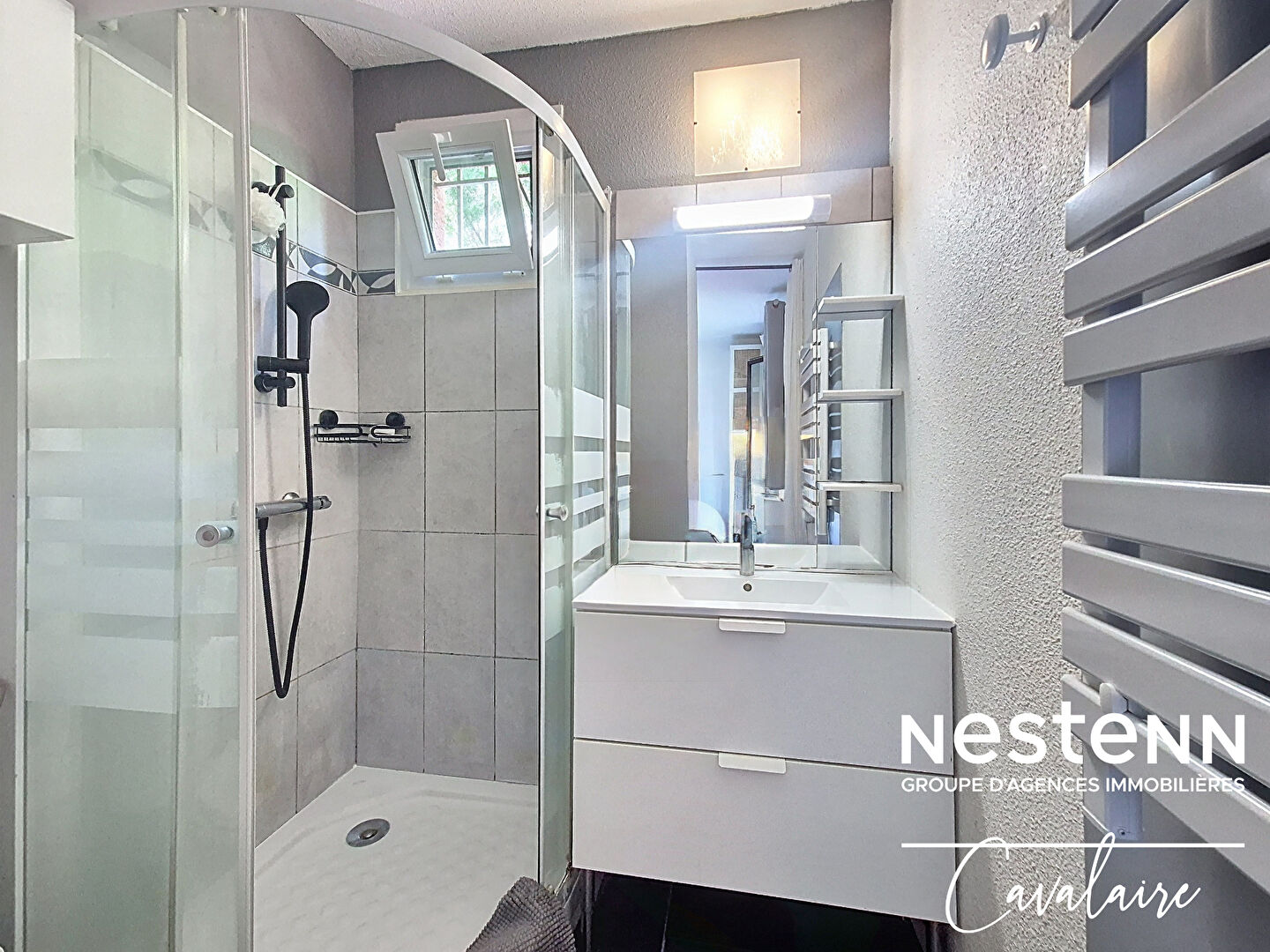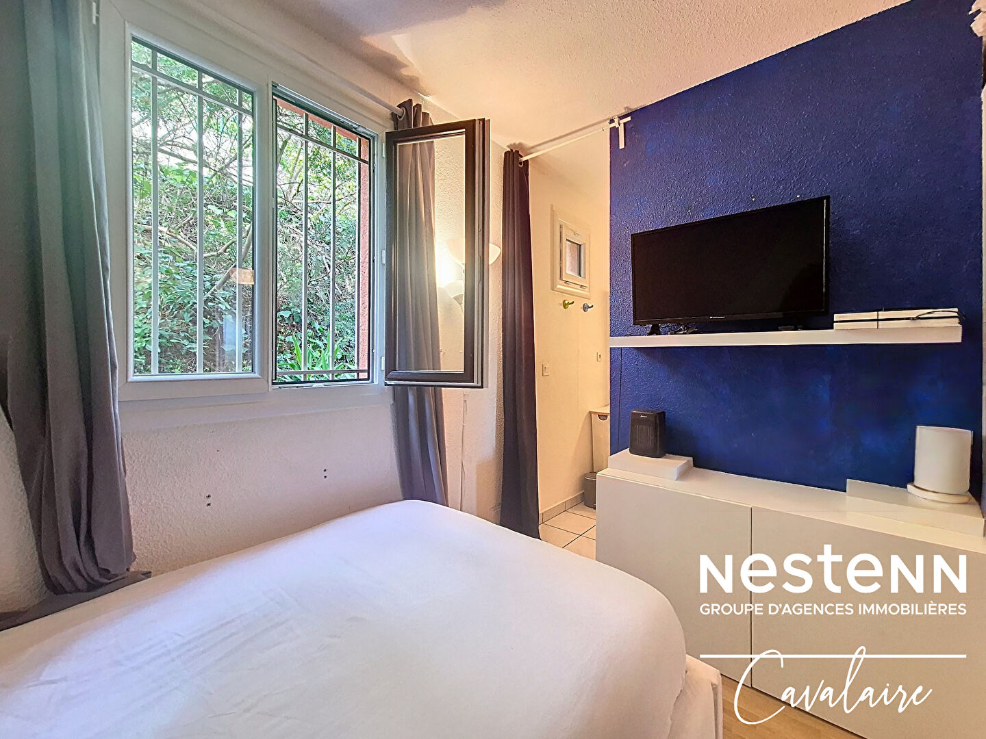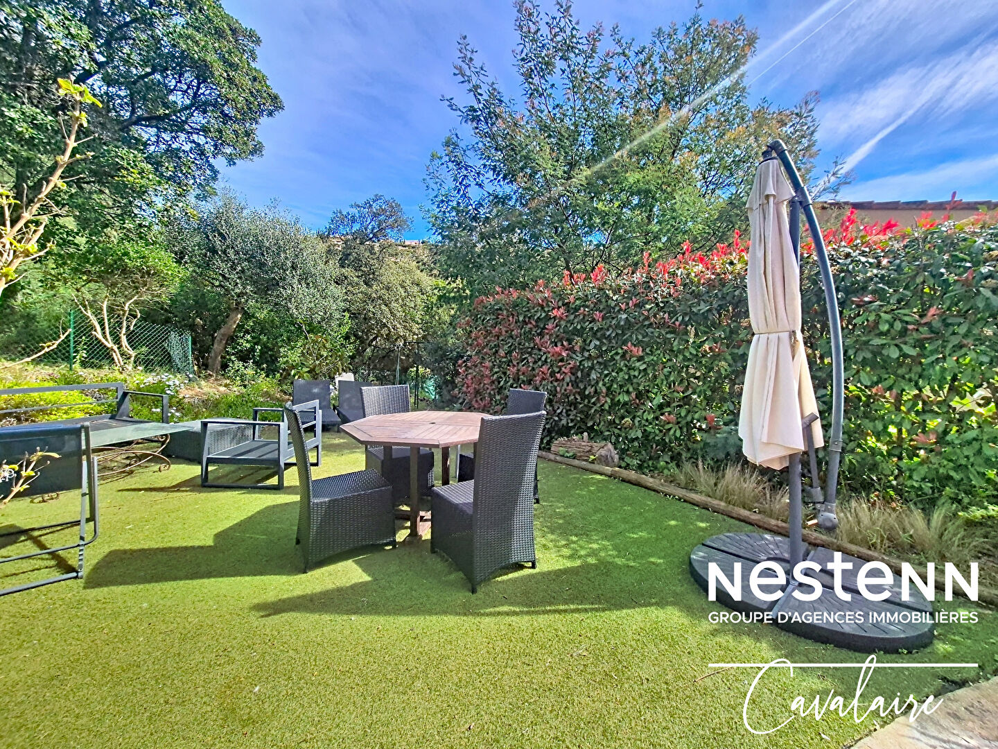L'agence Nestenn Cavalaire est heureuse de vous présenter à la vente cet appartement de 3 pièces en rez-de-jardin, dans une résidence sécurisée, au calme avec piscine et stationnement privatif. Il est composé d'une entrée avec placards, d'une première chambre avec salle de bains attenante, d'une seconde avec placard, salle de douche et WC, d'un WC indépendant avec laves mains, d'un séjour - salle à manger climatisé avec cuisine aménagée et équipée et un coin couchette, tous deux donnant sur la terrasse couverte d'environ 13 m². En extérieur, un cabanon offrant de généreux volumes de rangement est disposé sur un terrain plat d'environ 150 m², lequel propose un second accès à l'appartement. Une place de parking privative et sécurisée est à disposition, ainsi qu'une piscine dans la résidence. Environnement calme et ensoleillé, contactez nous dès maintenant !
