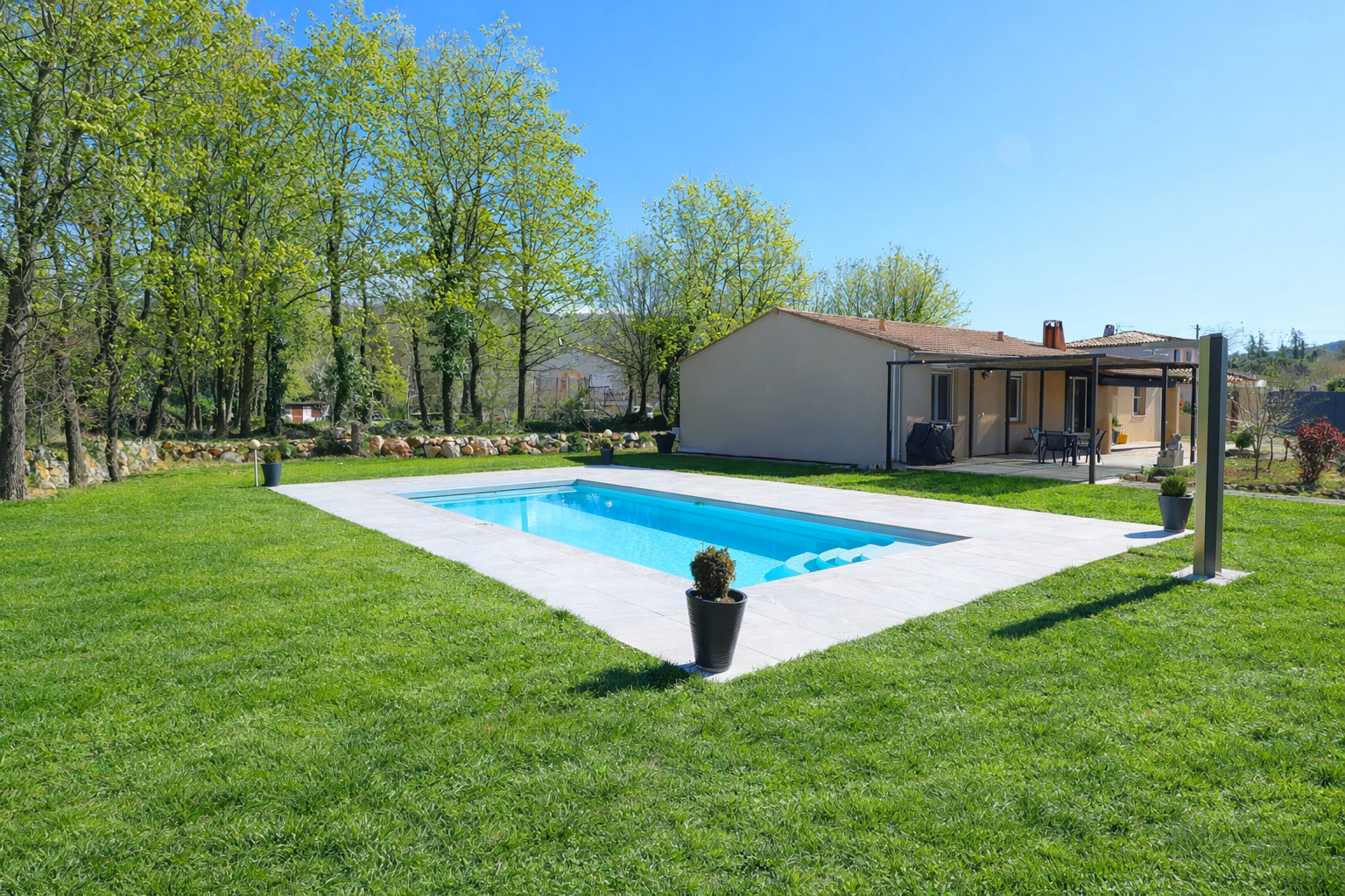 * Exclusivité SAINT CEZAIRE SUR SIAGNE * Sur un terrain de 1606 m² , jolie villa de plain pied de 118 m² habitables, entièrement rénovée et totalement climatisée. Comprenant : une grande cuisine équipée ouverte sur séjour salon avec un poêle à bois, une baies vitrées donnant sur la terrasse avec pergola, 4 chambres dont une suite parentale avec salle d'eau et dressings, une salle de bains, un wc, une buanderie . Belle espace piscine de 10x4 avec volet intégré et pompe à chaleur. Garage de 36 m² en dépendances pouvant etre transformé facilement. Raccorder au tout à l'égout. A voir rapidement... (3.98 % honoraires TTC à la charge de l'acquéreur.)