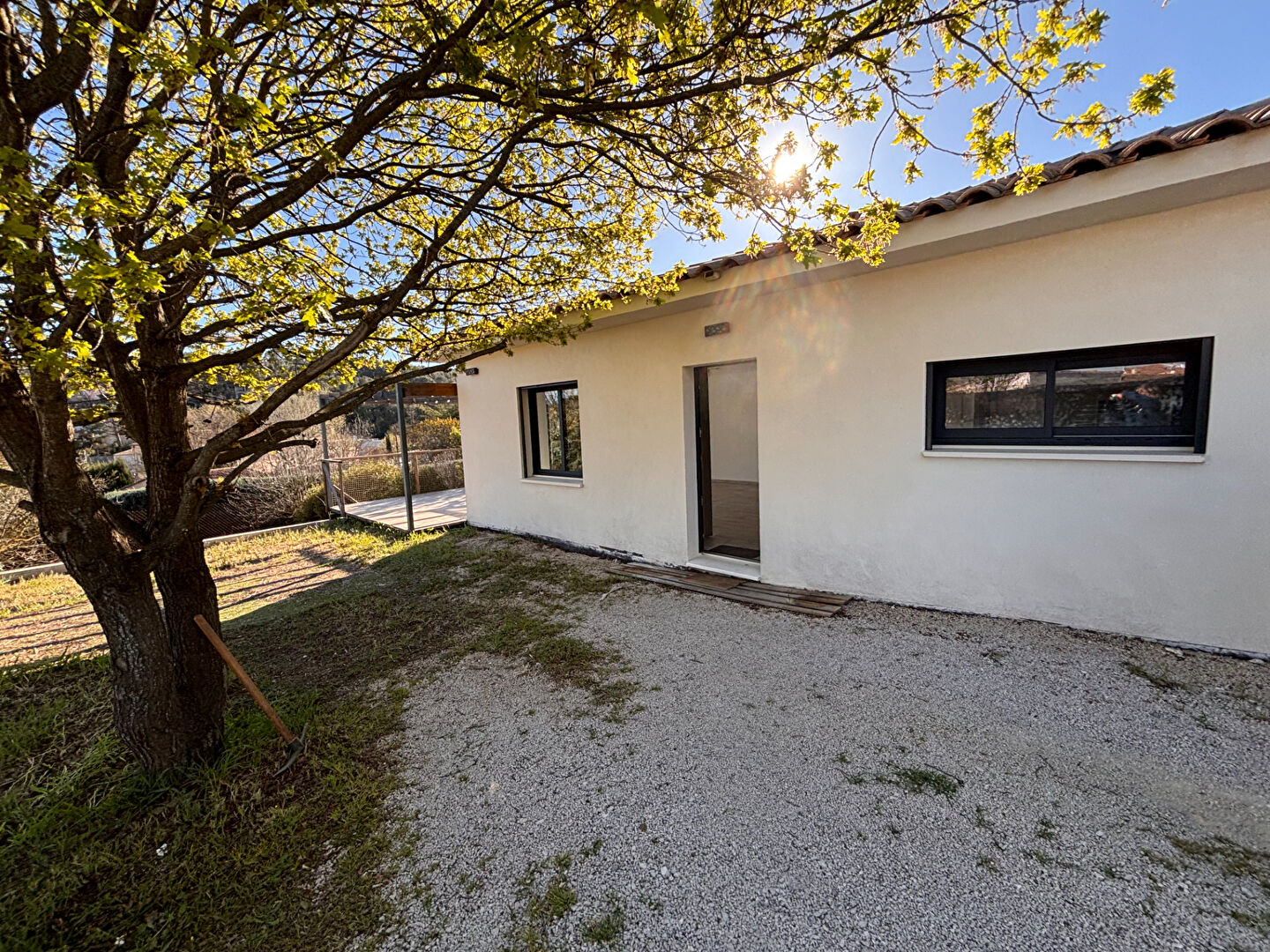 Magnifique maison T3 de plain pied d'environ 100m² comprenant un beau séjour très lumineux avec cuisine aménagée,1 buanderie , 1 chambre, 1 salle de bain avec double vasque , 1wc, 1 suite parentale avec salle d'eau et dressing ,wc, 1 garage, 1 terrain clôturé. aucun vis à vis LIBRE DE SUITE ASSURANCE / REVENUS NET EN CDI 4200 EUROS