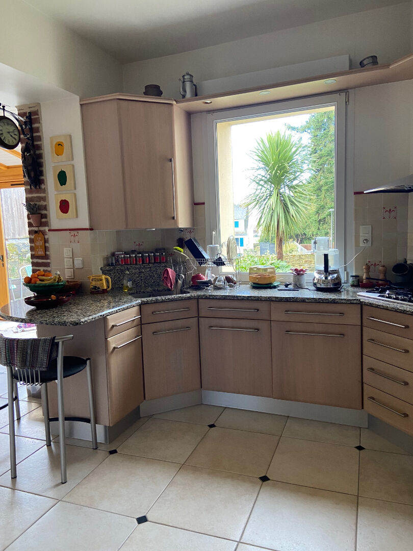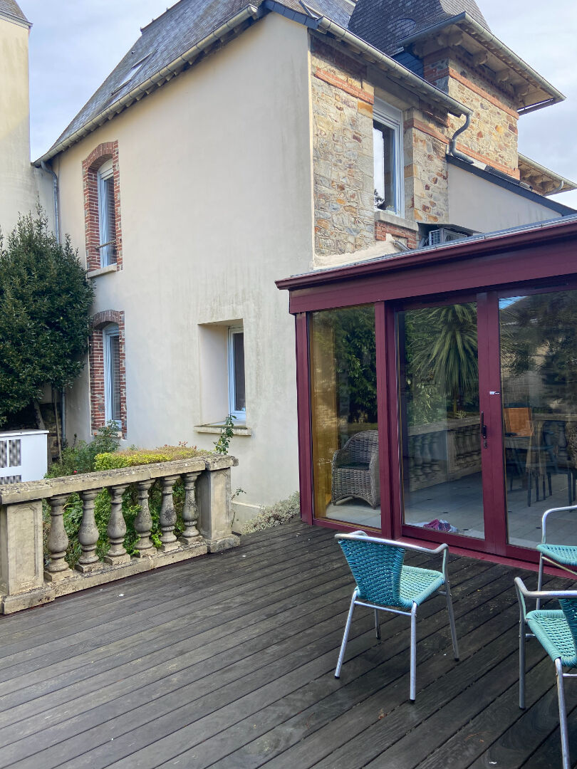 Centre ville de Vitré , cette agréable maison en pierres ayant gardé le charme du parquet, des cheminées et portes anciennes , combinée avec des prestations modernes comme une véranda donnant sur un jardin et une terrasse ensoleillée. Elle dispose d'une cuisine ouverte sur un bel espace béneficiant de luminosité, un salon séjour avec cheminée insert et un foyer ouvert, un wc et une salle d'eau. A l'étage, 3 chambres et salle d'eau Wc. Au deuxième étage, deux belles chambres, Wc et point d'eau. Au sous sol, chaufferie ( pompe à chaleur) , cellier et garage pour deux voitures. A deux pas des écoles et des commerces . (4.00 % honoraires TTC à la charge de l'acquéreur.)