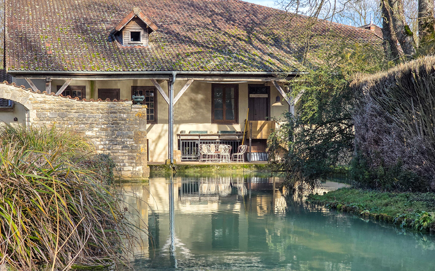 PROPRIETE AVEC MOULIN ANCIEN EN HAUTE-MARNE A Sommevoire, la Voire traverse la propriété et en détermine l'implantation. Ce moulin du XIX? siècle conserve sa machinerie et la trace d'une activité passée liée à l'eau. La rivière longe les bâtiments et se prolonge par un étang qui installe une présence aquatique continue au coeur du parc. L'habitation principale, un gîte distinct et plusieurs corps annexes composent un ensemble structuré, propice à une vie familiale comme à un projet d'accueil ancré dans la nature et dans l'histoire du lieu. DES VOLUMES QUI PROLONGENT L'HISTOIRE A l'intérieur, l'organisation reflète la logique originelle du moulin. L'habitation principale développe une distribution fluide, pensée autour de deux espaces de vie au rez de chaussée. Cette configuration permet d'installer des ambiances différenciées et d'adapter les usages selon les moments de la journée. Deux chambres à ce niveau apportent confort et souplesse d'aménagement. La cuisine équipée s'intègre naturellement dans cette dynamique et soutient une vie quotidienne tournée vers le partage. Dans le prolongement de ces volumes, l'étage affirme une atmosphère plus intime. La suite parentale bénéficie de sa salle de bain et d'une implantation préservée. Une grande pièce modulable ouvre la voie à différentes interprétations, qu'il s'agisse d'un salon, d'un bureau ou d'une chambre supplémentaire. Les paliers structurent la circulation et créent une progression douce entre les niveaux. A quelques pas, dans le second bâtiment, les plateaux en plancher bois abritent la machinerie sur plusieurs niveaux. Leur ampleur donne au lieu une présence singulière. Le gîte indépendant, composé d'une pièce de vie avec cheminée, de deux chambres et d'une salle de bain, permet d'accueillir famille ou hôtes en toute autonomie. Ainsi, chaque espace participe à l'équilibre général de cette propriété avec moulin ancien en Haute-Marne. UN PARC PORTE PAR LA RIVIERE A l'extérieur, la même cohérence s'exprime. Le parc d'environ un hectare et demi s'organise autour de la Voire qui traverse la propriété et en constitue l'axe naturel. L'eau accompagne les déplacements, reflète la lumière et installe une sensation de continuité. L'étang prolonge cette présence et crée un point d'équilibre dans le paysage. Ensemble, rivière et étang forment un cadre vivant, perceptible à chaque saison. Dans ce contexte, les prairies ouvertes offrent des surfaces adaptées à différents projets, notamment un usage équestre léger. Les perspectives restent structurées par l'eau et par l'implantation des bâtiments annexes. Le parc ne se contente pas d'entourer la propriété. Il en prolonge l'architecture et renforce l'ancrage du site. Dans cette propriété avec moulin ancien en Haute-Marne, la relation à l'eau façonne le quotidien autant que le paysage. UN LIEU INSCRIT DANS SON TERRITOIRE Au-delà du parc, le lieu s'inscrit dans une histoire plus large. Le moulin est attesté au XIX? siècle et une ordonnance de 1836 autorisa sa transformation en haut fourneau. La machinerie conservée témoigne de cette évolution et ancre le site dans une histoire documentée. Habiter ce lieu, c'est s'inscrire dans une continuité concrète. Autour de Sommevoire, l'environnement rural demeure structuré par les cours d'eau et les paysages ouverts. Forêts et prairies composent un cadre propice aux activités de plein air. La proximité du lac du Der renforce l'attractivité du secteur et soutient un projet d'accueil déjà amorcé grâce au gîte existant. Ainsi, cette propriété avec moulin ancien en Haute-Marne bénéficie d'un ancrage territorial cohérent, à la croisée du patrimoine et de la nature. AVIS DE L'AGENCE Cette propriété avec moulin ancien en Haute-Marne se distingue par la présence constante de l'eau, portée par la Voire et prolongée par un étang au coeur du parc. La machinerie conservée, l'organisation comprenant habitation principale et gîte ainsi que les corps annexes constituent une base solide pour un projet résidentiel ou touristique. Le site affirme une cohérence rare entre implantation naturelle et histoire documentée, et s'adresse à un acquéreur sensible aux lieux ancrés et évolutifs. Marion JULLY (EI) Agent Commercial - Numéro RSAC : - .