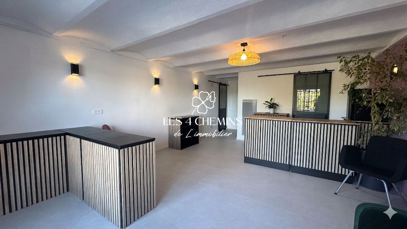 Situé au coeur du village de Peynier, à seulement 25 minutes d'Aix-en-Provence, ce local professionnel de 60 m² entièrement rénové est idéal pour une activité libérale ou professionnelle sur rendez-vous. Lumineux, confortable et fonctionnel, il offre un cadre de travail inédit dans un environnement calme et facilement accessible, au sein d'un secteur déjà dynamique avec plusieurs professionnels de santé. Le bien se compose d'un bureau privatif de 17 m², d'un espace d'accueil de 39 m² pouvant se transformer en open space, d'une réserve, d'un coin cuisine et de sanitaires. Adapté pour 1 à 3 postes de travail, il bénéficie d'un accès PMR, d'une vitrine, d'aménagements modernes, d'une vue dégagée et de l'absence de voisinage direct. A proximité immédiate de parkings publics gratuits, des commerces et des commodités, il se situe également à 5 minutes des zones d'activités de Peynier / Rousset et à 20 minutes des autoroutes A52 et A8. Loyer : 1 200 euros / mois Charges : 235 euros/ mois (incluant Wifi, eau, entretien et taxes) Dépôt de garantie : 1200 euros Bail flexible de 1 à 3 ans Honoraires d'agence : 2160 euros Disponible mi-juin Une solution idéale pour s'installer dans un cadre professionnel pratique et agréable. Candice ROGNIN (EI) Agent Commercial - Numéro RSAC : - .