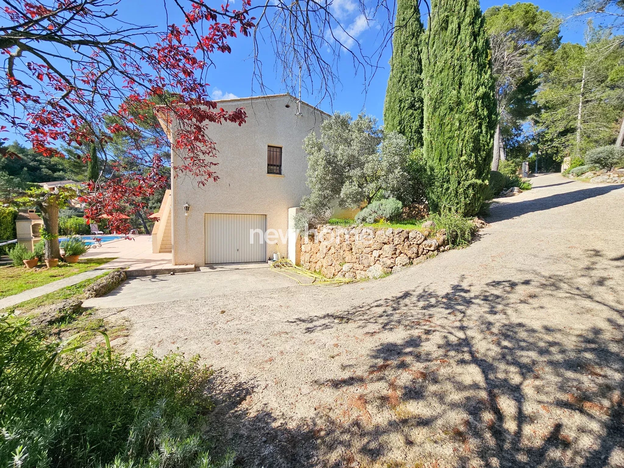À quelques minutes à peine du charmant village de Flayosc, cette belle maison d'environ 140 m² se niche en position dominante sur un terrain de 4431 m², au cur d'un environnement naturel préservé. Ici, tout invite à la détente, entre ciel bleu, paysages vallonnés et lumière du Sud. Dès l'entrée, on est accueilli par un vaste salon-séjour baigné de lumière, ouvert sur une grande terrasse couverte. Ce bel espace extérieur devient une véritable pièce de vie dès les beaux jours, offrant une vue imprenable sur la campagne environnante, parsemée d'oliviers et de collines boisées toute l'âme de la Provence à portée de regard. La cuisine ouverte prolonge cet espace chaleureux et convivial. Côté nuit, la maison propose une suite avec salle d'eau, WC et balcon privatif, ainsi que deux autres chambres confortables se partageant une salle de bain avec WC. En rez-de-jardin, une suite indépendante avec dressing, salle d'eau et toilettes s'ouvre sur une terrasse couverte, à quelques pas de la piscine. Le jardin en restanques s'insère harmonieusement dans le paysage, ponctué de zones ombragées, parfaites pour la sieste ou la lecture. Et pour les amateurs de moments partagés, un terrain de pétanque vient compléter l'art de vivre provençal. Un lieu rare, propice au calme et à la douceur de vivre, où l'on profite pleinement de la nature, tout en restant proche des commodités et de l'animation douce du village.