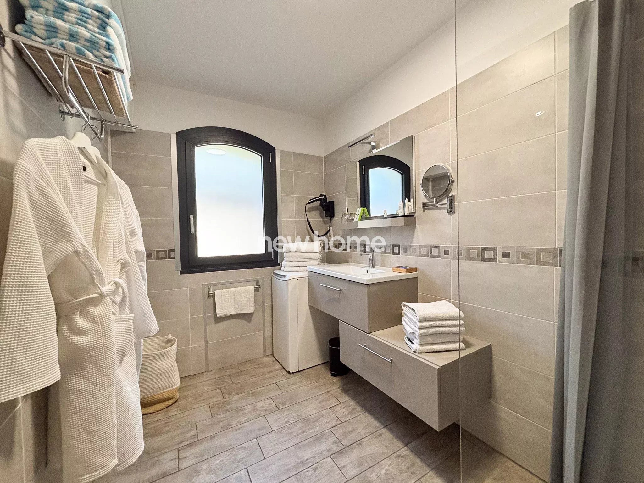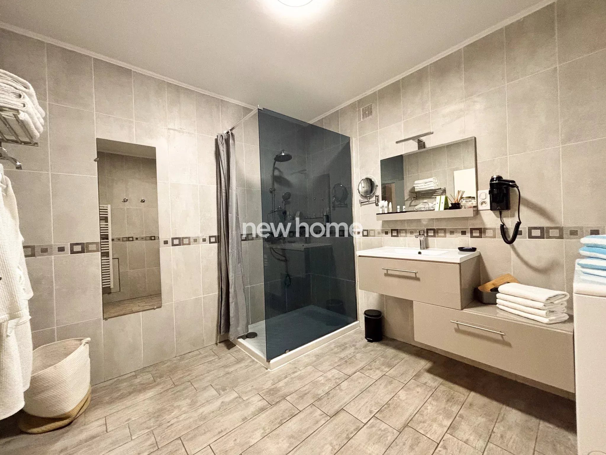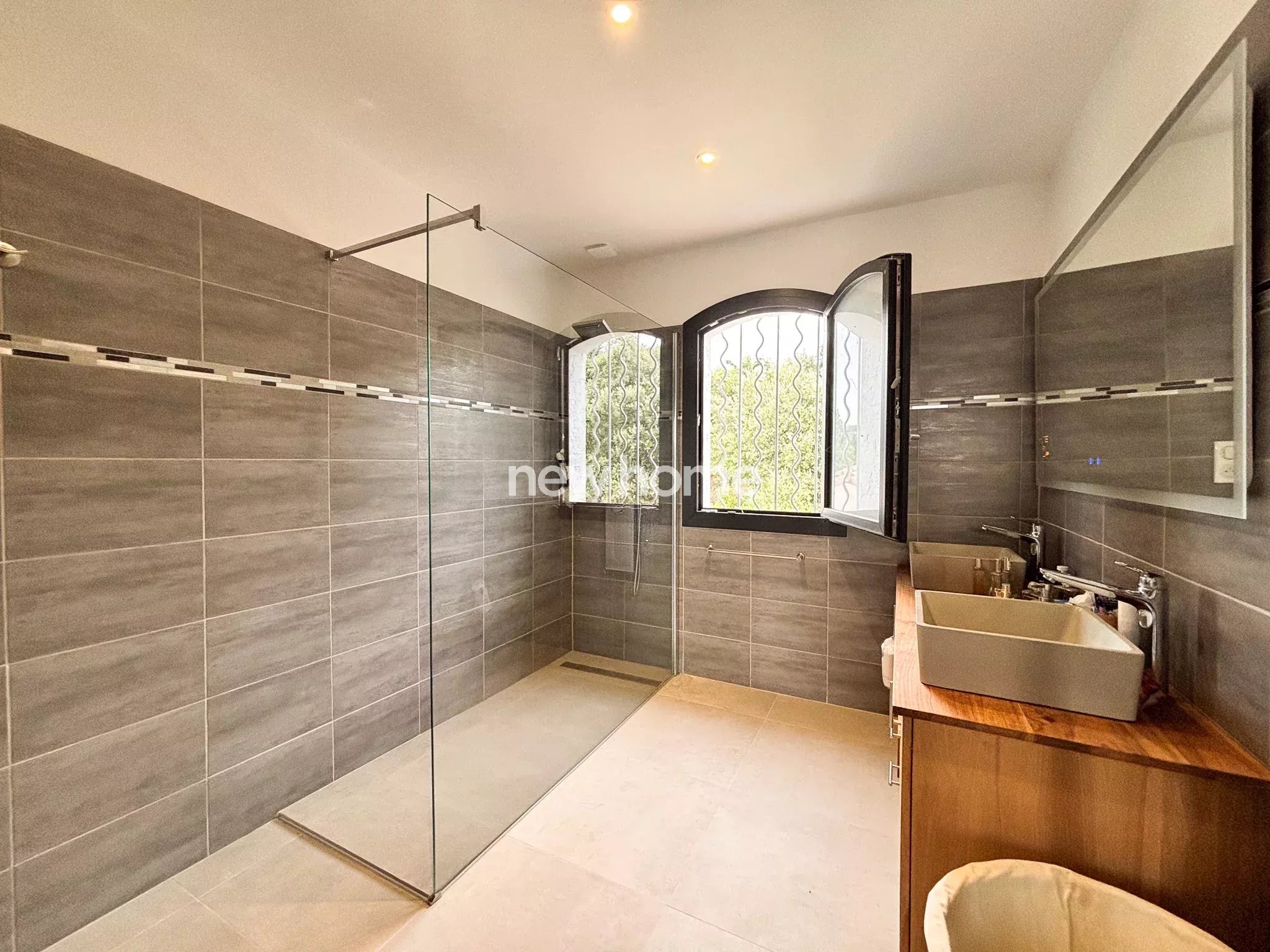 Rare ! A pied du centre, cette superbe propriété s'étend sur un terrain en position dominante de 6260m², offrant un cadre de vie privilégié et une vue panoramique imprenable. Construite en 1984 et entièrement rénovée en 2022, la maison principale de 154 m² sur 2 niveaux comprend un vaste séjour lumineux avec salle à manger, s'ouvrant sur une grande terrasse face à une oliveraie, ainsi qu'une cuisine moderne ouverte sur une terrasse donnant sur la piscine de 12x5 mètres. Une chambre avec dressing, une salle d'eau, un bureau et un WC indépendant complètent le rez-de-chaussée, tandis qu'à l'étage vous attend une grande chambre avec terrasse offrant une vue exceptionnelle sur la nature, accompagnée d'une salle d'eau et d'un WC séparé. En rez-de-jardin, vous profiterez également de deux gîtes indépendants : l'un de 83 m² avec 2 chambres, l'autre de 57 m² avec une chambre, chacun doté d'une belle véranda et pergola bioclimatique, d'une piscine privative de 8x4 mètres. La propriété comprend aussi une buanderie et deux caves. Pour compléter ce cadre privilégié à deux pas du village, un terrain de tennis, une salle de sport et une salle de jeux viennent agrémenter ce bien d'exception, idéal pour les amateurs de sport et de détente. Un véritable havre de paix à découvrir sans tarder !