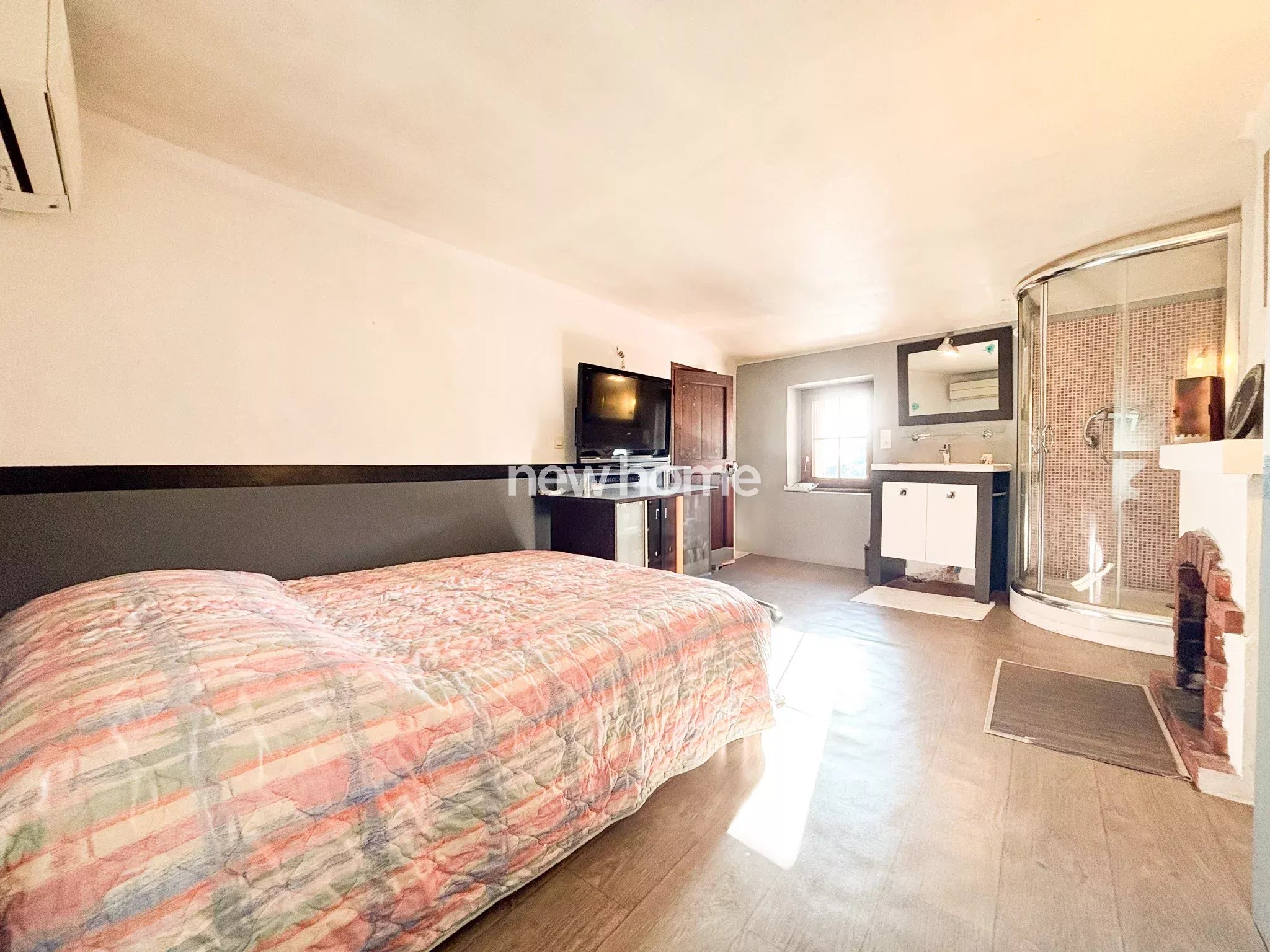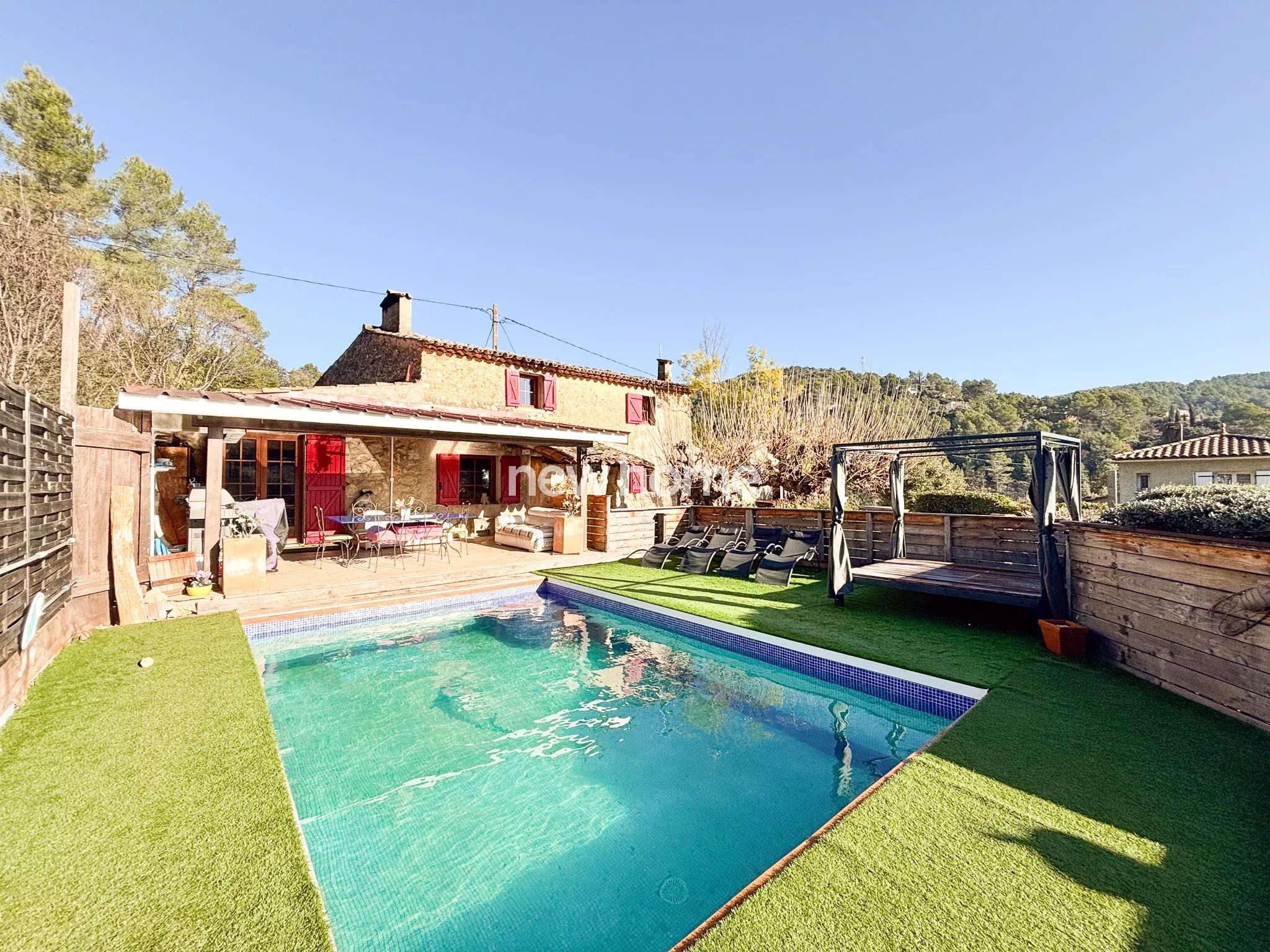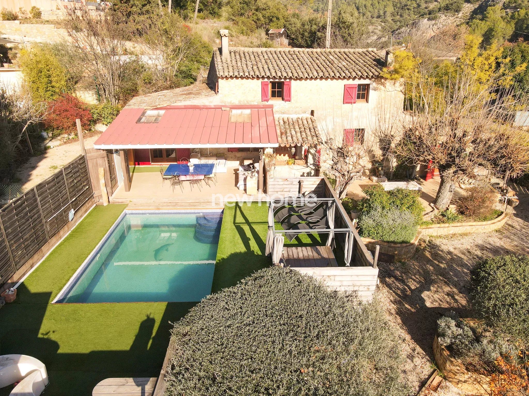 Située à quelques pas du centre du village, cette bastide allie authenticité et confort moderne avec une vue dégagée sur les collines environnantes. Elle est composée au rez-de-chaussée, d'une vaste salle à manger, un salon et petit coin lecture, une chambre avec salle d'eau, une buanderie avec toilette et un wc séparé, une cuisine indépendante donnant sur un coin cocooning avec jacuzzi et repas à l'abri du soleil. A l'étage, 2 chambres, chacune avec sa salle d'eau. Elle bénéficie également de la climatisation avec pompe à chaleur et poêle à bois pour un confort optimal en toute saison. Elle dispose également d'un bureau et d'une cave accessible par l'extérieur, des terrasses couvertes donnant sur une piscine traditionnelle de 6x4m, le tout sur un terrain de 790 m². Vous pourrez également profiter d'un boulodrome et d'un abri voiture. Cette bastide pleine de caractère est prête à être visitée. N'hésitez pas à nous contacter !