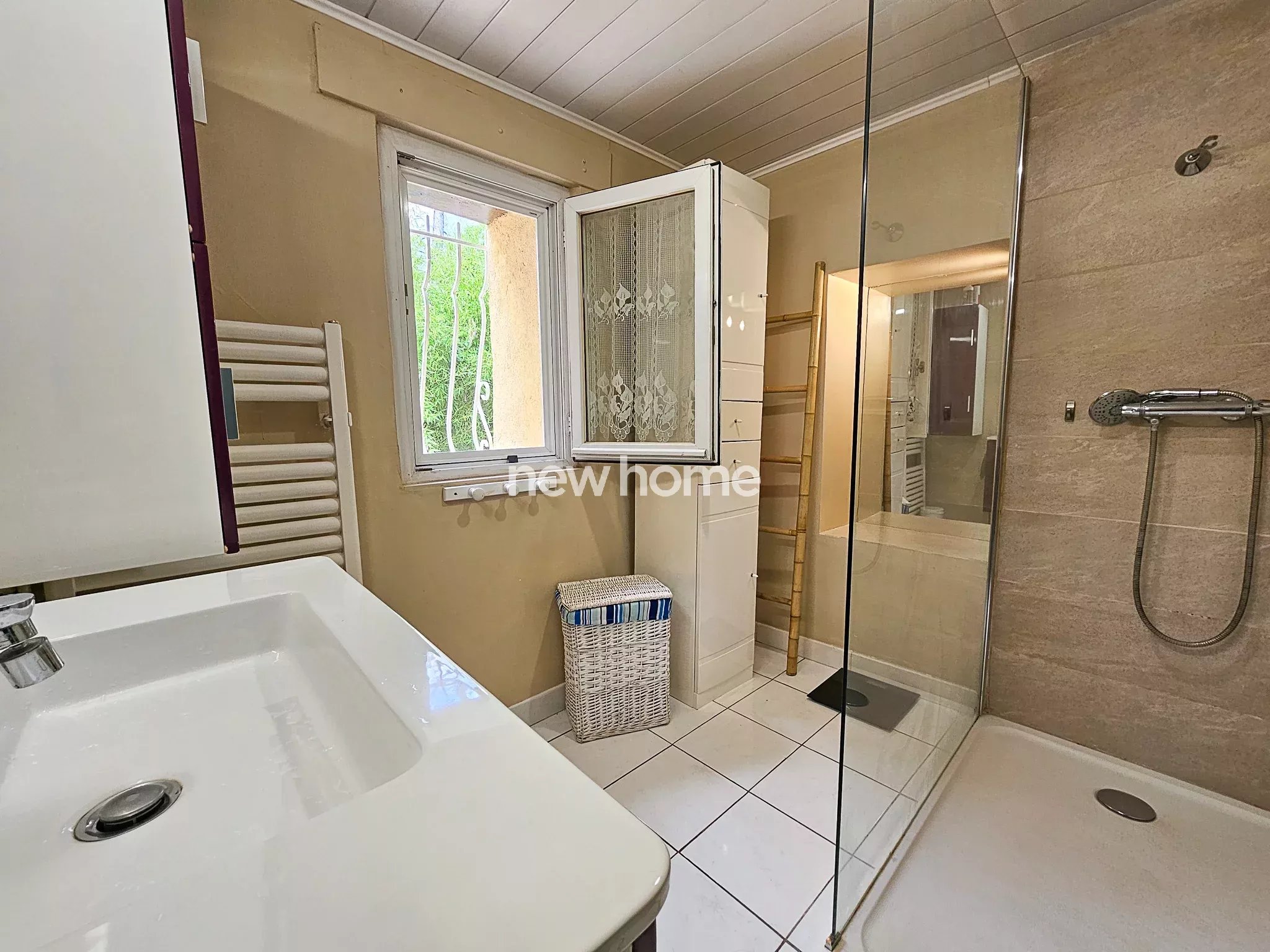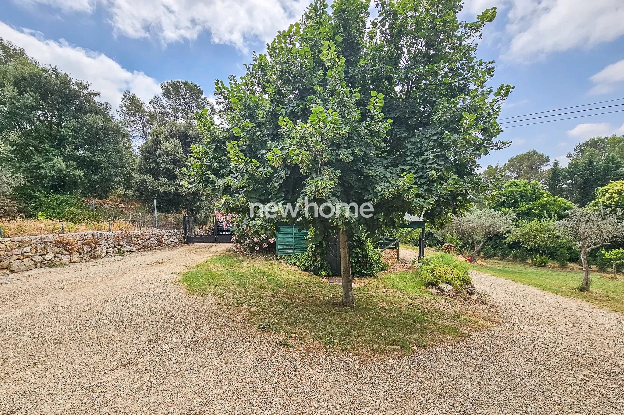 Idéalement situé entre Lorgues et Draguignan, ce bastidon en pierres d'environ 150 m² allie authenticité et modernité, niché au cur d'un terrain arboré et fleuri qui invite à profiter pleinement du jardin et de la piscine. Entièrement rénovée avec goût, cette maison révèle un agencement harmonieux : la cuisine lumineuse s'ouvre sur l'extérieur, créant une belle connexion avec le jardin, tandis qu'un salon en demi-niveau offre un espace cosy. Le rez-de-chaussée comprend également une chambre avec salle d'eau et WC privatifs. À l'étage, découvrez une seconde chambre et une suite parentale dotée d'une baignoire balnéo, d'un dressing spacieux et d'un WC séparé. Le confort est assuré par une pompe à chaleur réversible, un double vitrage performant et une installation photovoltaïque de 36 panneaux en autoconsommation. Autonomie également pour l'eau grâce au forage.Un grand garage de 33 m² et un double abri voiture complètent la propriété. Un coup de cur à visiter rapidement pour profiter d'un cadre naturel privilégié et du charme de cette construction en pierre.