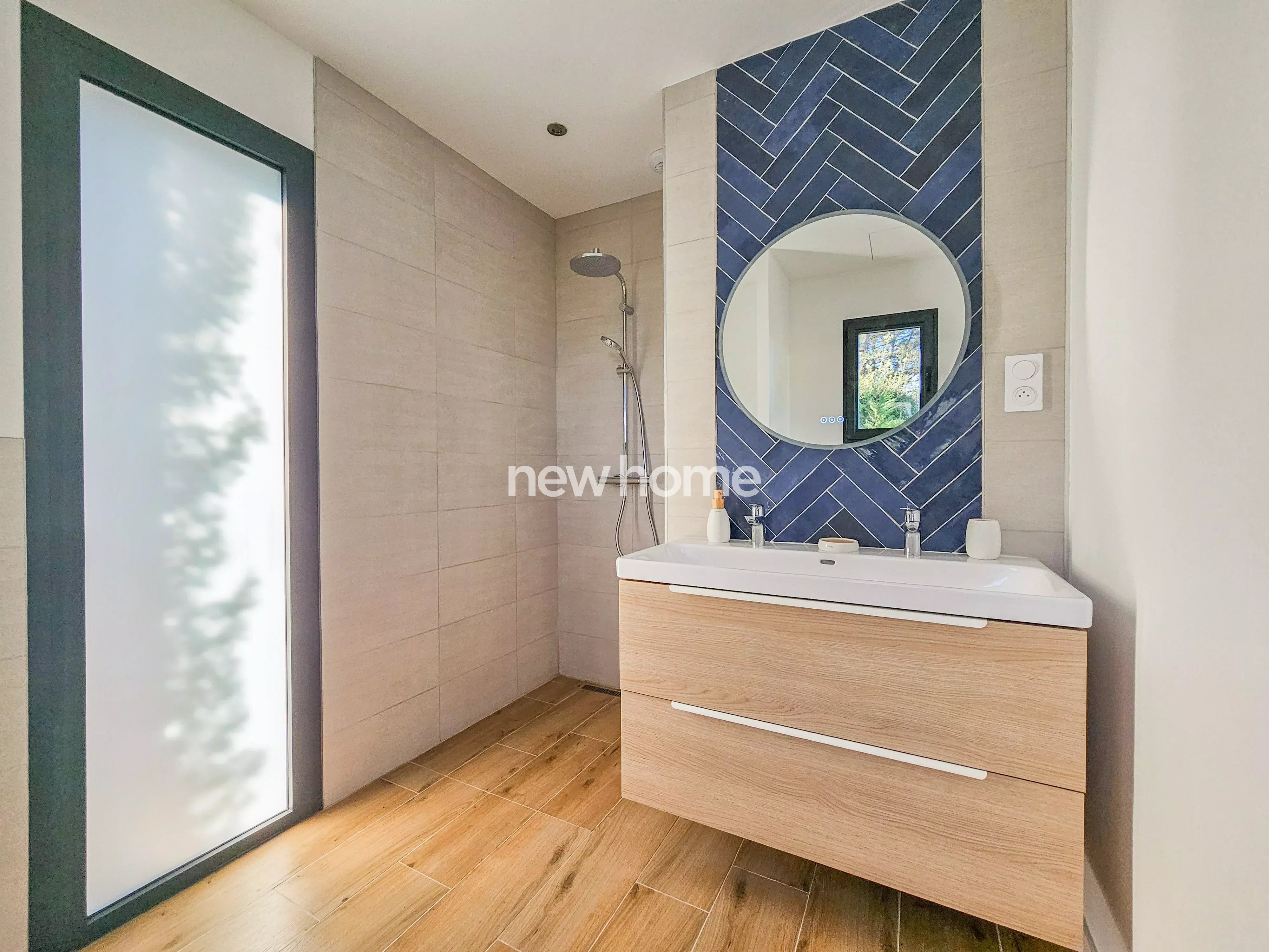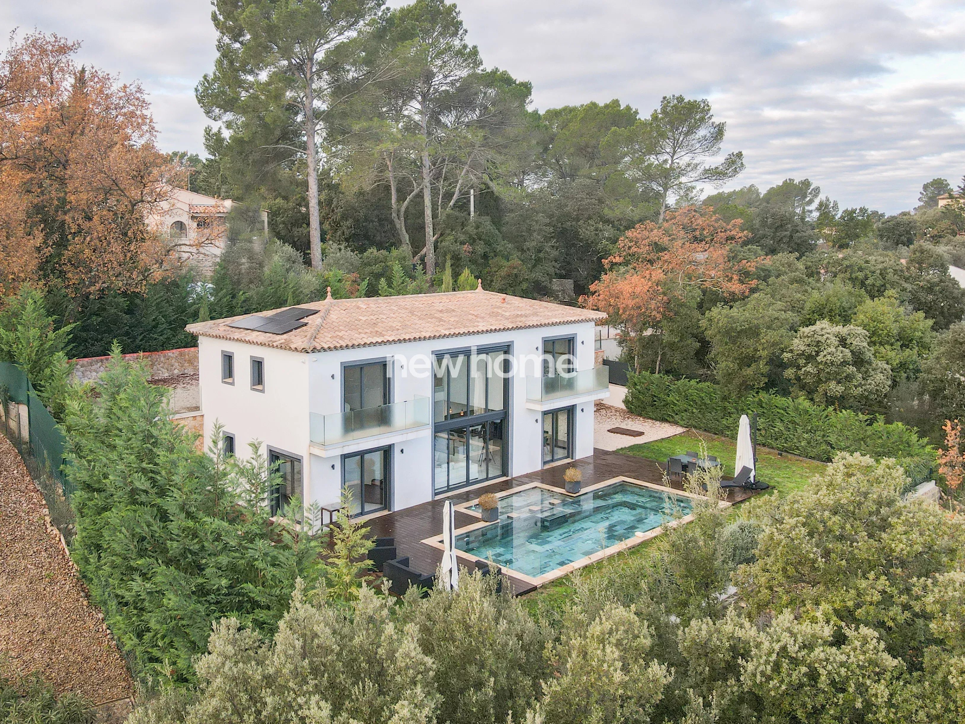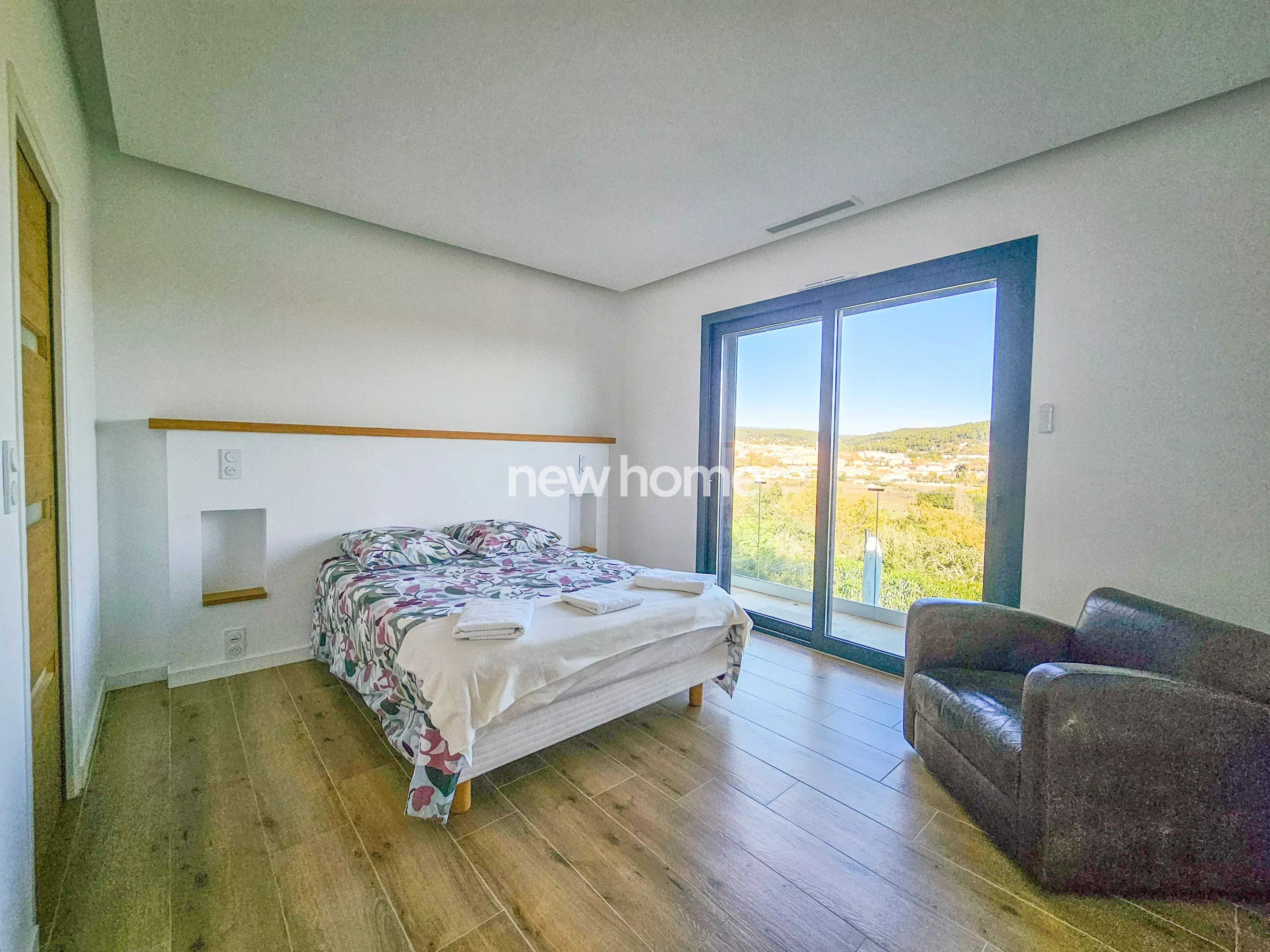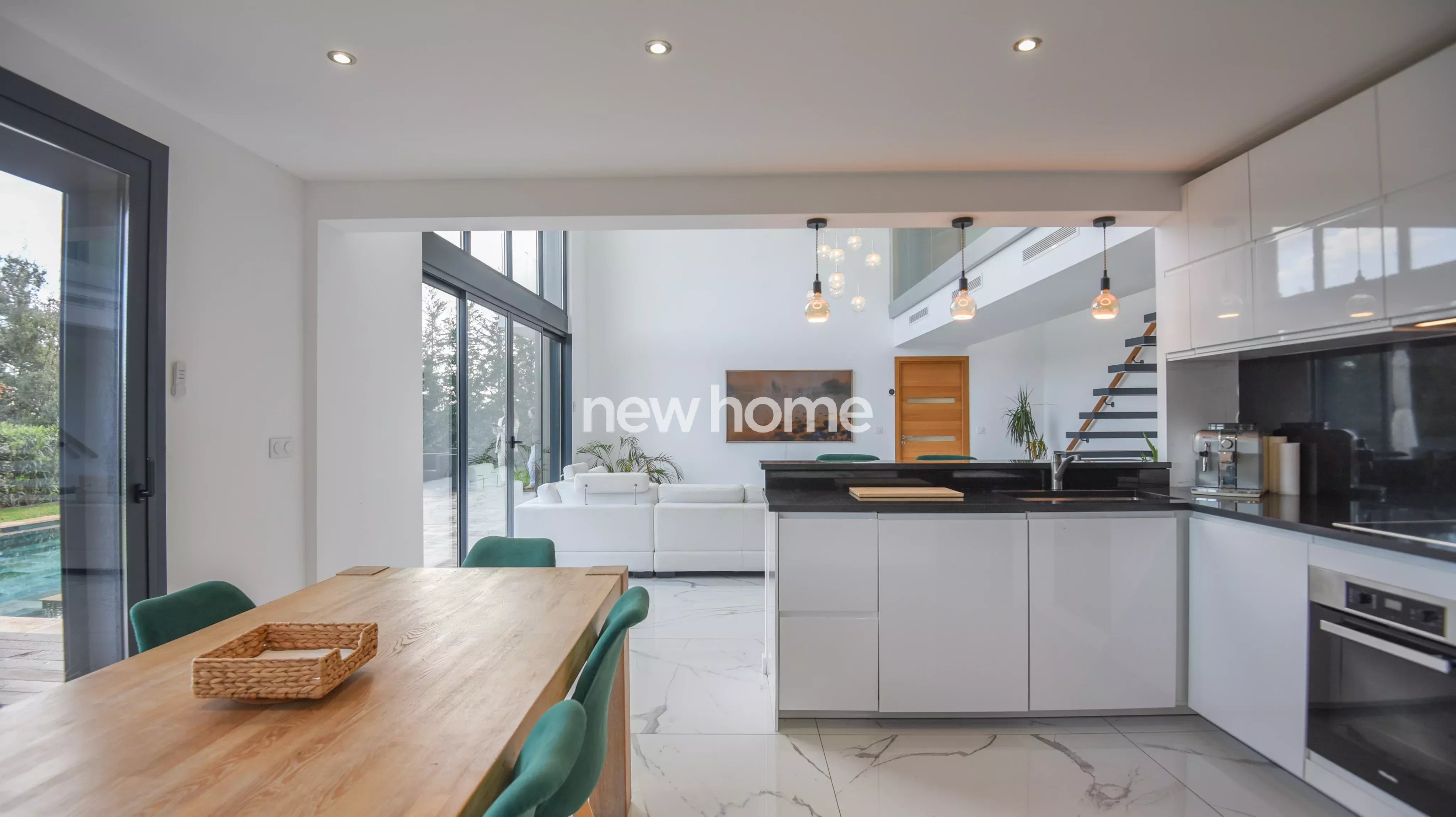 À seulement quelques minutes à pied du village de Lorgues, cette villa contemporaine se distingue comme un bien rare, où l'on profite d'une vue panoramique exceptionnelle depuis chaque espace de la maison. Dès l'entrée, le regard se projette naturellement vers les collines et le village, offrant une sensation immédiate d'ouverture et de sérénité. La piscine de style balinais, parfaitement intégrée dans le paysage, accompagne cette première impression et s'impose comme une véritable invitation à la détente. L'architecture épurée de la villa met en valeur les volumes et la lumière. Deux suites élégantes reliées par une passerelle suspendue donnent le ton d'une maison conçue pour magnifier les perspectives. Au niveau jardin, un escalier flottant conduit à une vaste pièce de vie dotée d'une hauteur sous plafond de six mètres, entièrement tournée vers la vue. On y trouve également une master suite avec salle de bains et toilettes, une cuisine ouverte équipée prolongée par une buanderie/arrière-cuisine, ainsi que des toilettes invités. Implantée sur un terrain paysagé de 1 000 m², la maison offre environ 136 m² de surface habitable. Elle bénéficie de panneaux solaires, d'un chauffage et d'une climatisation gainés dans le plafond, ainsi que d'un système de vidéosurveillance, garantissant confort et sérénité. À l'extérieur, les espaces se prolongent naturellement autour du bassin balinais, véritable pièce maîtresse de l'environnement. Cette propriété d'exception allie harmonieusement design contemporain, confort moderne et panorama d'une rare beauté. Un lieu où chaque instant se vit tourné vers la lumière et le paysage, pour une expérience de vie incomparable en Provence.