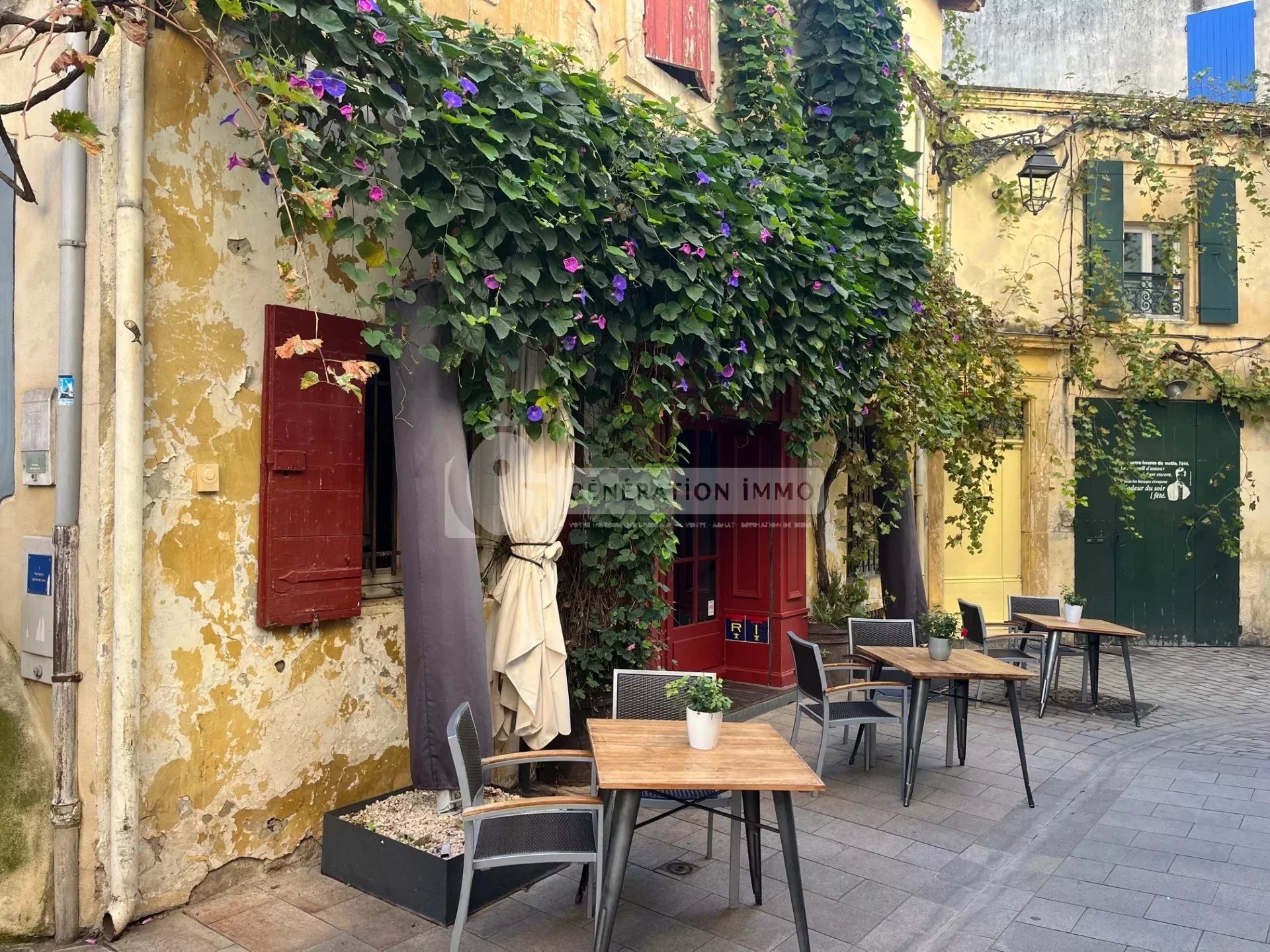 Arles - Situé au coeur du centre ville, vente d'un fond de commerce comprenant son restaurant et son appartement de fonction. La partie restaurant, avec terrasse, se compose d'une salle de réception d'environ 60 m2, sa cuisine professionnelle de 12 m2 et ses toilettes, une partie réserve d'environ 30 m2. Enfin, à l'étage, un appartement T4 avec son espace cuisine et ses 3 chambres. Restaurant plus exploité à ce jour. loyer mensuel 1800 euro/mois
