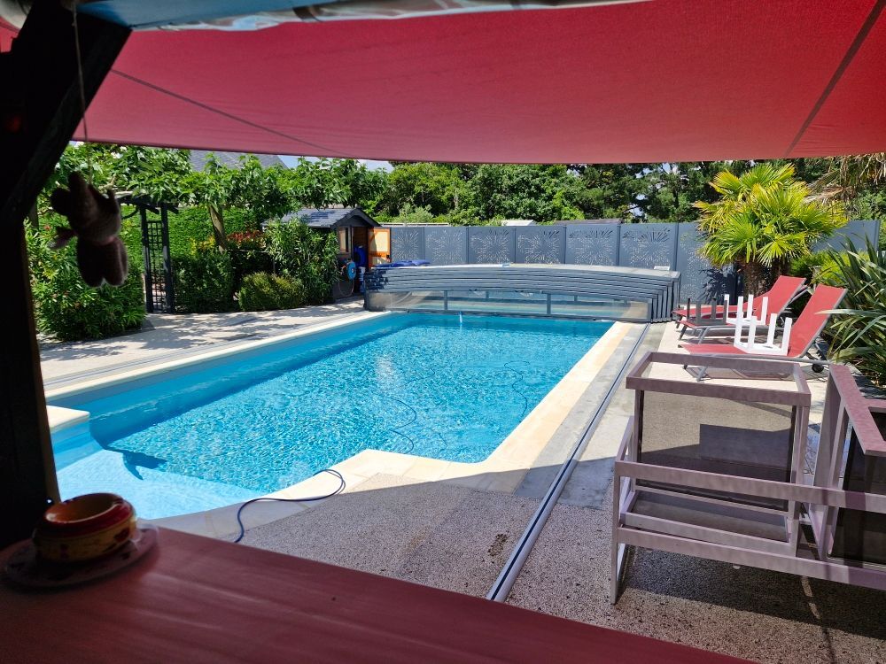 Une allée goudronnée mène à diverses places de stationnement, au garage ainsi qu'à une terrasse avec une piscine accompagnée de son Pool House (cuisine, salle d'eau et toilette), un terrain de pétanque complète le bien.