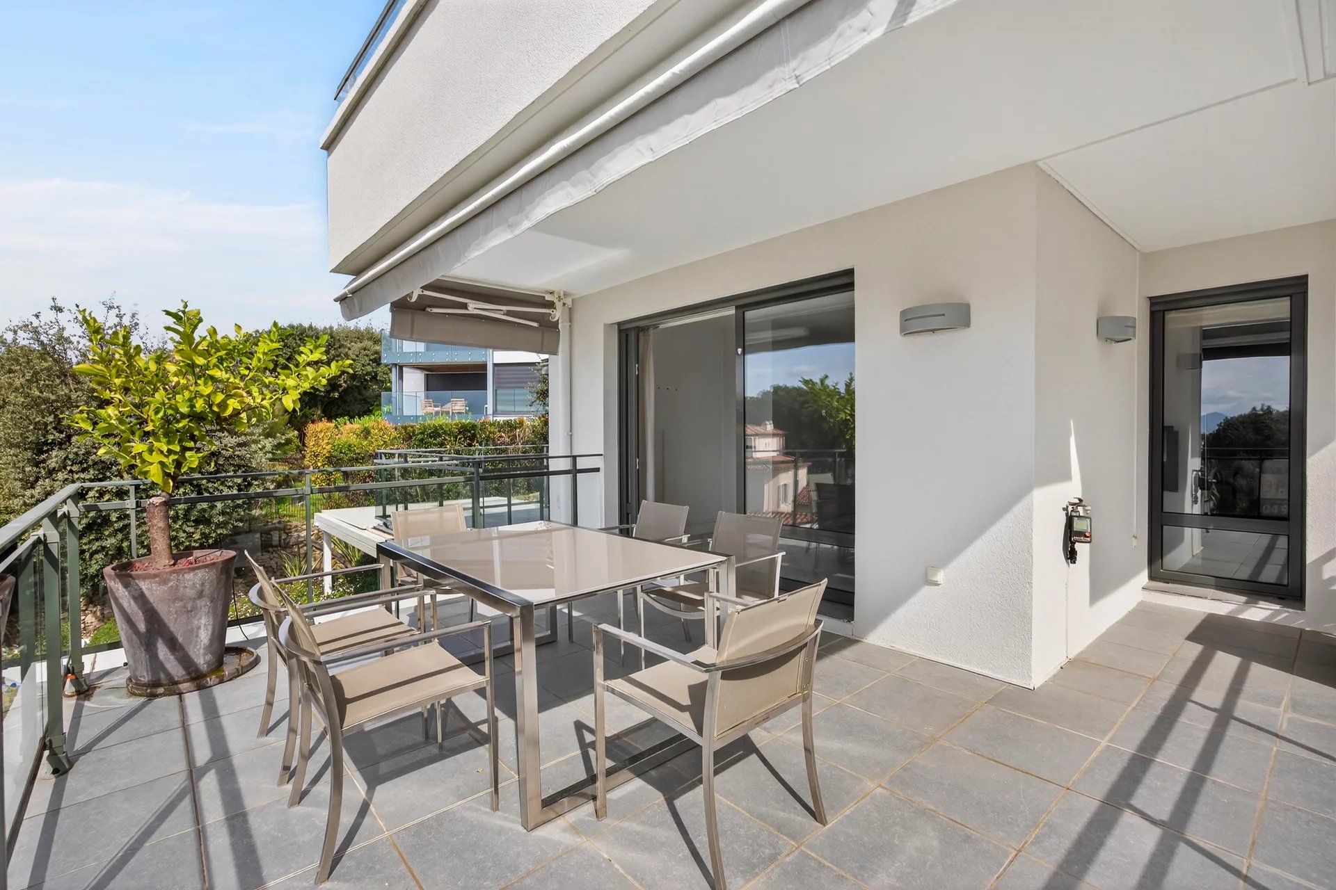 CAP D'ANTIBES - Vue mer panoramique et idéalement situé au début du Cap d’Antibes, versant ouest, à proximité immédiate du prestigieux hôtel Belles Rives, des plages de sable et des restaurants, cet appartement se trouve au sein d’une petite résidence de grand standing, moderne et récente, composée de seulement trois étages comprenant huit appartements. Exposé sud-ouest, cet appartement bénéficie d’une vue mer absolument magnifique. Les couchers de soleil en toute saison sont exceptionnels. L’appartement de 65m² habitables est très bien agencé. Il est composé d’un très lumineux séjour avec cuisine ouverte toute équipée, ouvrant sur la belle terrasse de 27m² face à la mer. L’entrée dessert une chambre avec sa salle de douche, wc et son dressing, une seconde chambre et une salle de douche indépendante avec wc. Deux places de parking privatives en dessous de l'immeuble, avec ascenseur direct à l’étage, complètent ce bien rare. L’emplacement privilégié de cette propriété vous permet de profiter pleinement de la douceur de vivre de la Côte d’Azur. À proximité immédiate des plages, restaurants, musées, port de plaisance et autres lieux emblématiques, elle est idéalement située entre Nice et Cannes, à seulement 20 km de l’aéroport international. N’hésitez pas à nous contacter pour obtenir plus de renseignements ou planifier une visite privée de ce bel appartement. Quote-part des charges: 316 €/mois. Nombre de lots principaux: 8. Prestations : Air conditionné, Double vitrage, Fenêtres coulissantes, Stores électriques, Volets roulants électriques, Éclairage extérieur, Accès handicapé, Ascenseur, Fibre optique, Alarme, Interphone, Portail électrique, Porte blindée. Pas de procédure en cours à notre connaissance. Les informations sur les risques auxquels ce bien est exposé sont disponibles sur le site Géorisques: georisques.gouv.fr