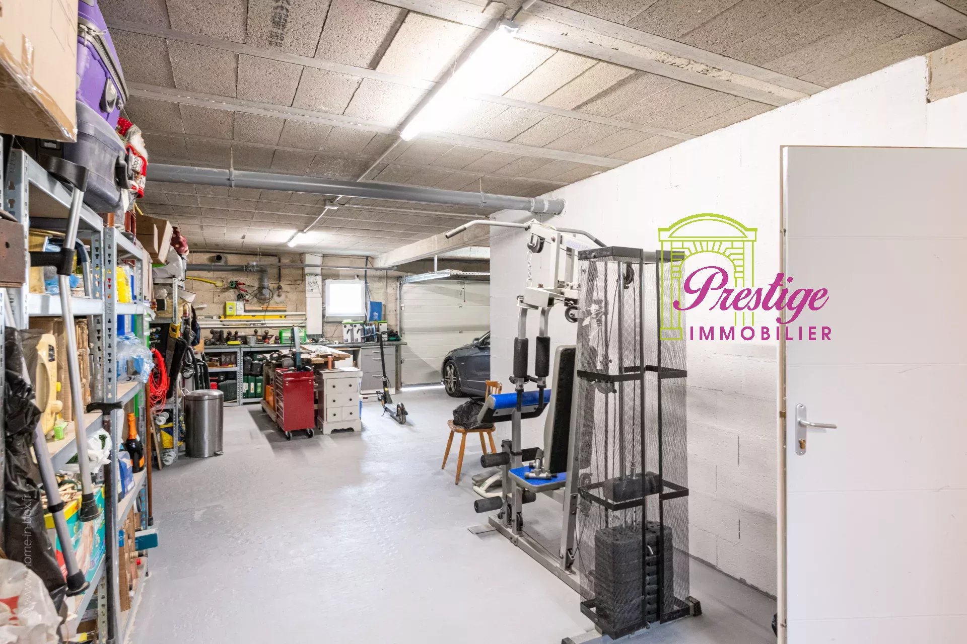 Le sous-sol d'une hauteur sous plafond de 2,80m est divisé en réserve, chaufferie-buanderie, atelier, garage double et possibilité de stationnement supplémentaire dans le jardin où deux charmantes annexes permettent d'entreposer les outils de jardinage.