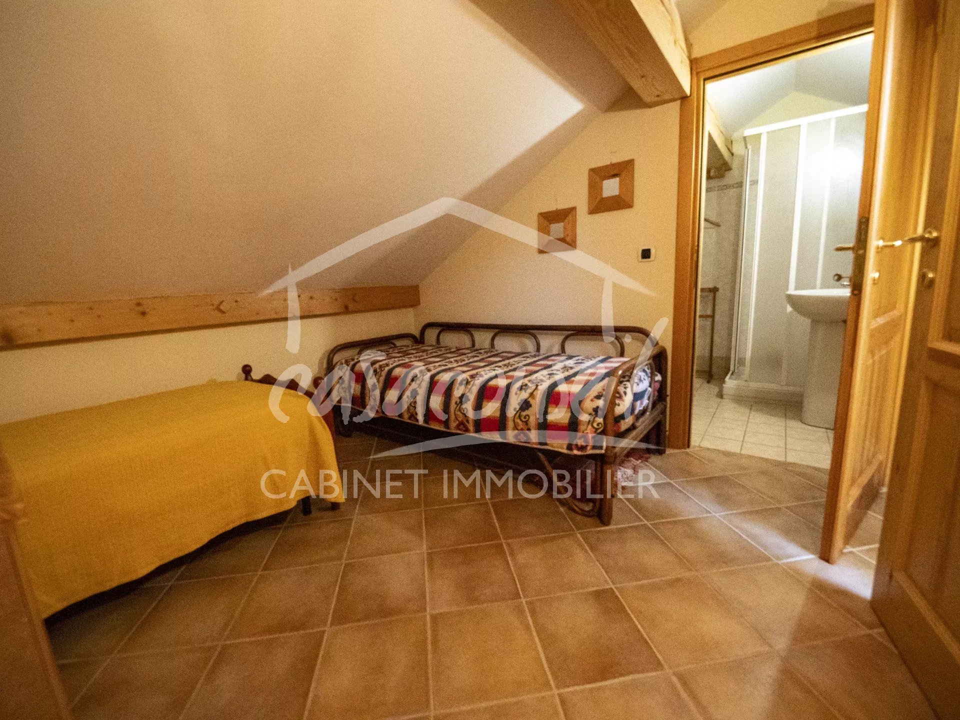 Al piano superiore: una seconda camera, un ulteriore angolo notte e un secondo bagno con WC.