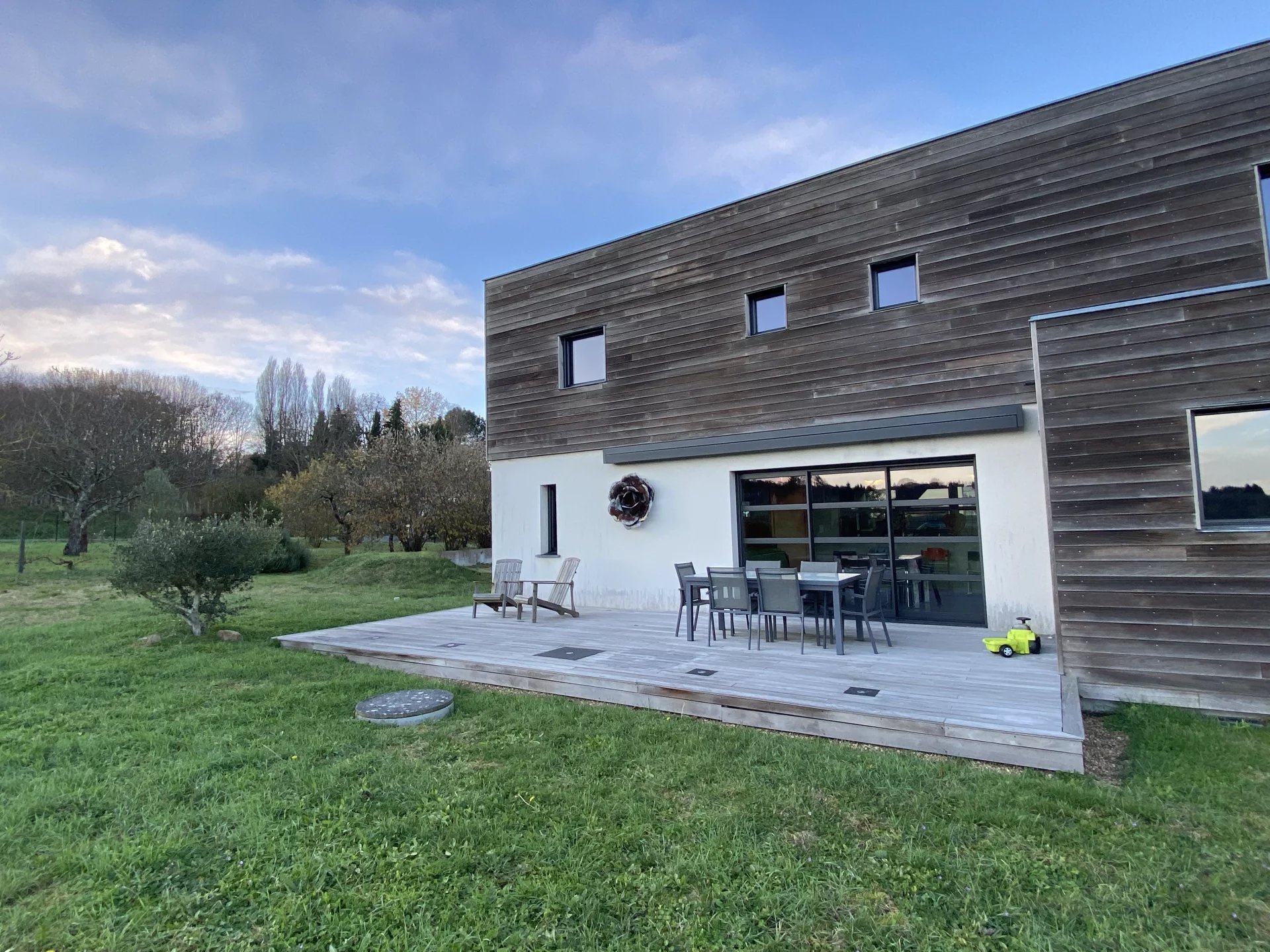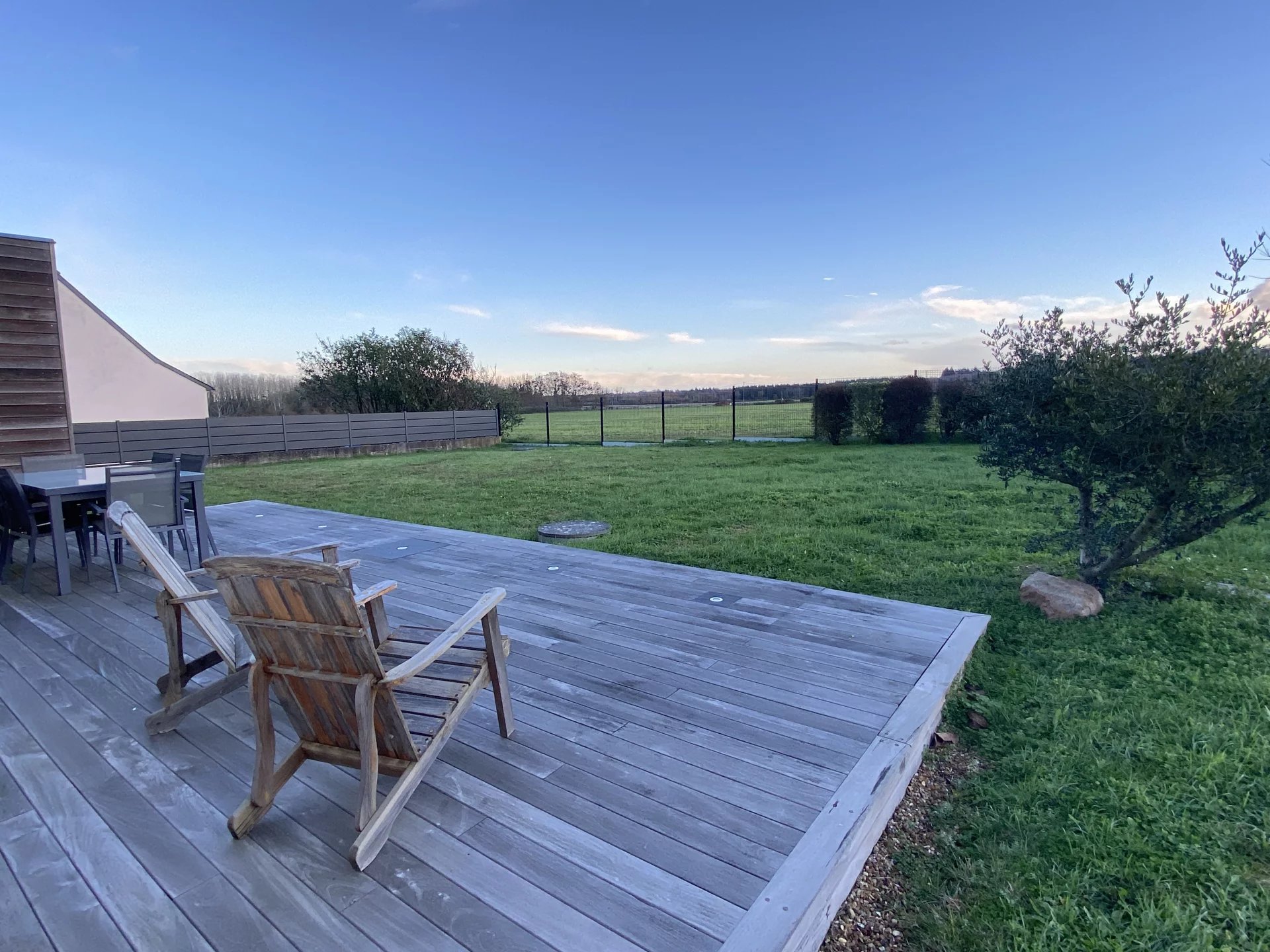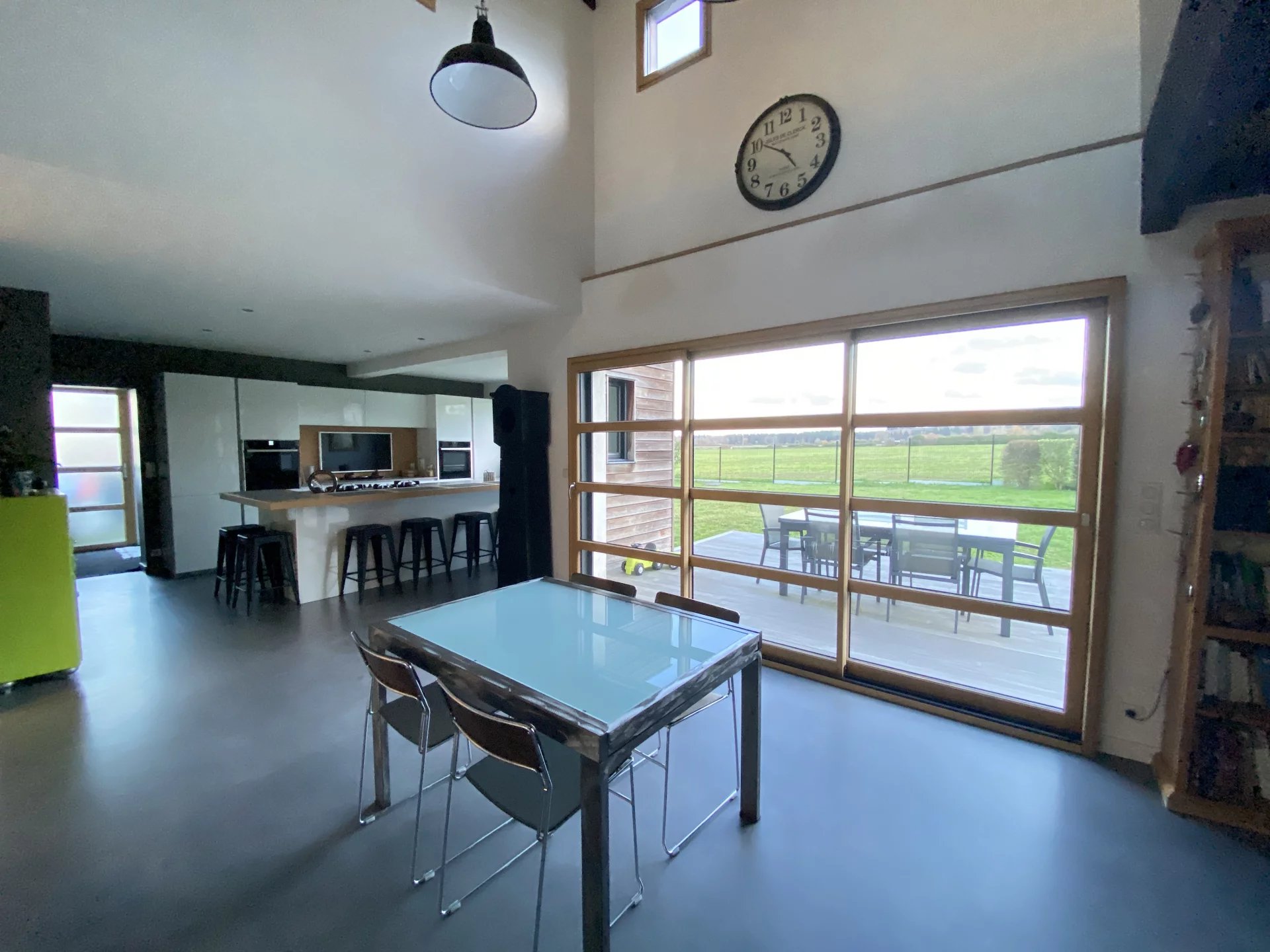 A seulement 20 minutes du centre d'Angers, à Tiercé, superbe maison contemporaine construite en 2008 avec goût et matériaux de qualité, offrant sur deux niveaux et 218 m²: au rez-de-chaussée, une entrée desservant un vaste (72 m²) et lumineux séjour (salon-bureau-salle à manger avec accès à une terrasse et avec un poêle à bois), une cuisine moderne et équipée ouverte sur l'espace salle à manger, une lingerie, une suite parentale avec salle d'eau et un wc; à l'étage, un espace bureau, trois chambres, une salle de bains, un wc. Cette maison très fonctionnelle et à la décoration raffinée dispose d'une terrasse, d'un jardin clos et arboré de 1200 m², d'un sous-sol (cave), d'un garage indépendant, de huit panneaux solaires en auto consommation, d'une cuve de récupération d'eau de 5000 litres. Environnement calme et agréable. Proche de toutes commodités (commerces, écoles...). Gare à Tiercé avec liaisons régulières vers et depuis Angers.