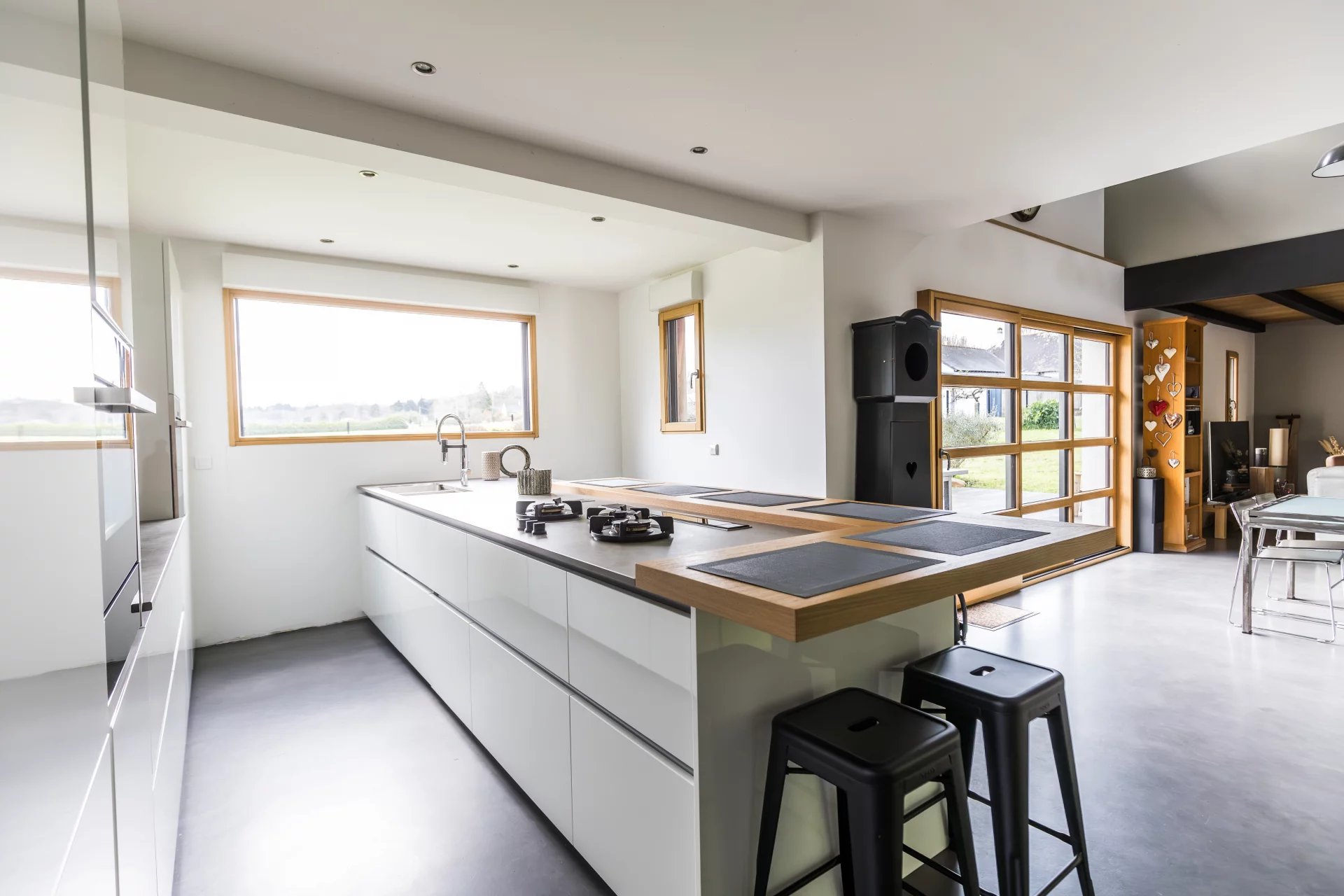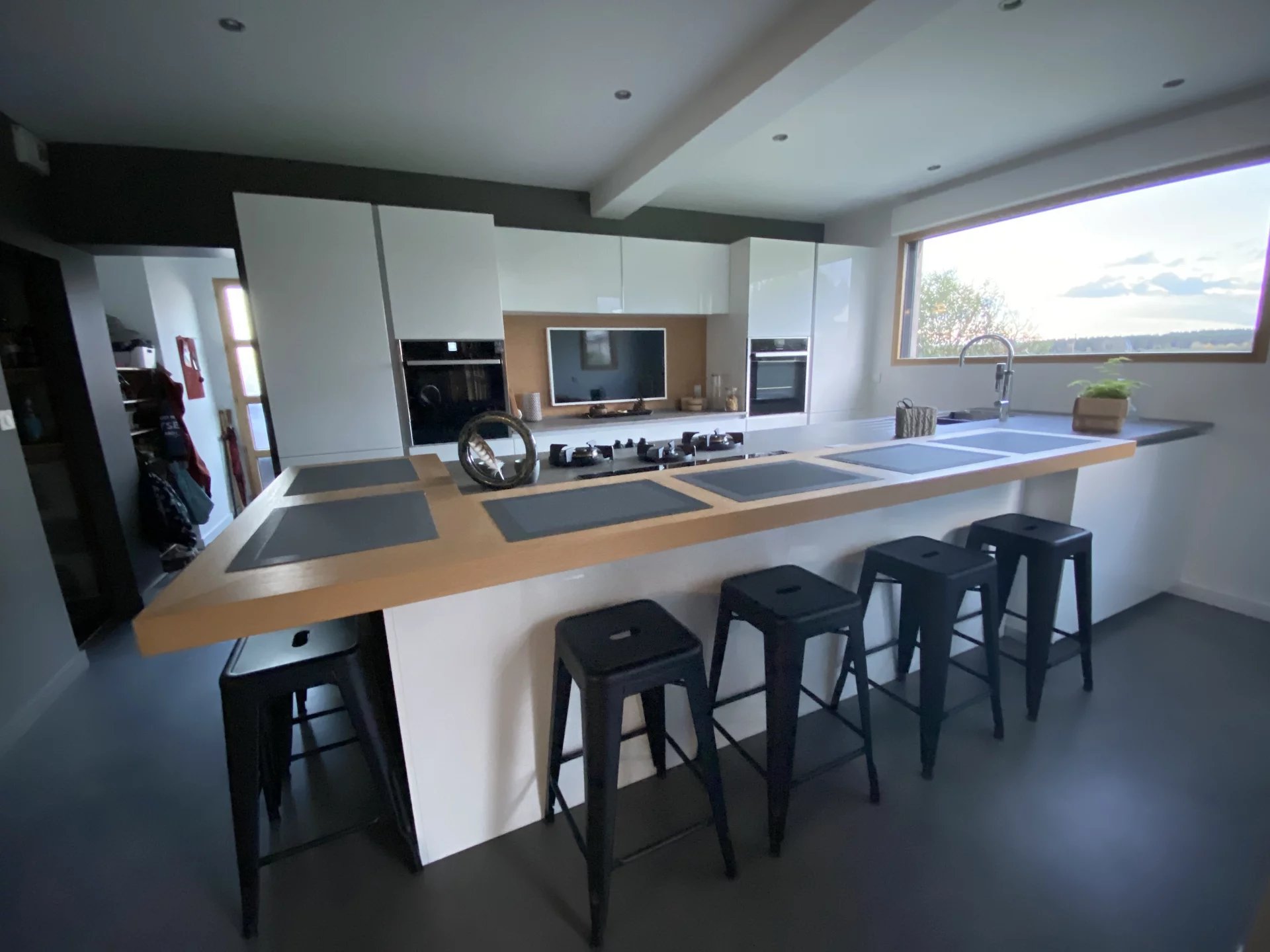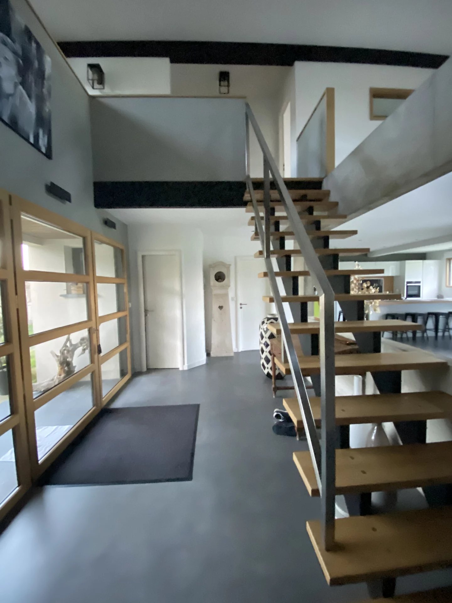 A seulement 20 minutes du centre d'Angers, à Tiercé, superbe maison contemporaine construite en 2008 avec goût et matériaux de qualité, offrant sur deux niveaux et 218 m²: au rez-de-chaussée, une entrée desservant un vaste (72 m²) et lumineux séjour (salon-bureau-salle à manger avec accès à une terrasse et avec un poêle à bois), une cuisine moderne et équipée ouverte sur l'espace salle à manger, une lingerie, une suite parentale avec salle d'eau et un wc; à l'étage, un espace bureau, trois chambres, une salle de bains, un wc. Cette maison très fonctionnelle et à la décoration raffinée dispose d'une terrasse, d'un jardin clos et arboré de 1200 m², d'un sous-sol (cave), d'un garage indépendant, de huit panneaux solaires en auto consommation, d'une cuve de récupération d'eau de 5000 litres. Environnement calme et agréable. Proche de toutes commodités (commerces, écoles...). Gare à Tiercé avec liaisons régulières vers et depuis Angers.