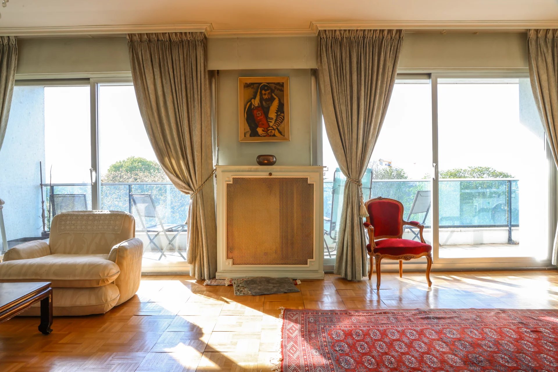 Traversant et parfaitement agencé, il s’ouvre sur un élégant balcon-terrasse de 16 m² offrant une vue imprenable sur le parc. Le séjour, d’une superficie de 40 m² et exposé sud-ouest, bénéficie d’un ensoleillement optimal.