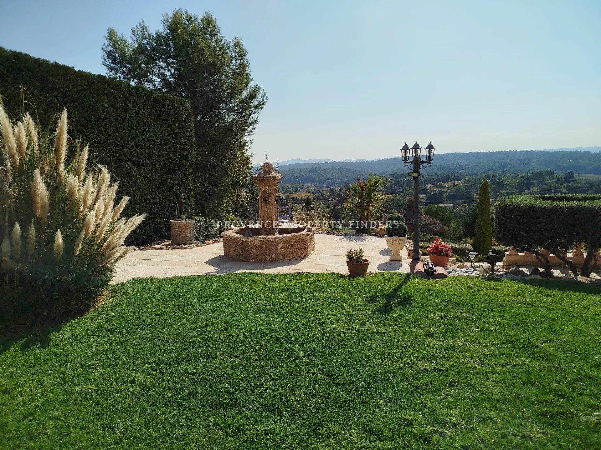 Cette construction traditionnelle en briques monomurs,réalisée avec des matériaux nobles tels que le fer forgé, la pierre naturelle utilisé avec soin lui confèrent un cachet unique. Elle jouit d'une vue spectaculaire qui émerveille à chaque instant. Si vous rêvez de vivre dans une residence moderne qui évoque l'ambiance d'un chateau, elle ne pourra que vous séduire. Située a quelques pas du village elle combine une grande intimité avec un accès facile aux commodities locales. Le jardin paysager entièrement clôturé et aménagé avec soin dispose d'une petit tour provençale que vous pourrez personnaliser a votre gout (studio, chambre, atelier..) on y trouve également un carport pour abriter votre voiture, une cuisine d'été avec accès direct dans la maison, et d'un garage en sous-sol ajoutant une touche pratique a cet espace enchanteur. La piscine de forme libre entourée d'un espace détente vous permettra de vous rafraichir. l'interieur propose des espaces de vie spacieux et fluides dont un salon et une salle a manger avec plafond cathédrale et cheminée insert ouvrant a l'arrière sur une terrasse couvert et a l'avant sur un terrasse avec vue époustouflante, ainsi que d'une cuisine aménagée avec cellier attenant. Trois chambre complètent cet espace ainsi qu'une salle de bains et un wc séparé. Chaque recoin de cette maison témoigne de l'attention portée aux détails et au confort. De plus la maison dispose d'un sous sol de 80m2 avec évier, douche et wc, offrant de généreux espaces de rangement et d'aménagement selon vos besoins avec la possibilité de la transformer a moindre coût en appartement indépendant en rez de jardin pour l'utiliser aussi bien en locatif qui pour y recevoir vos familles et amis. En sommes cette maison protégée par un système d'alarme incarne le mariage parfait entre le charme intemporel, la modernité et le confort.